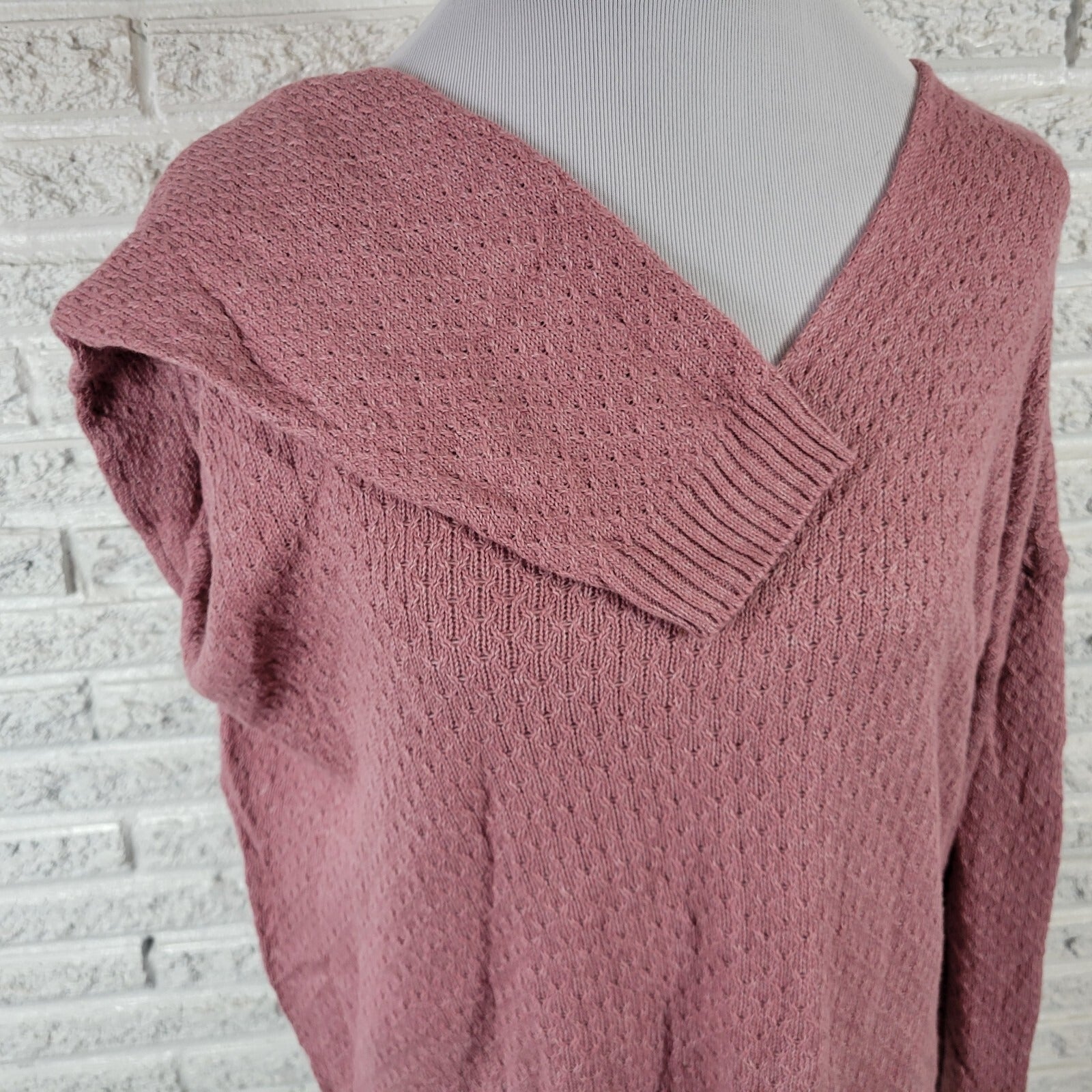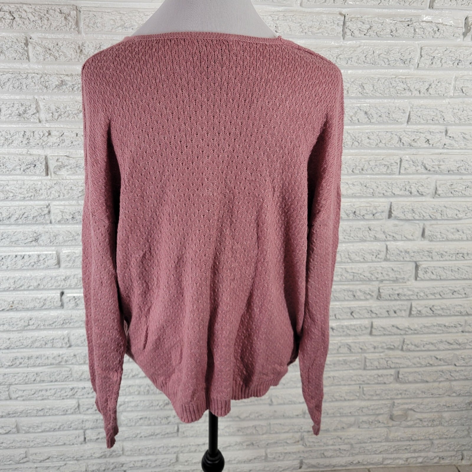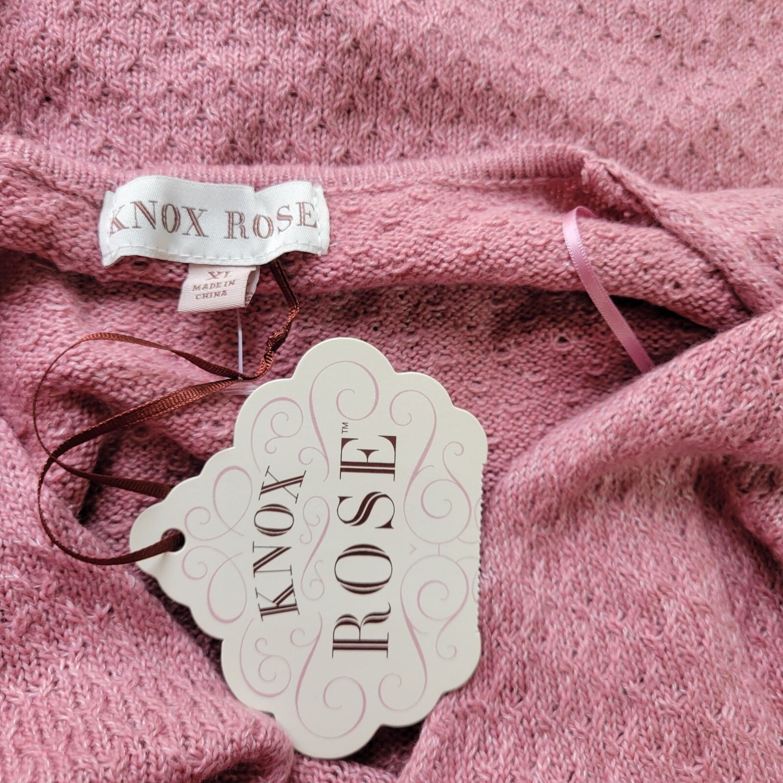 Knox Rose Womens Sweater XL Long Sleeve Cable Knit Pink Lightweight Cotton Blend