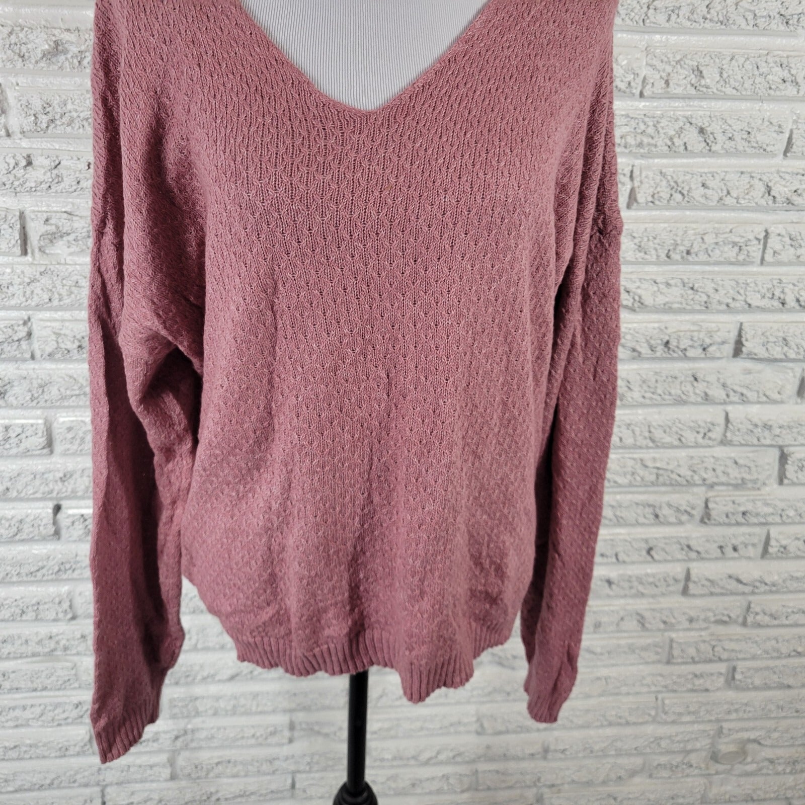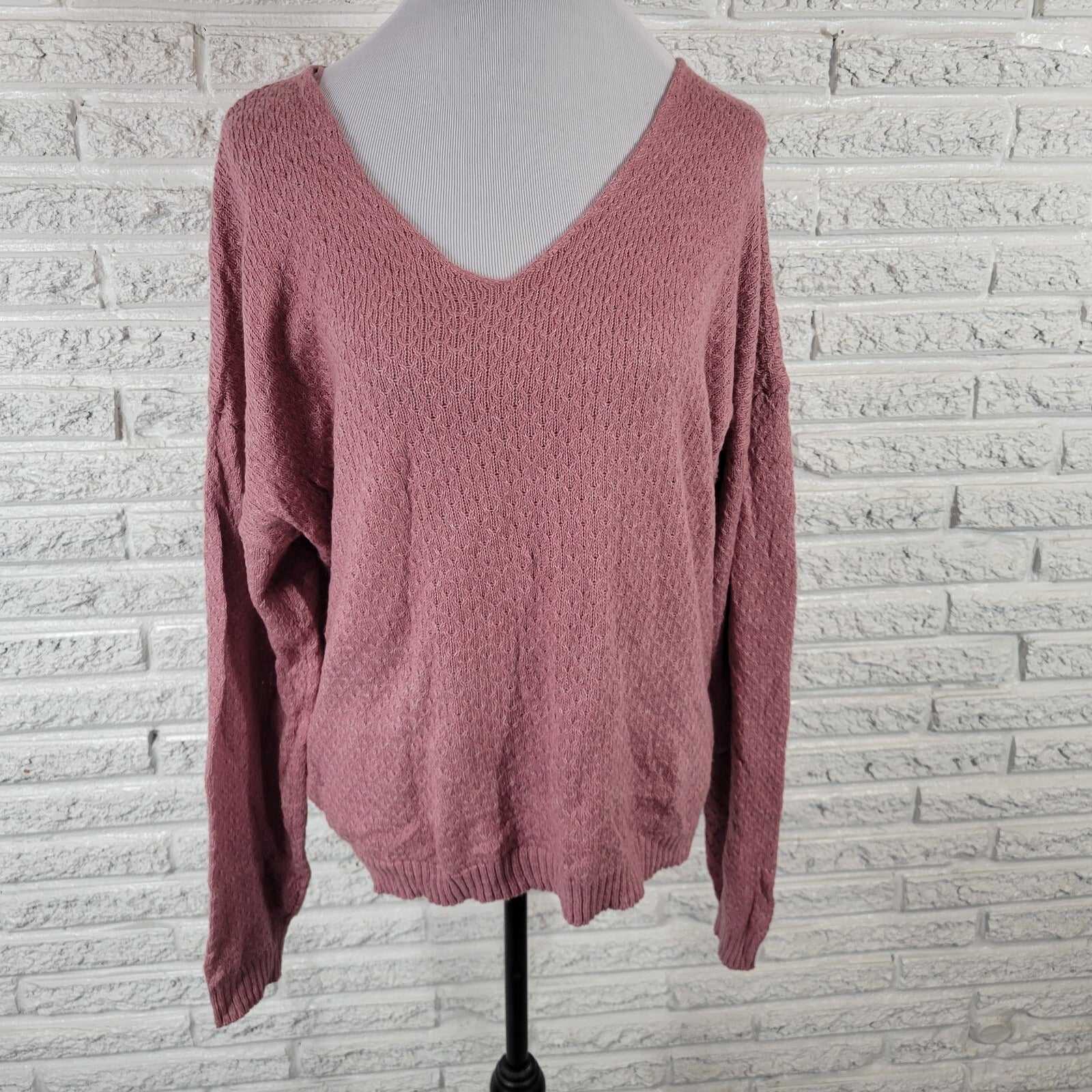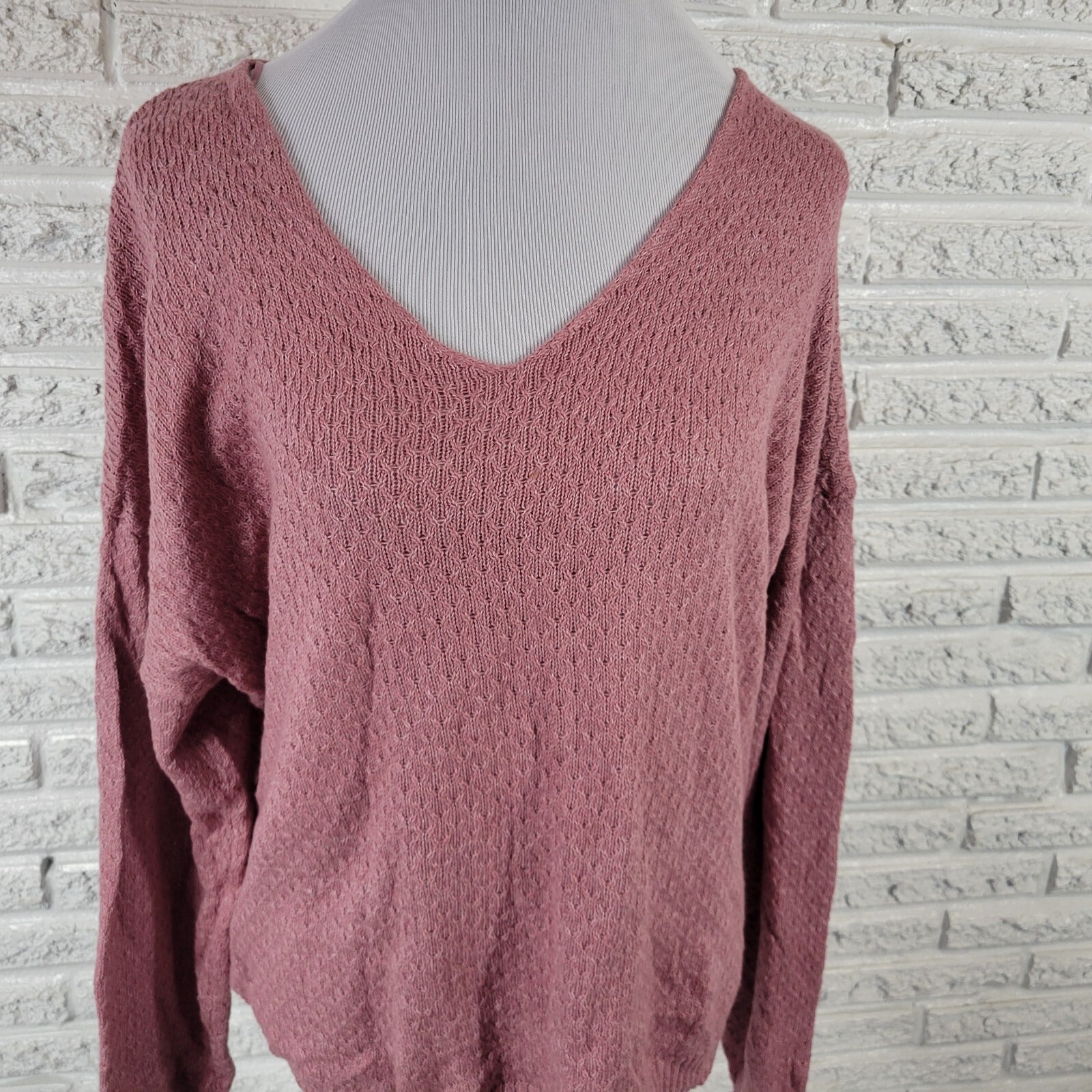 Knox Rose Womens Sweater XL Long Sleeve Cable Knit Pink Lightweight Cotton Blend