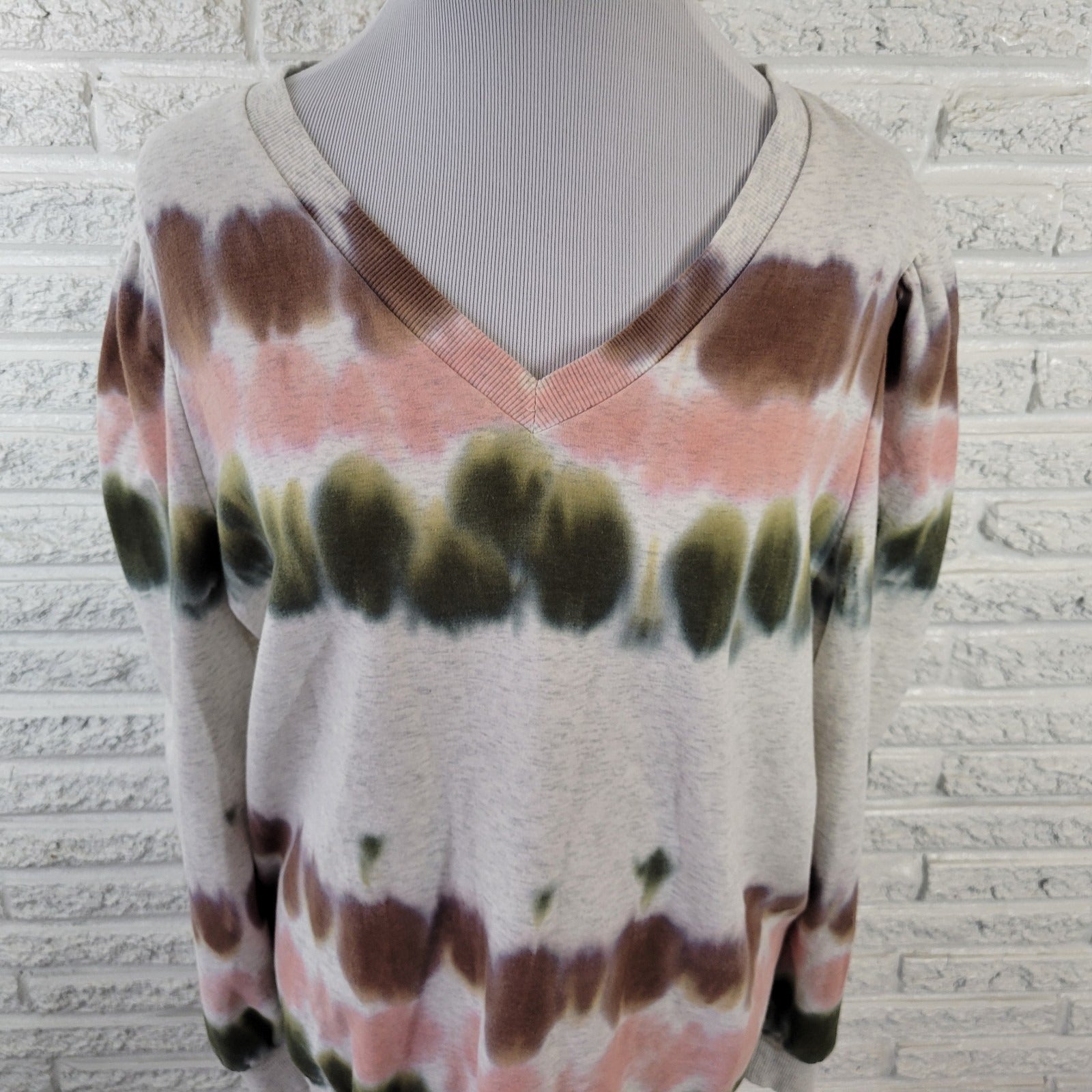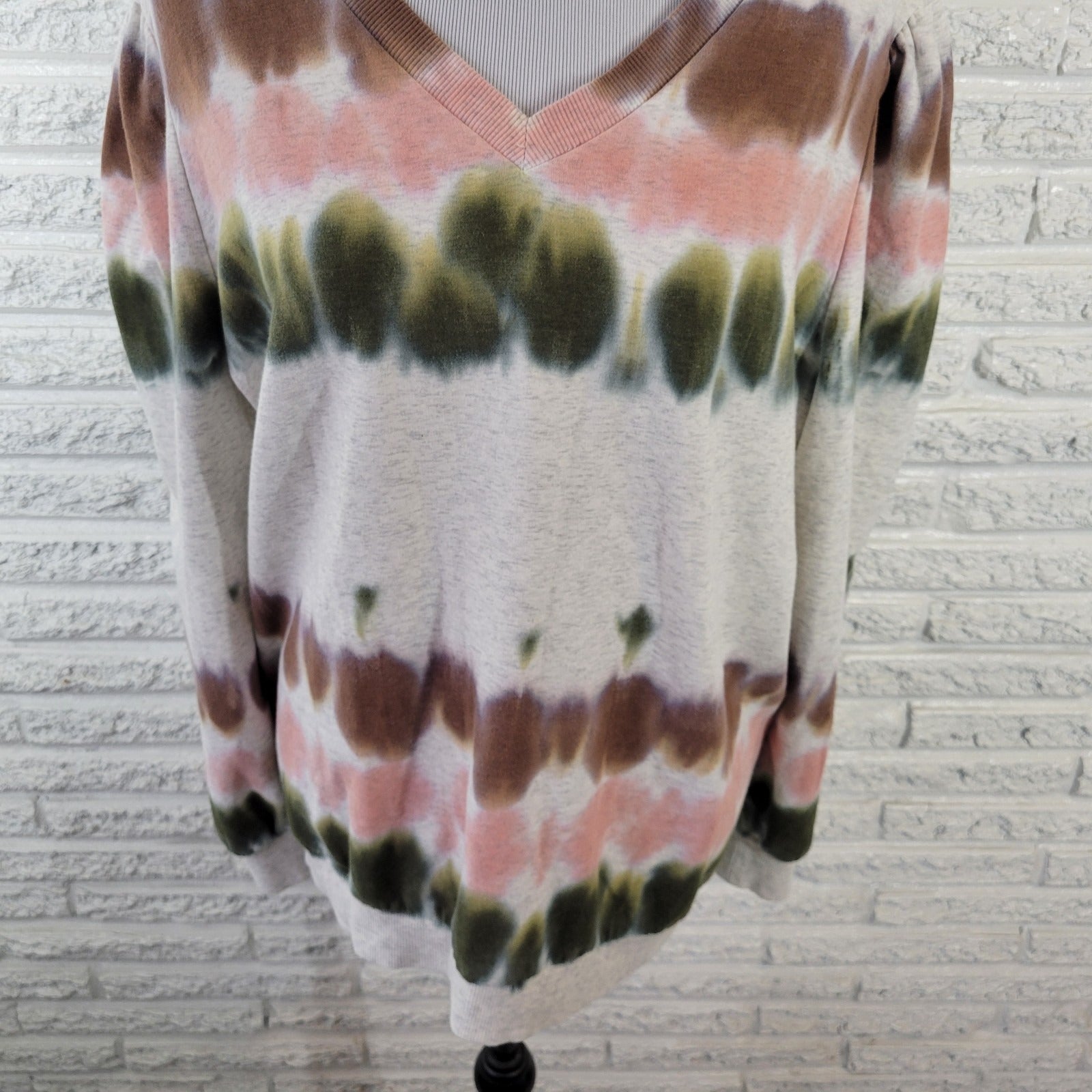 Knox Rose XXL Tie Dye Sweatshirt Green Brown V-Neck Pullover SWE131E