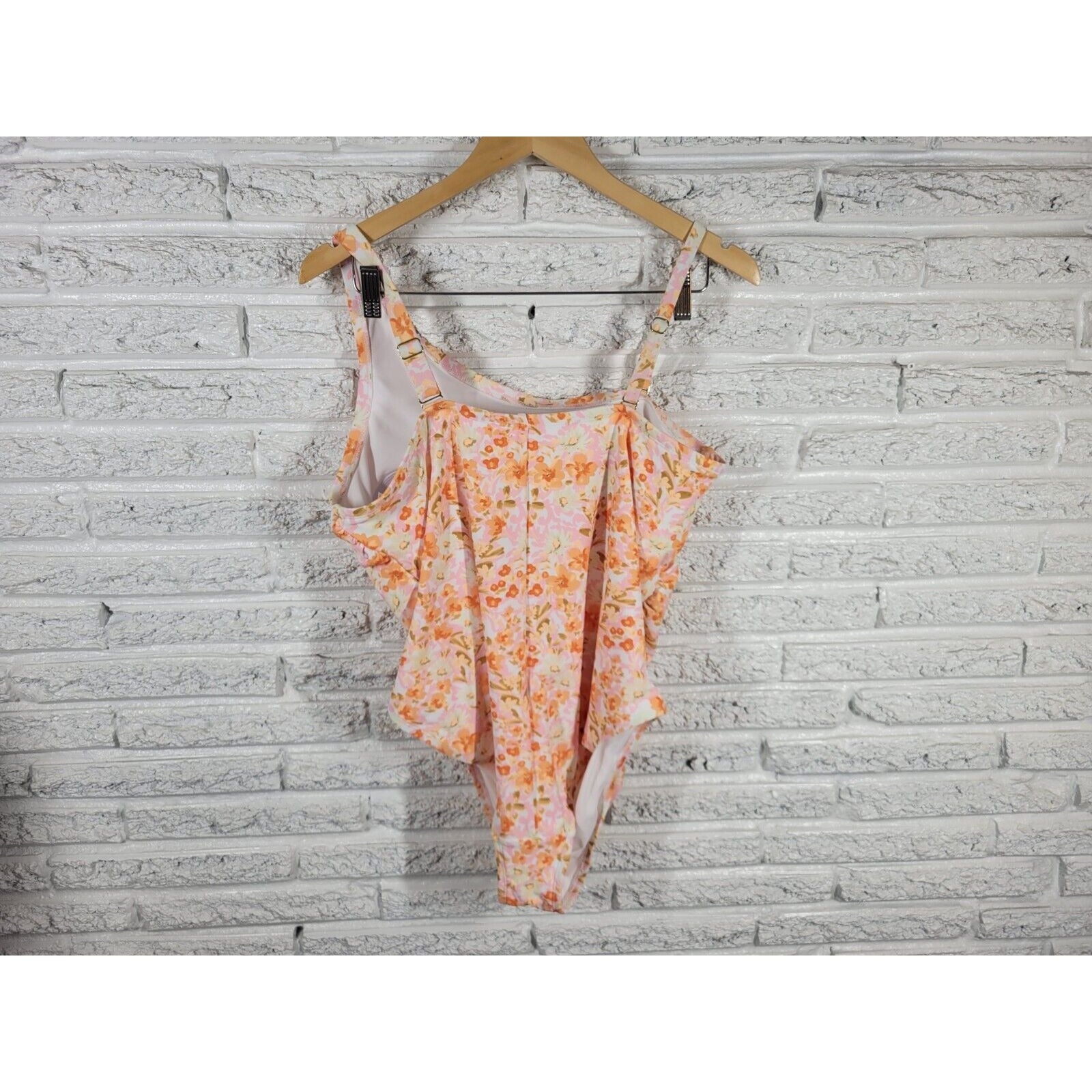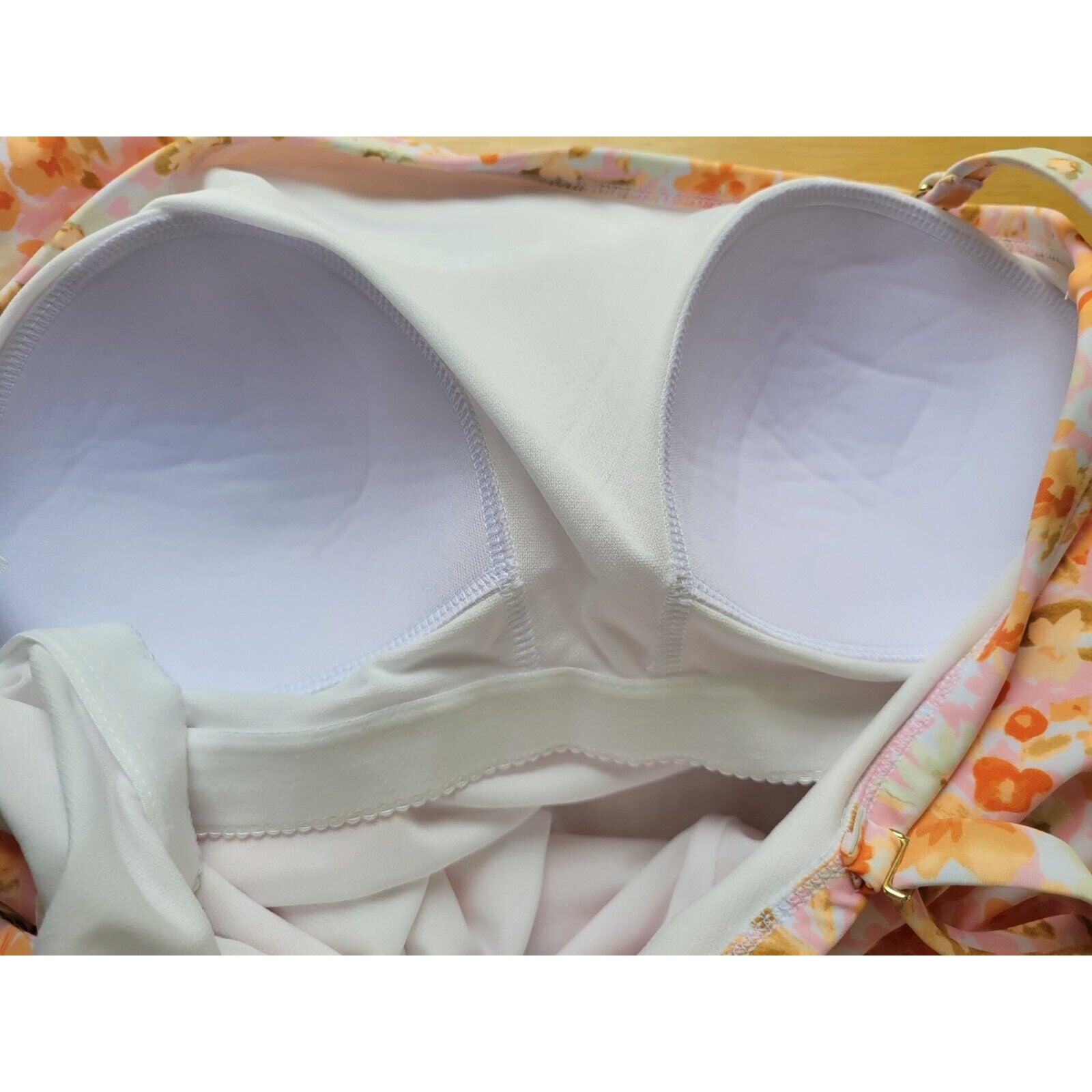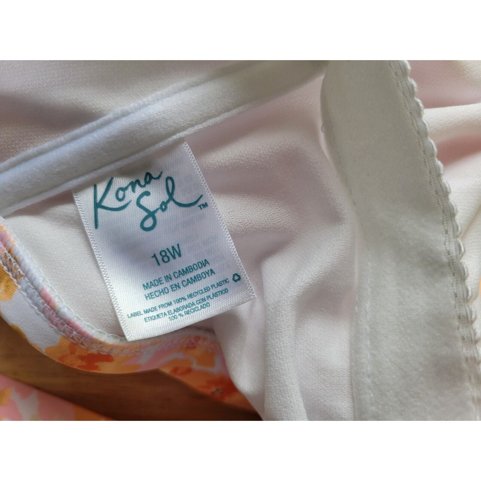 Kona Sol Womens Swimsuit 18W One Piece Orange Floral Bra Ruched Adjustable Strap