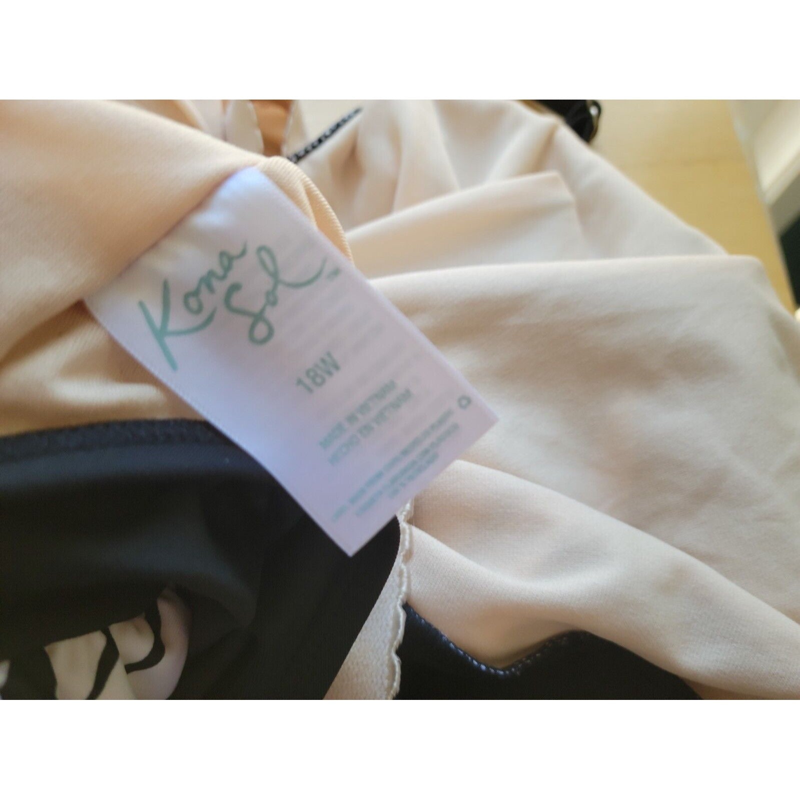 Kona Sol Womens Swimsuit 18W One Piece Spaghetti Strap Keyhole Black Floral