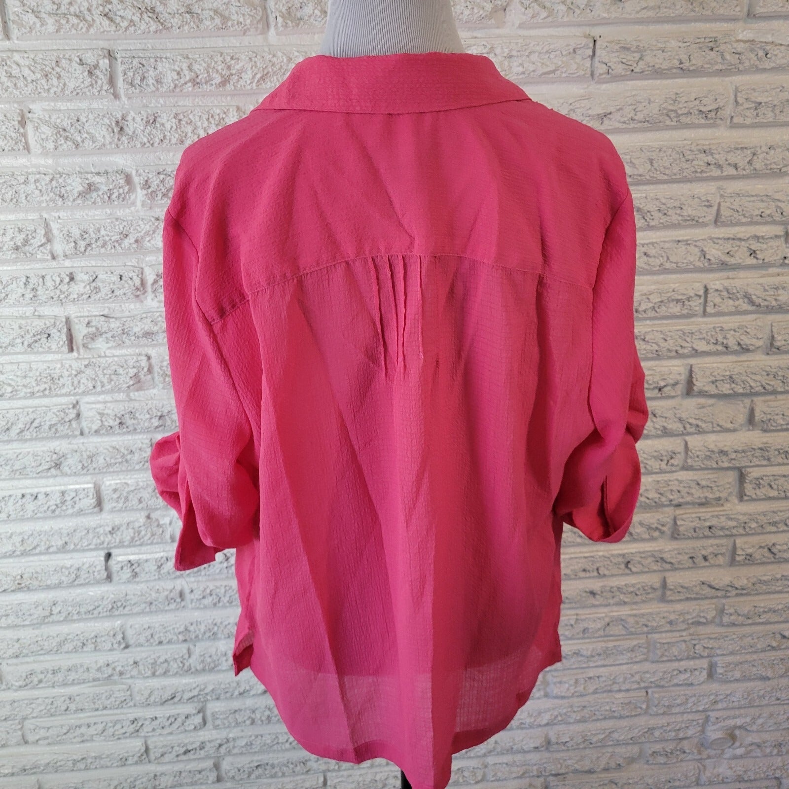 Koret Womens Top XL Roll Tab Sleeve Pink Poly Blend Lightweight Sheer Pintuck