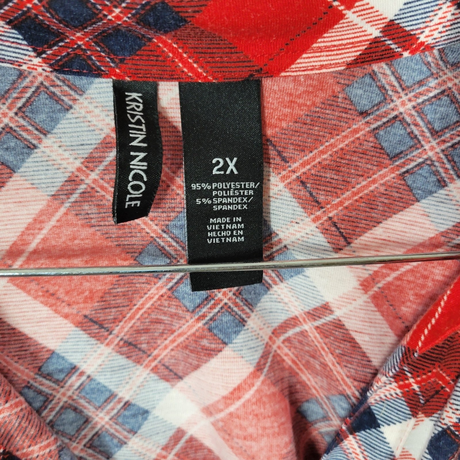 Kristin Nicole Womens Dress 2X Plus Roll Tab Sleeve Red Plaid Button Up Collar