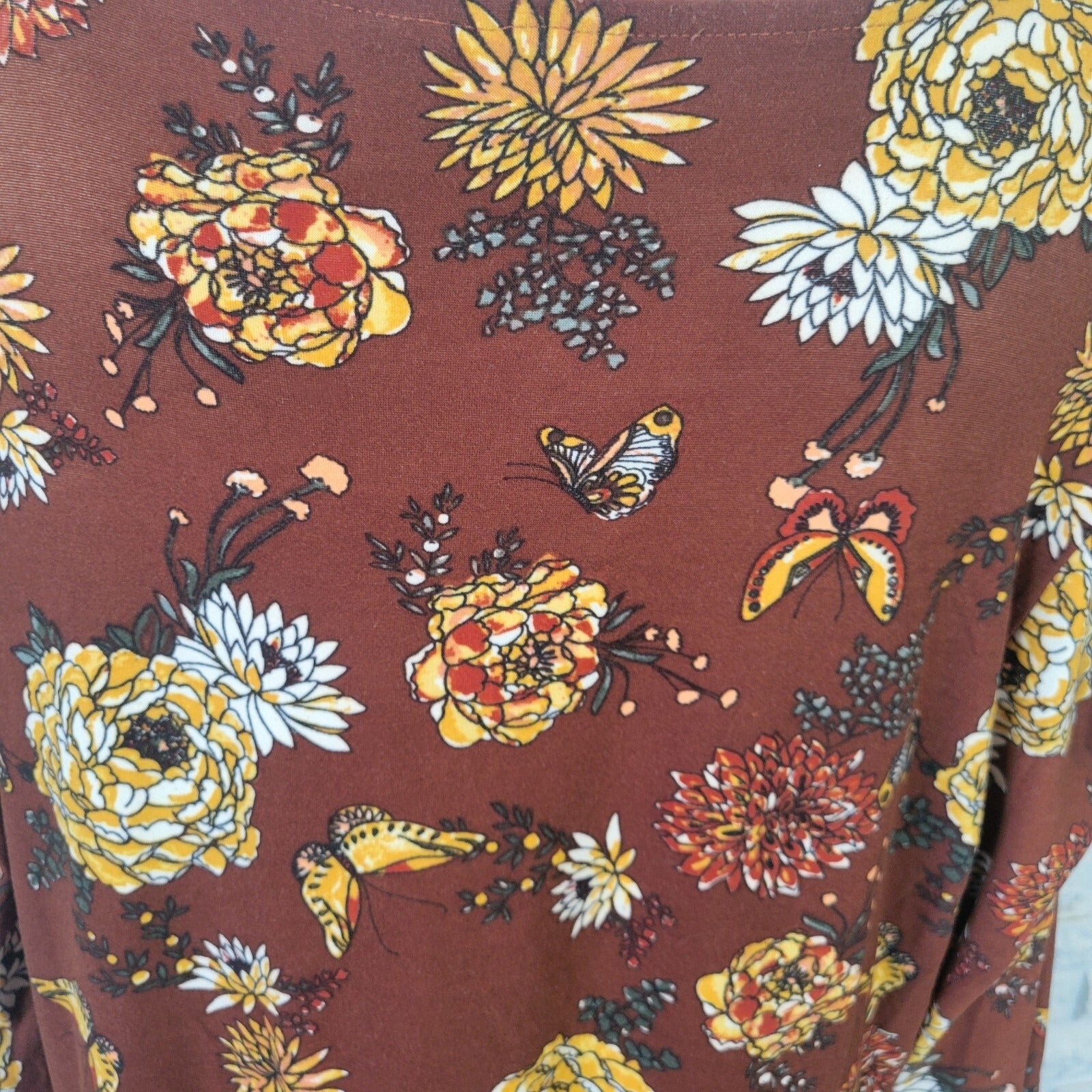 Kristin Nicole Womens Top 1X Plus 3/4 Sleeve Brown Floral Poly Blend Lightweight