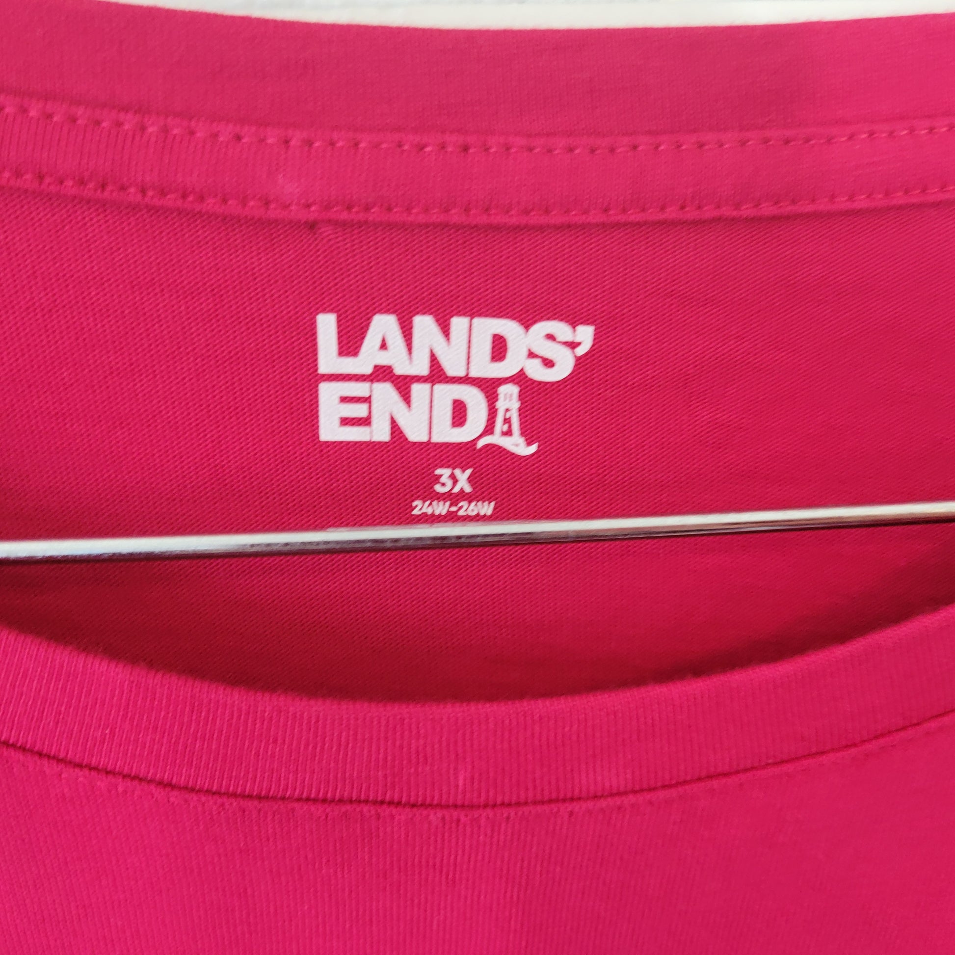Lands' End 3X (24W-26W) Pink Cotton Tunic Top 3/4 Sleeve Crew Neck PIN32E