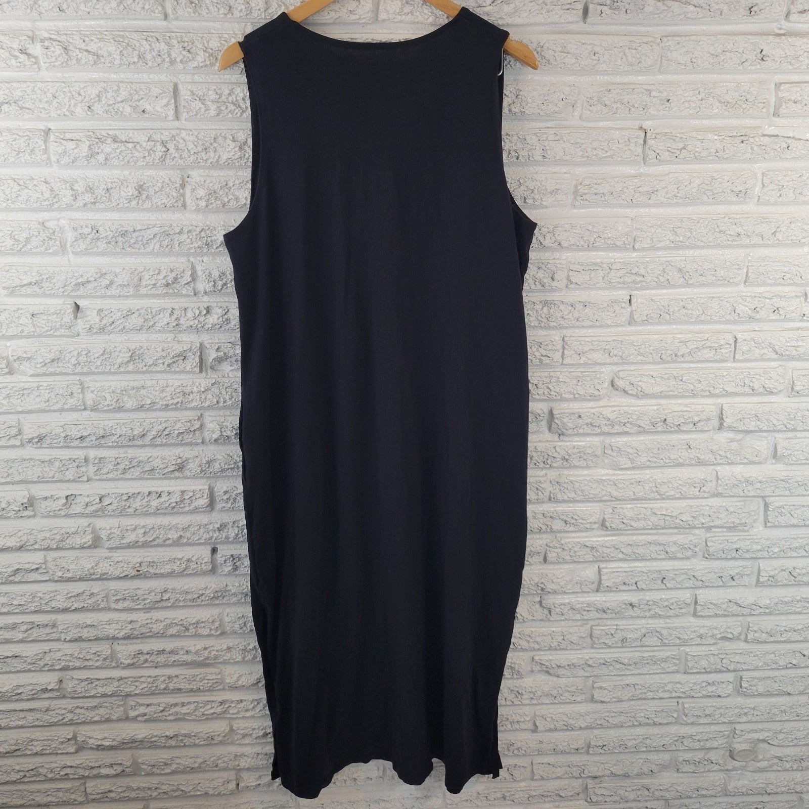 Lands End Womens Dress 1X Plus Sleeveless Shift Black Cotton Side Slits Comfy