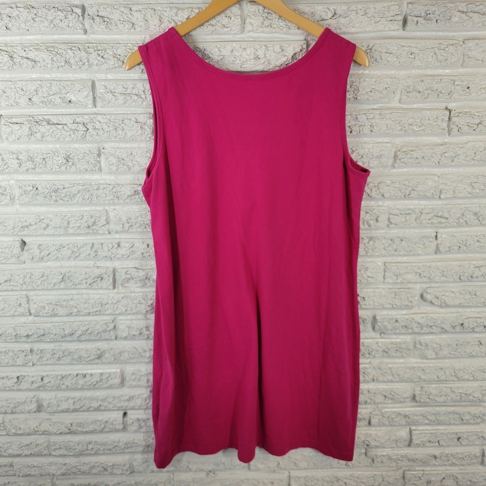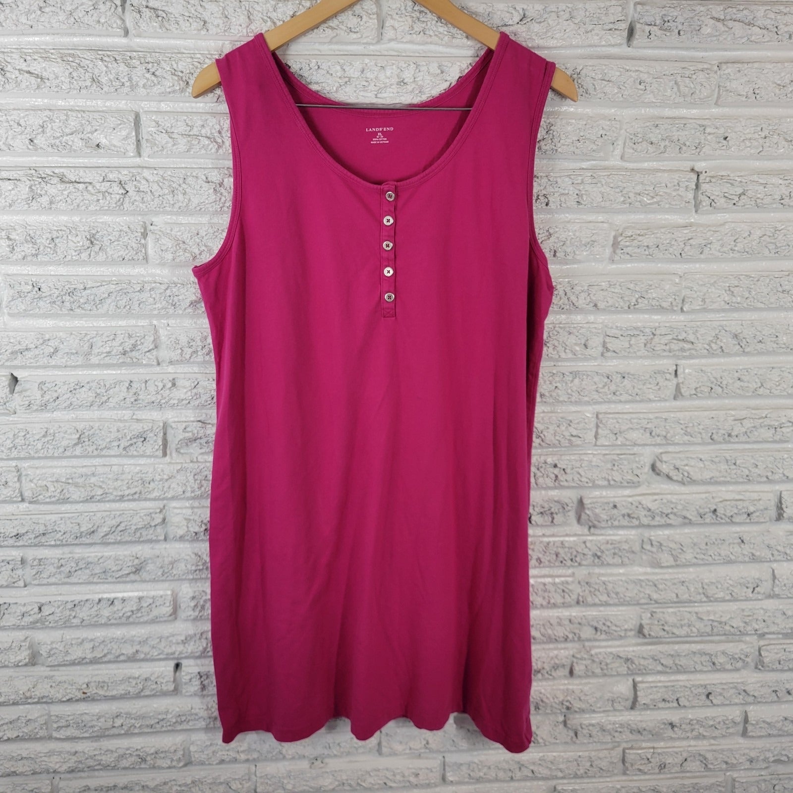 Lands End Womens Dress XL Mini Tank Sleeveless Pink Quarter Button Cotton Casual