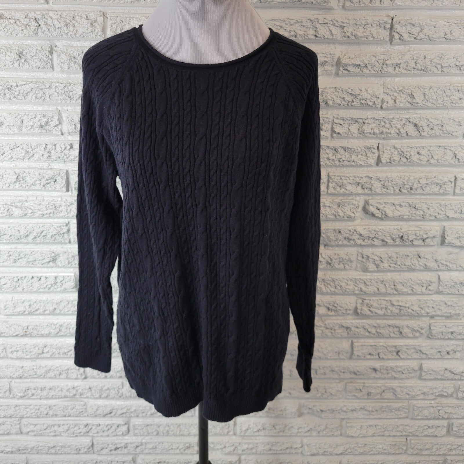 Lands End Womens Sweater XL 18 Plus Cable Knit Black Cotton Casual Comfy