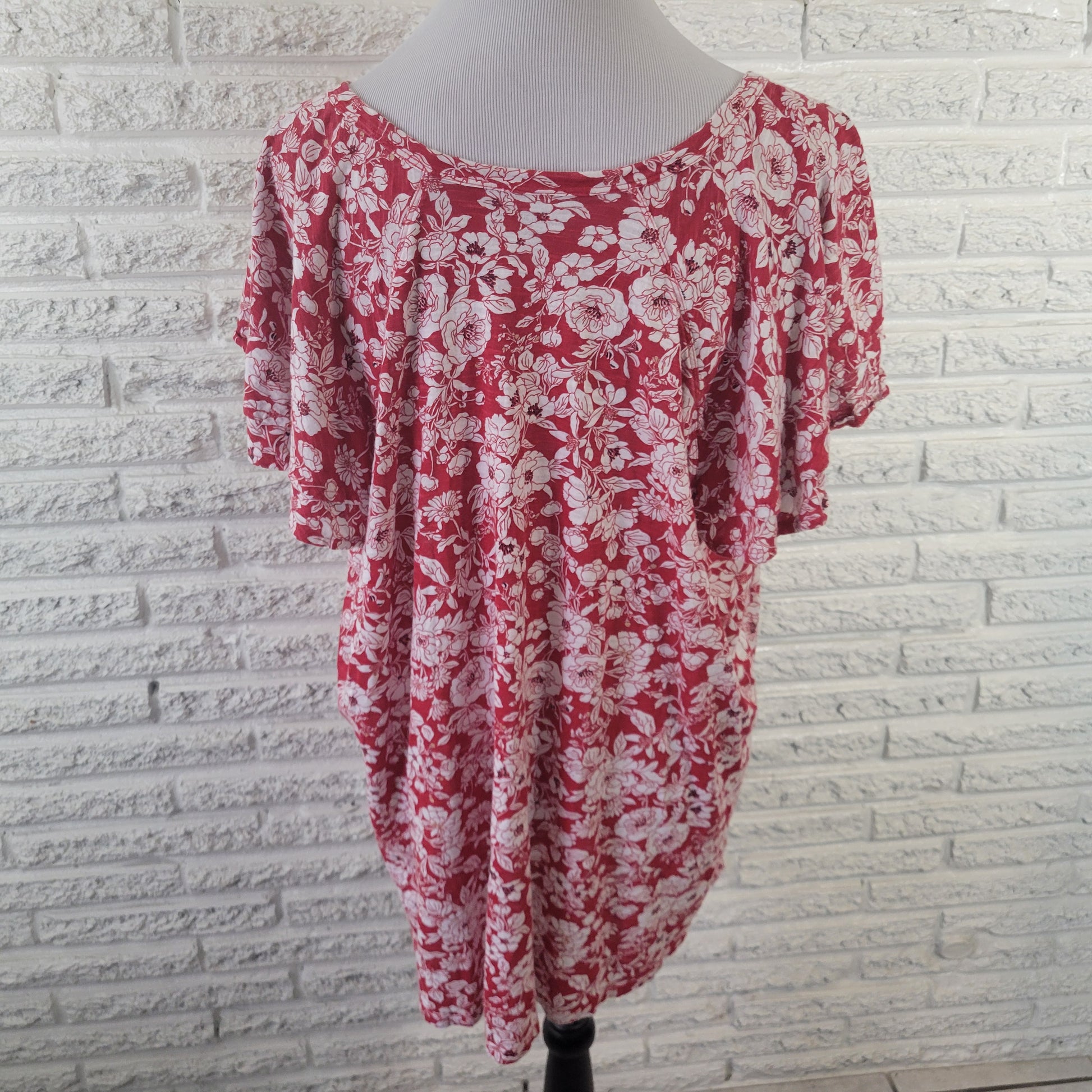 Lane Bryant 22/24 Top Plus Size Red White Floral V-Neck Flutter Sleeve FLO255E