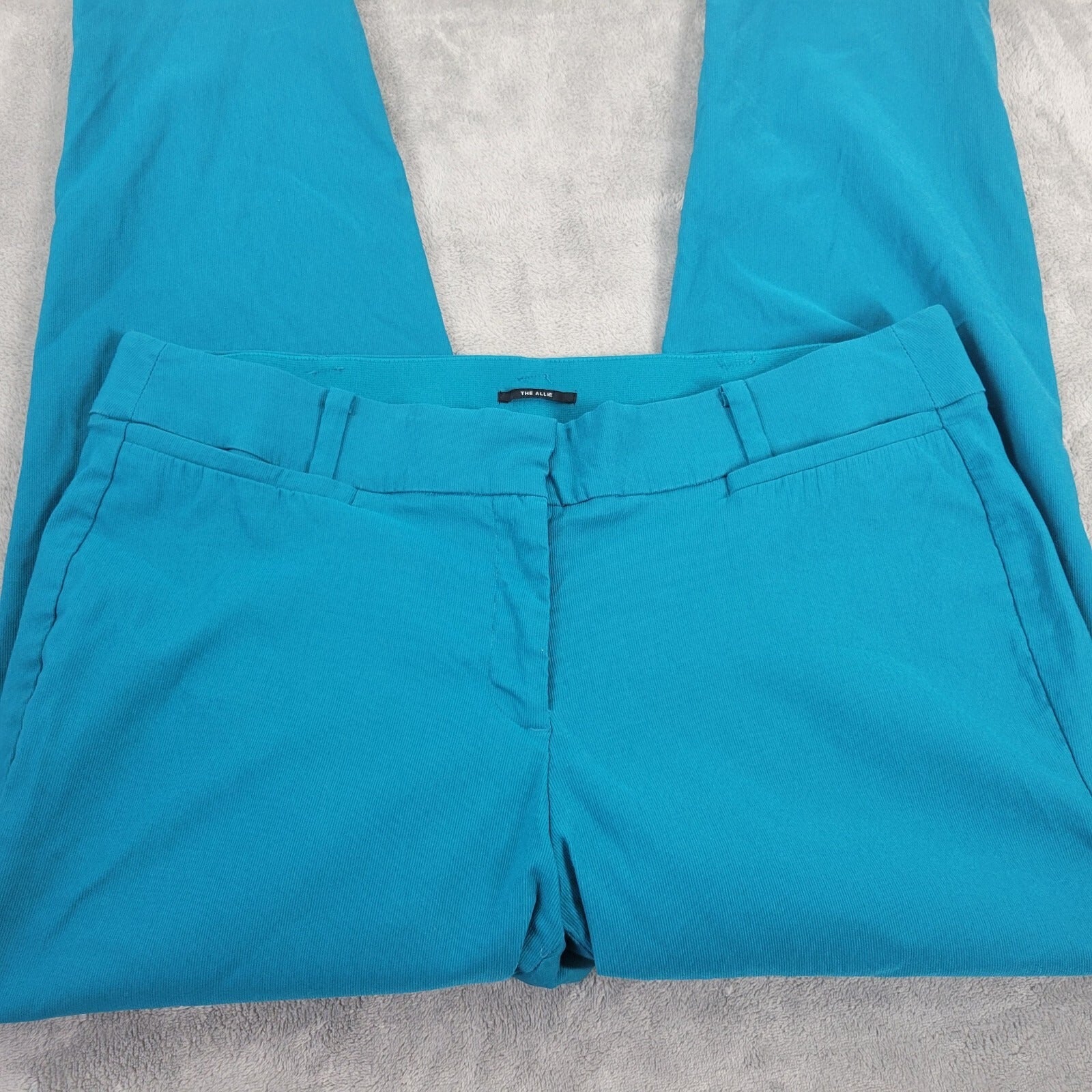 These Lane Bryant Allie pants are a stylish addition to any wardrobe. The pants come in a beautiful shade of blue and have a cropped design, making them perfect for any casual or business occasion. The pants feature an elastic waistband and pockets for added convenience. The pants are made of a comfortable blend of nylon, spandex, and rayon and are machine washable for easy care. They have a regular fit and a straight leg style, with a 27-inch inseam and a waist size of 36 inches. These pants are perfect for women who want to stay comfortable and stylish all year long.