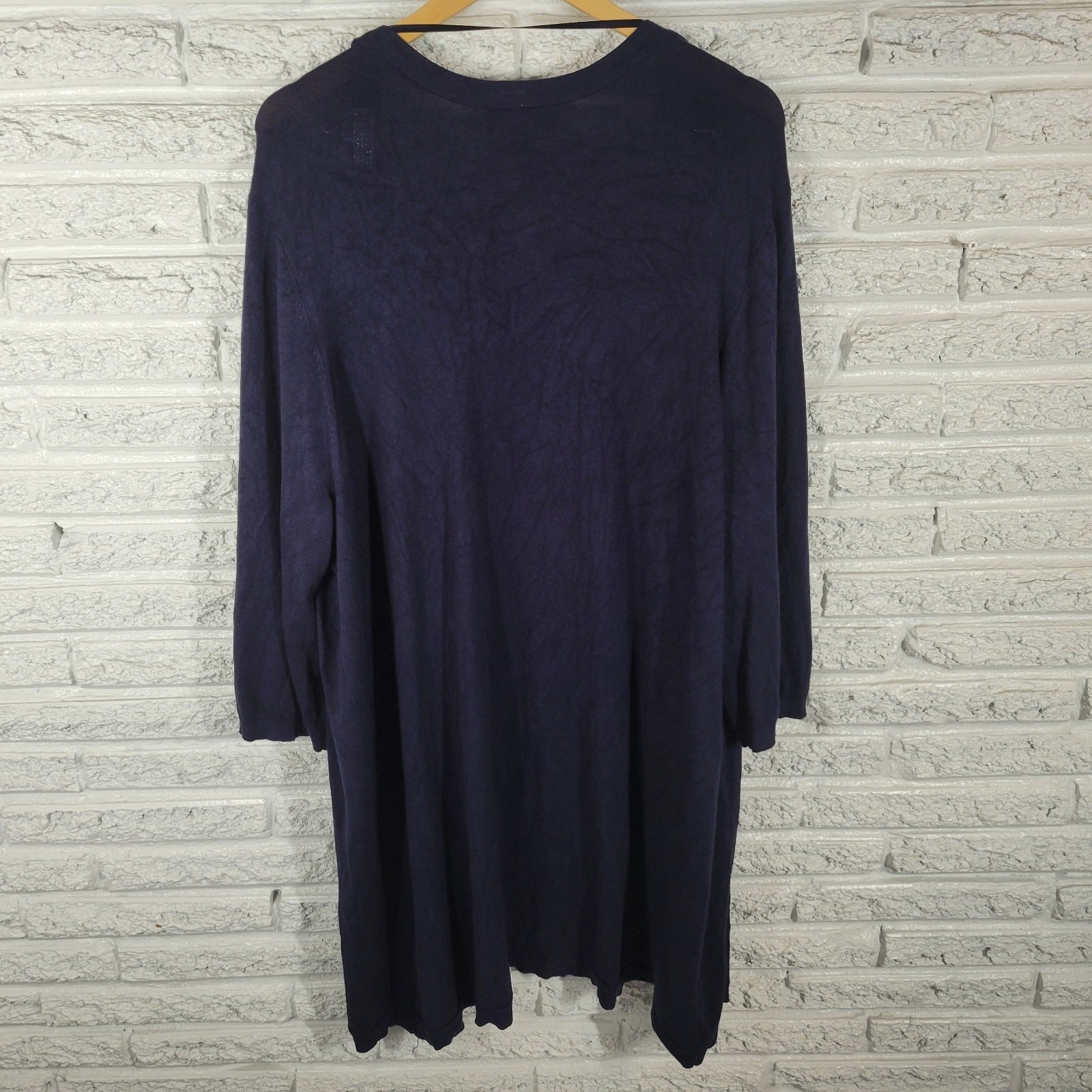 This Lane Bryant Women Sweater in size 22/24 is a stylish and comfortable blue cardigan made from a blend of nylon and rayon. It features a solid pattern with 3/4 sleeves, making it perfect for casual and travel occasions. The cardigan is designed with an open accent, a feature that adds a touch of versatility to the garment. This knit fabric sweater is machine washable and is suitable for all seasons, making it a versatile and practical addition to any woman's wardrobe.