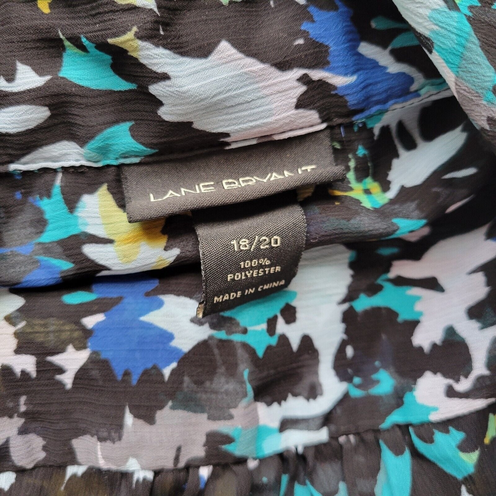 Lane Bryant Women Top 18 20 Plus Ruffle Collar Blue Watercolor Sheer Lightweight