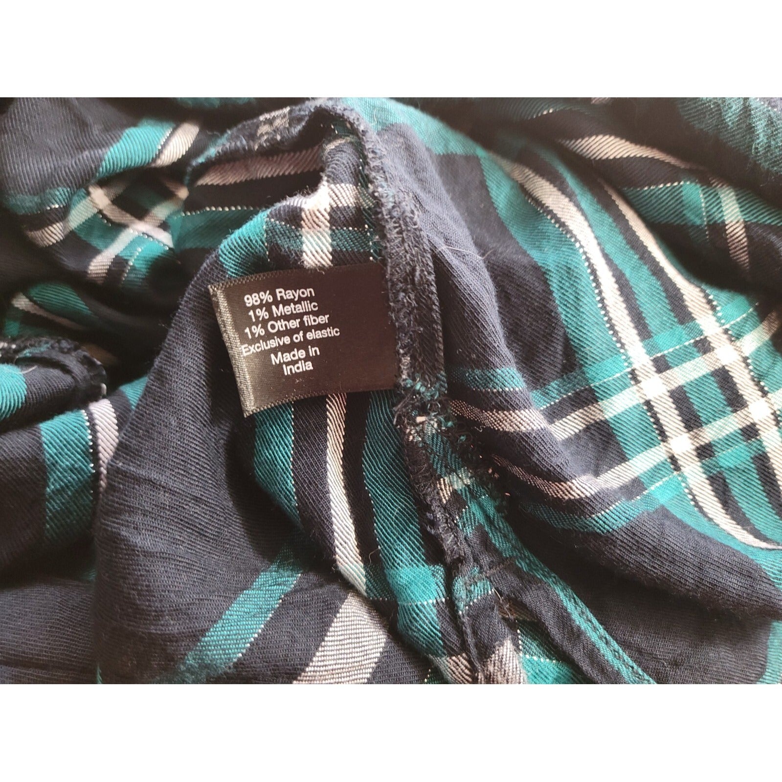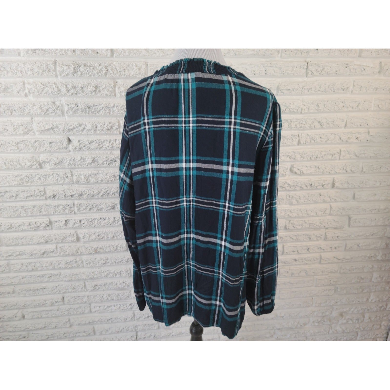 Lane Bryant Women Top 18 Plus Elastic Long Sleeve Pullover Blue Metallic Plaid