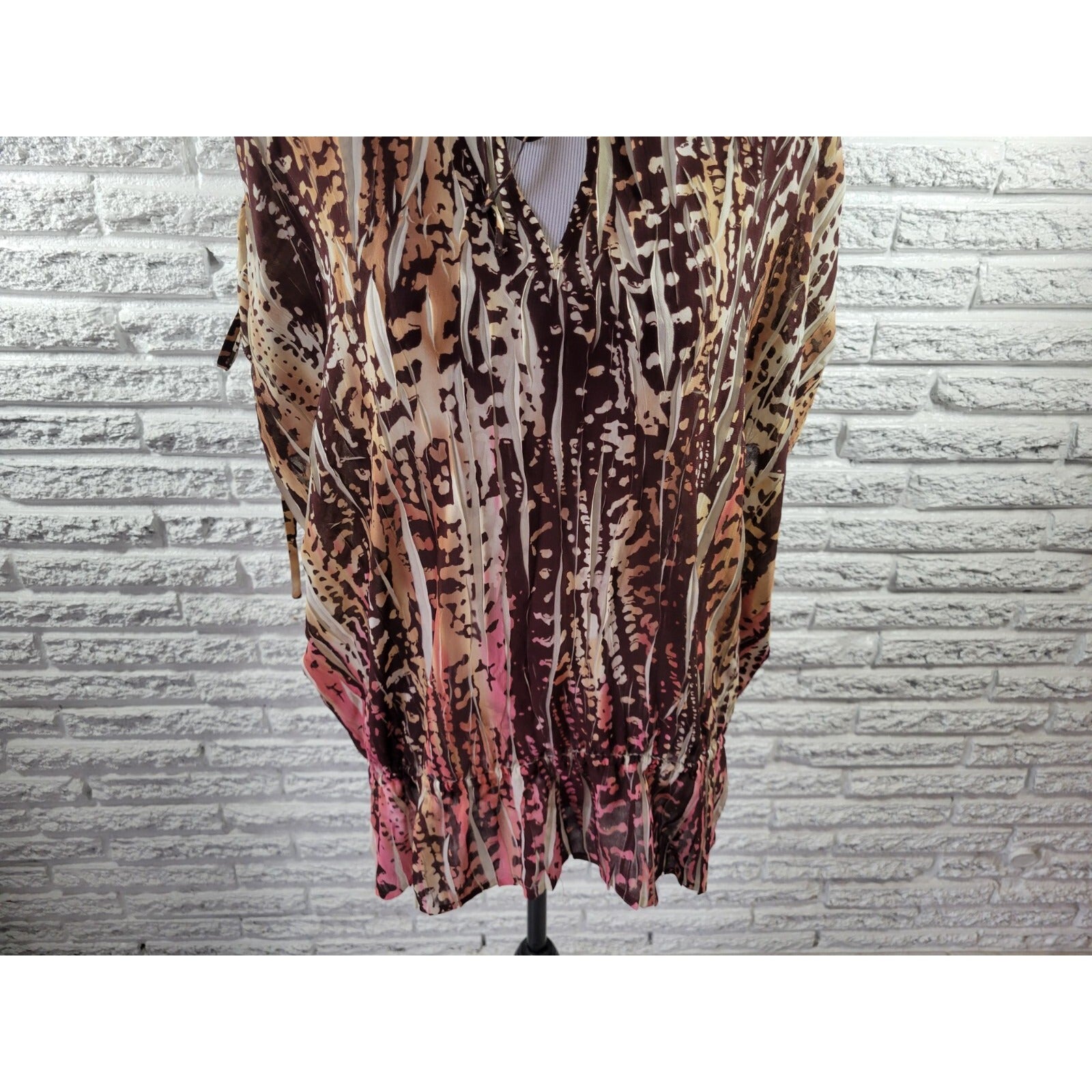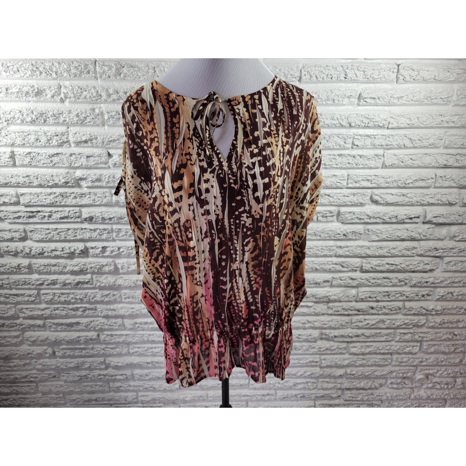 Lane Bryant Women Top 22 24 Plus Sleeveless Polyester Sheer Tan Animal Print