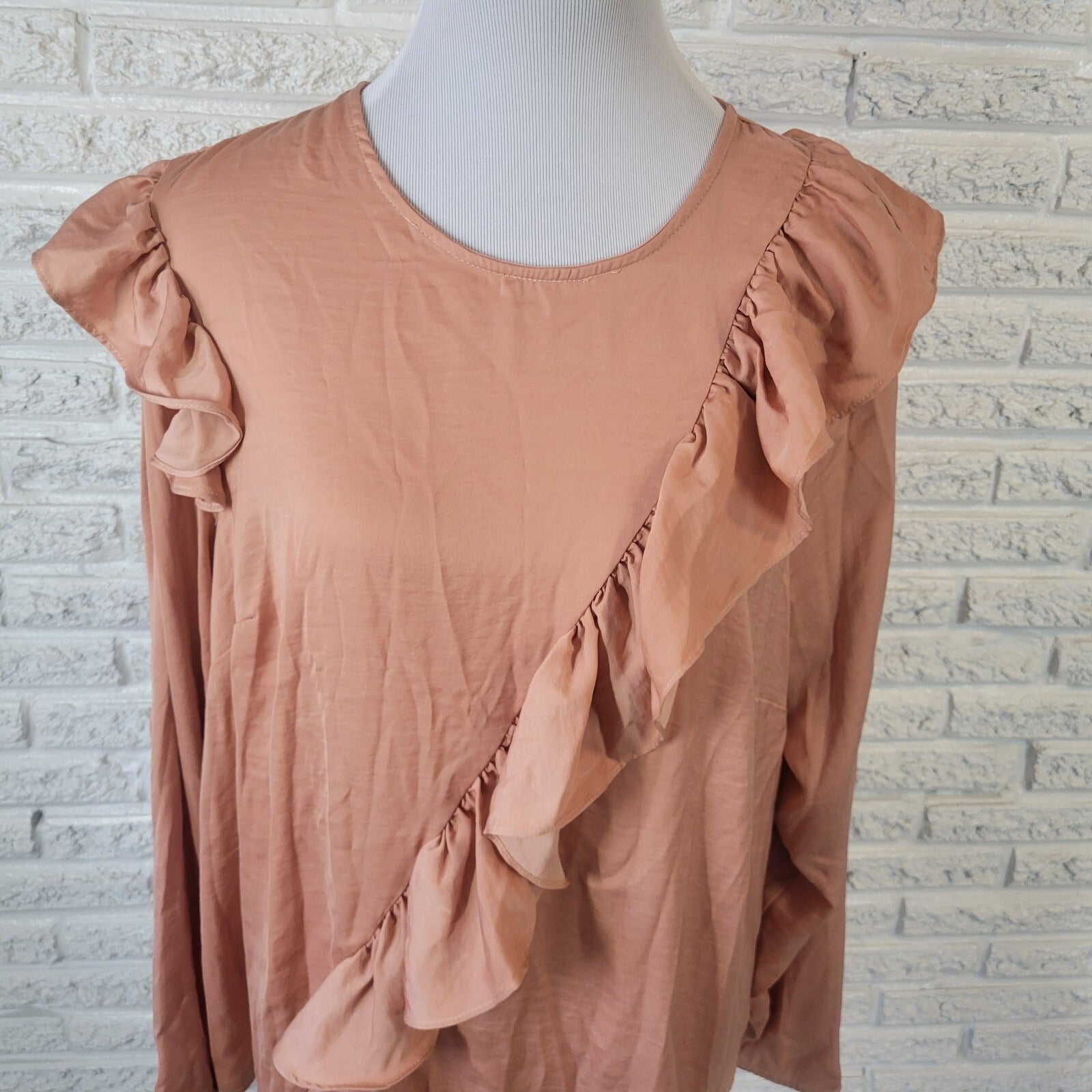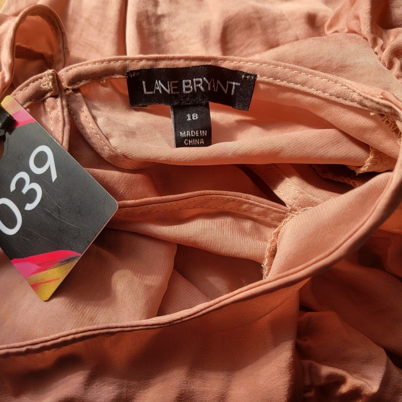 Lane Bryant Womens 18 Long Sleeve Light Brown Keyhole Back Lightweight Ruffle
