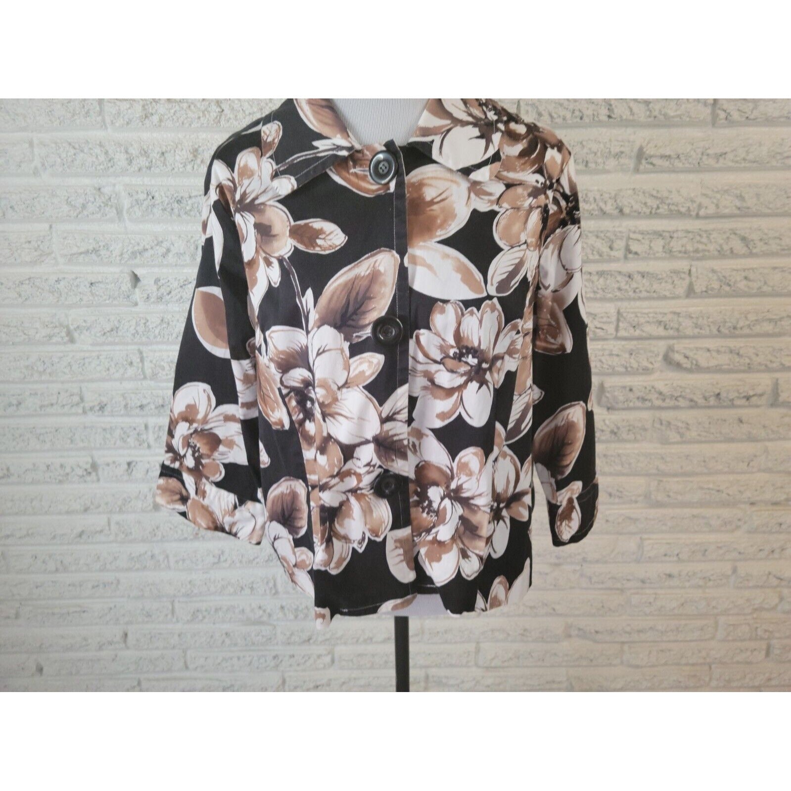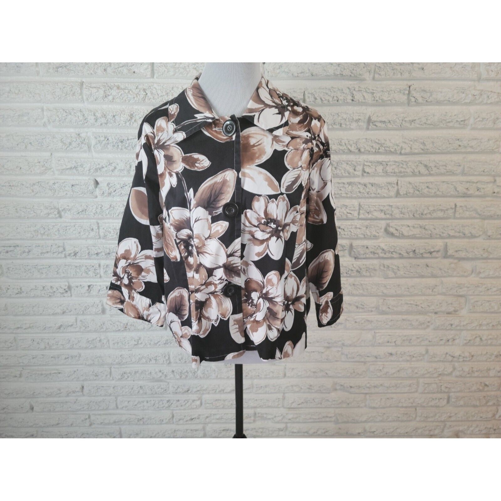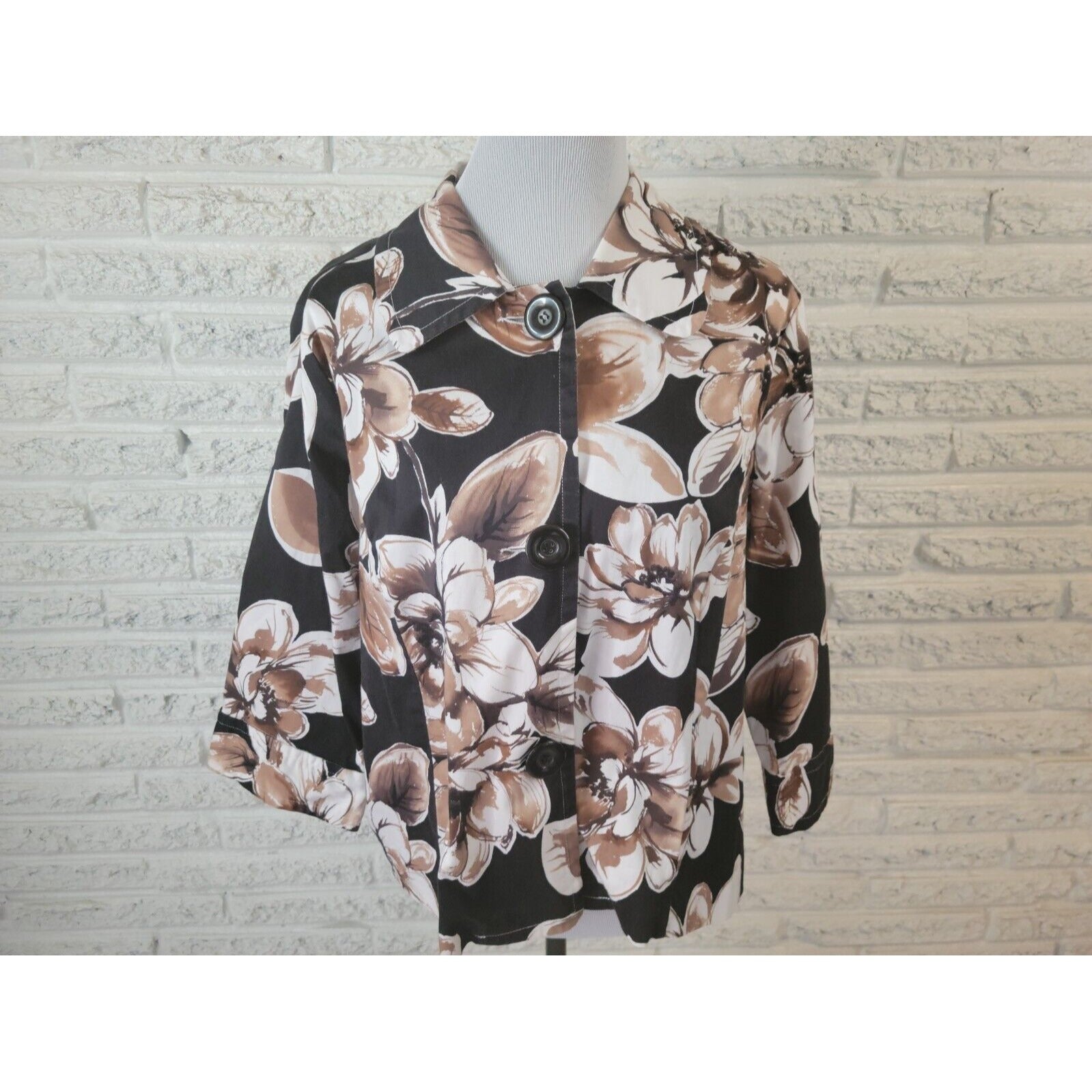 Lane Bryant Womens Shirt 14W 16W Shacket Jacket Black Floral Poly Blend Career