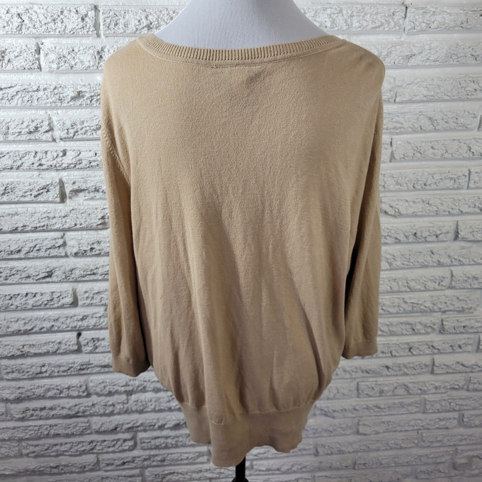 Lane Bryant Womens Sweater 18 20 Plus Cardigan Beige Lightweight Metallic Office