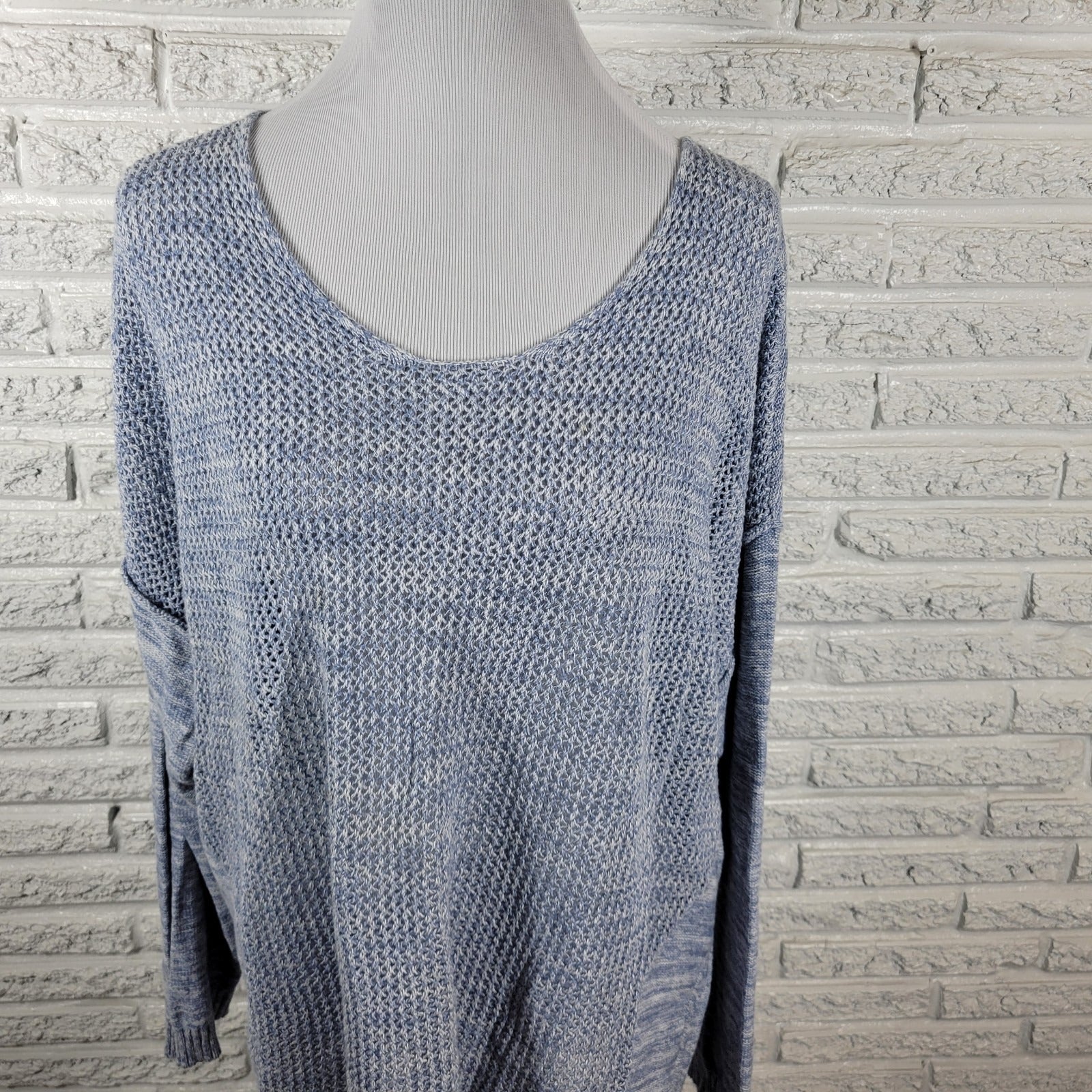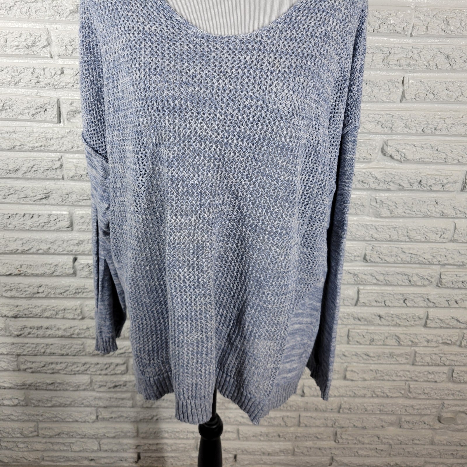 Lane Bryant Womens Sweater 22 24 Plus Open Knit Blue Marled Cotton Casual Comfy