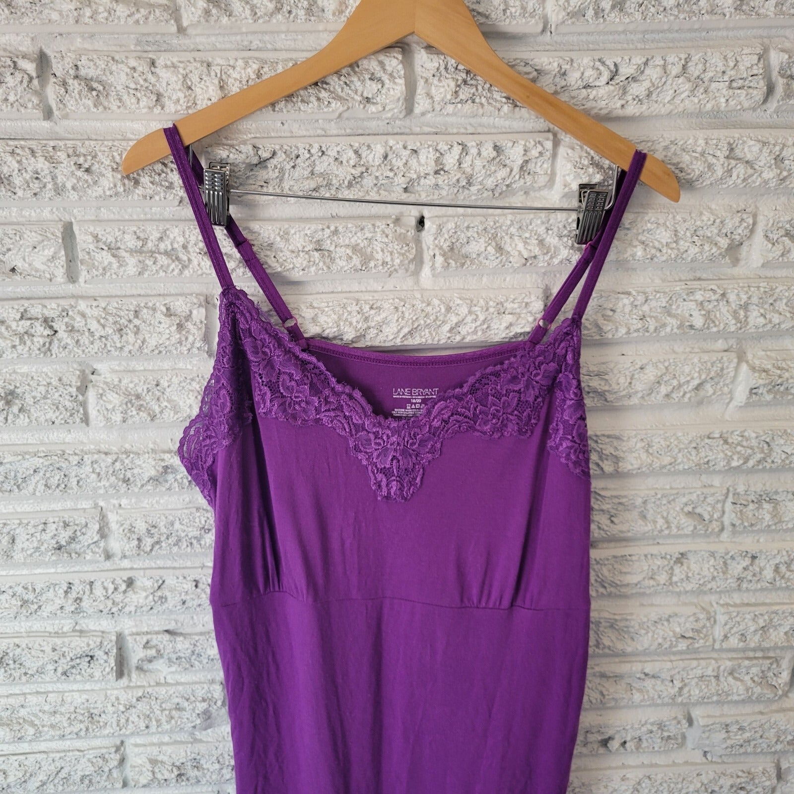 Lane Bryant Womens Top 18 20 Plus Camisole Purple Lace Trim Adjustable Spaghetti