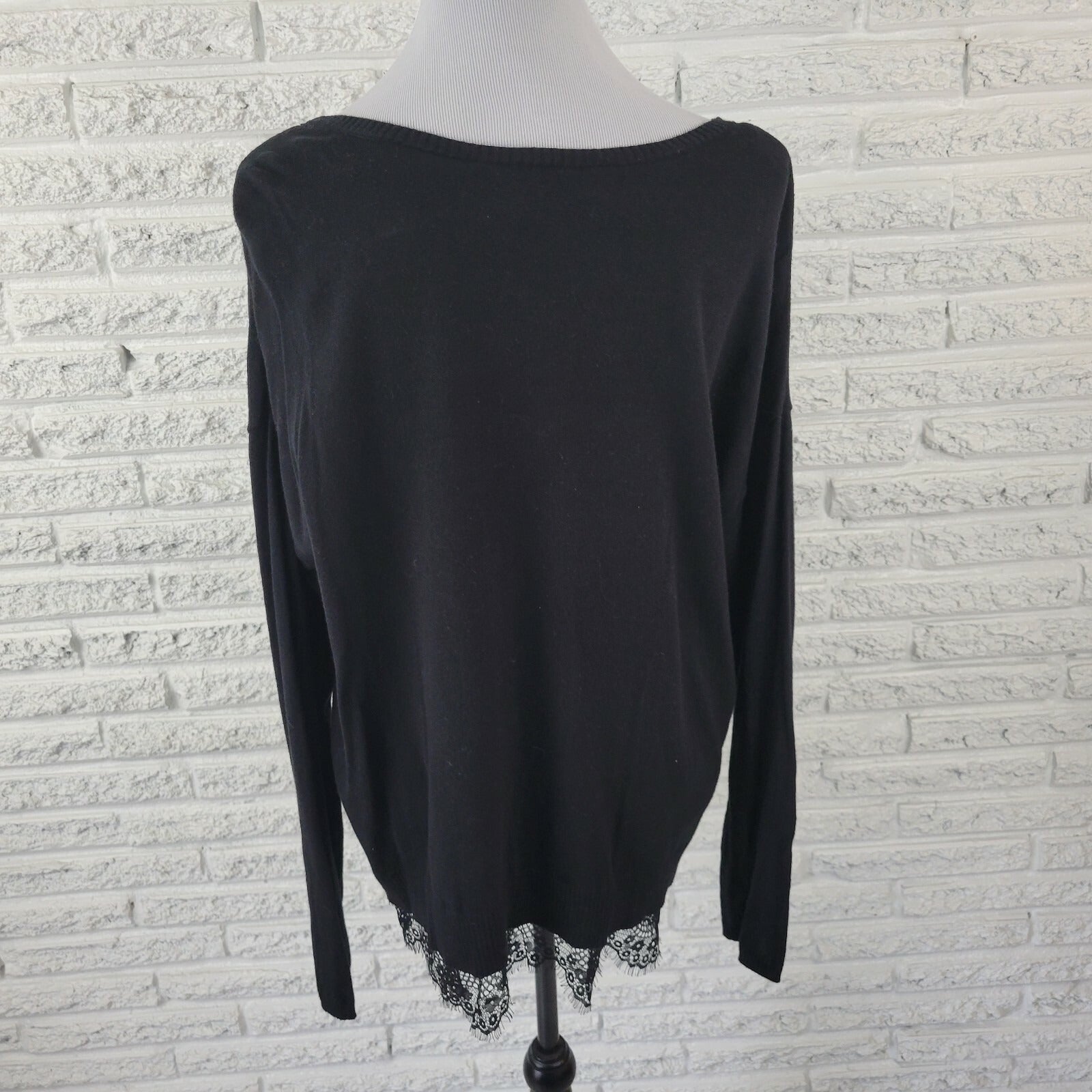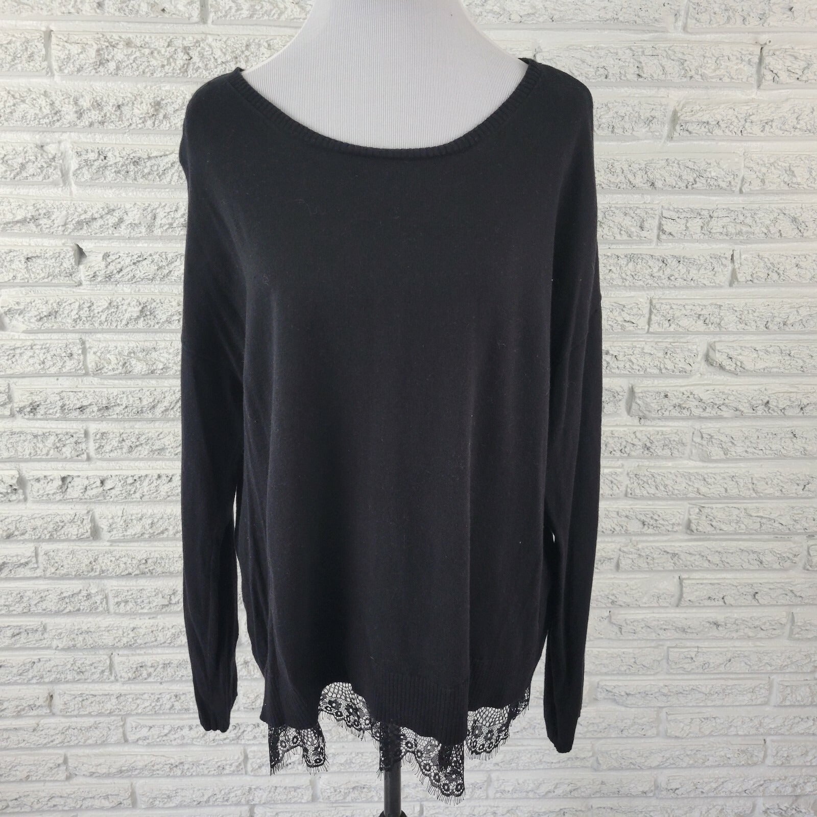 Lane Bryant Womens Top 18 20 Plus Long Sleeves Lace Hem Black Knit Basic Casual