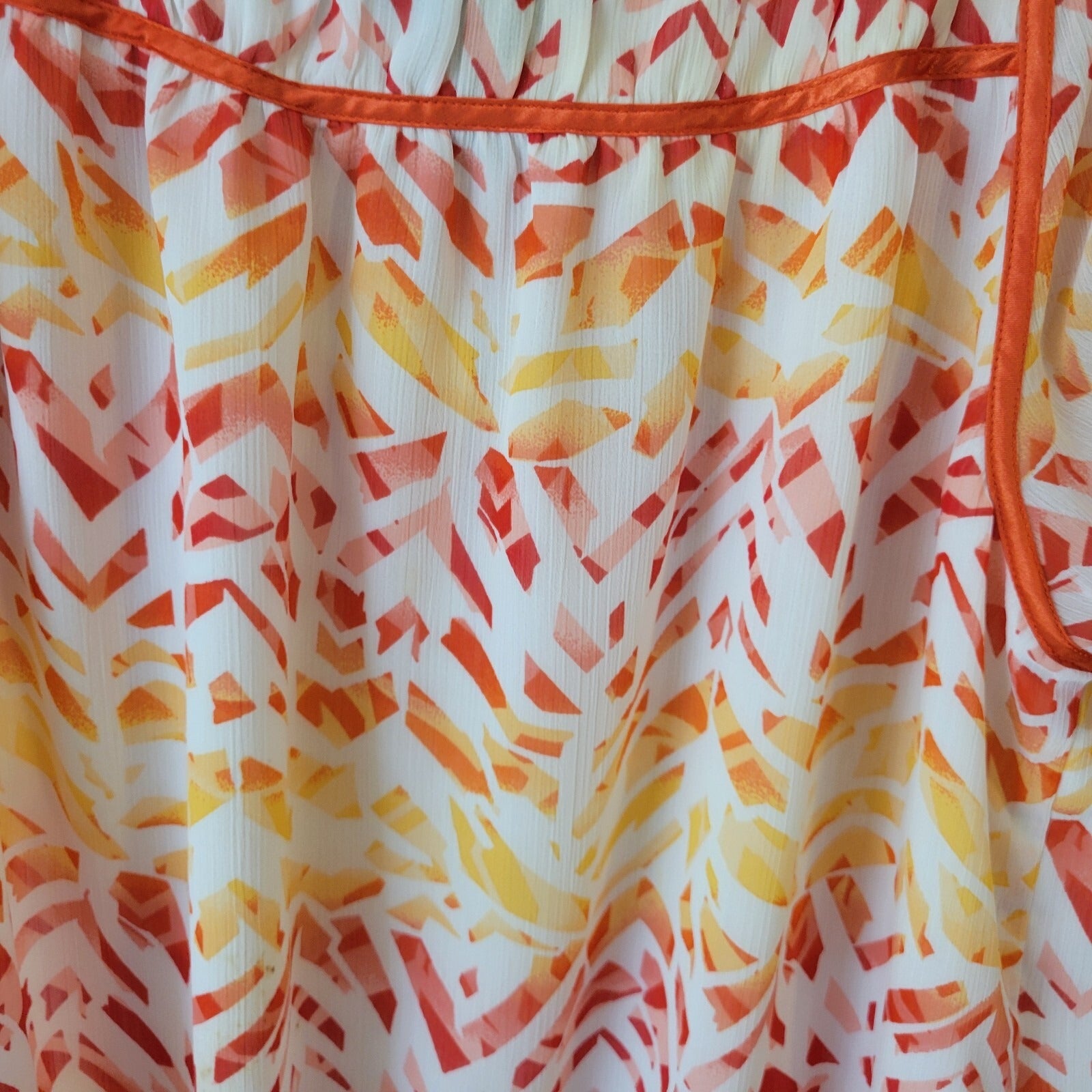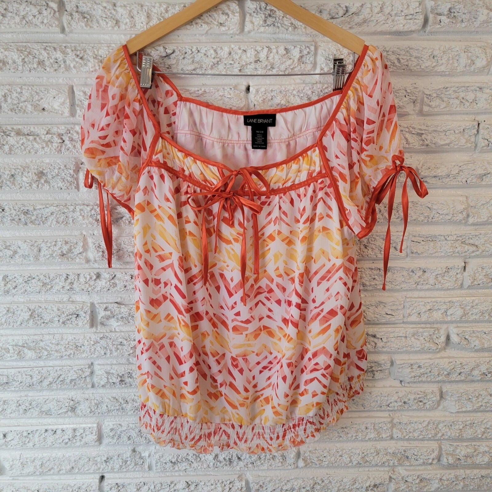 Lane Bryant Womens Top 18 20 Tied Sleeve Orange Watercolor Keyhole Sheer Lined