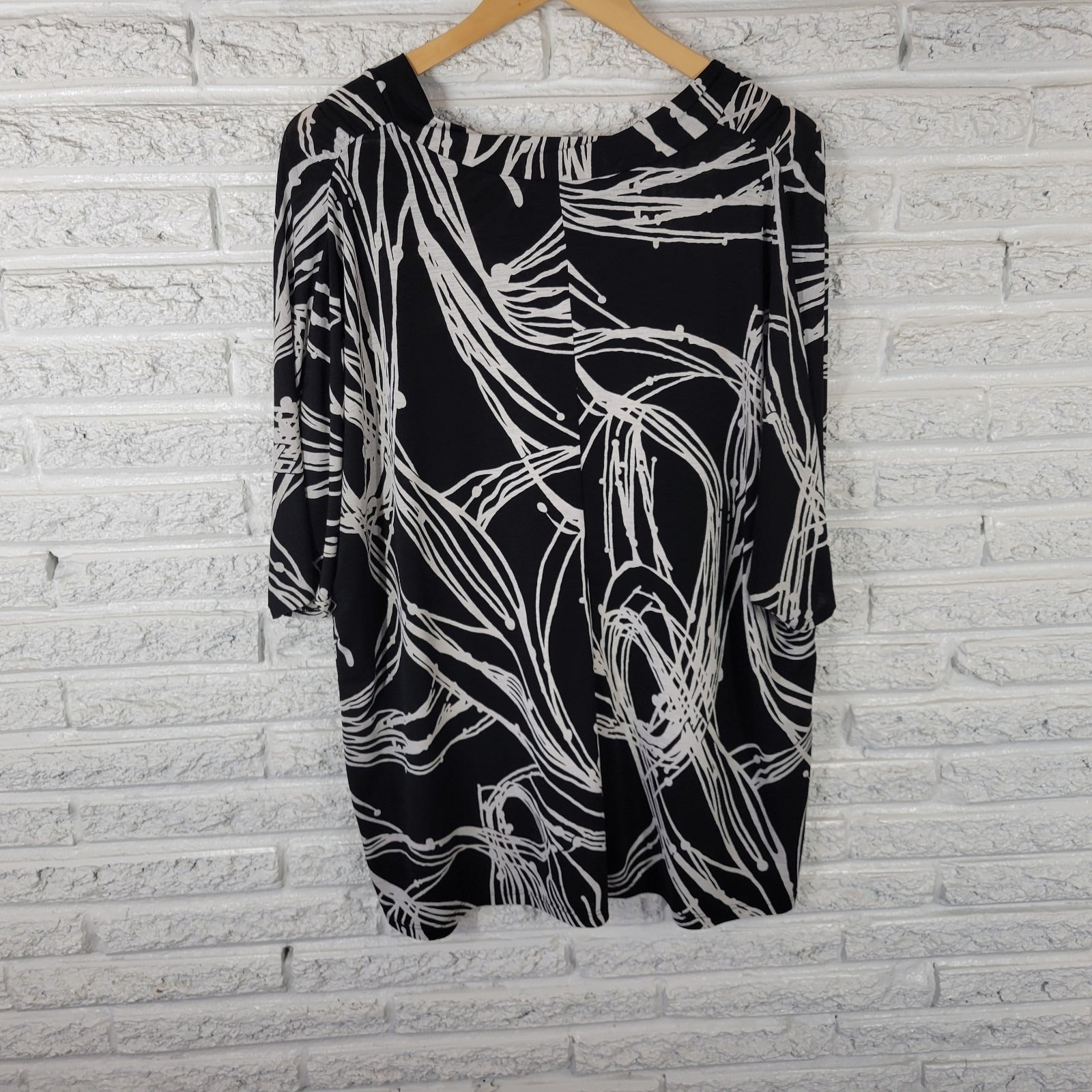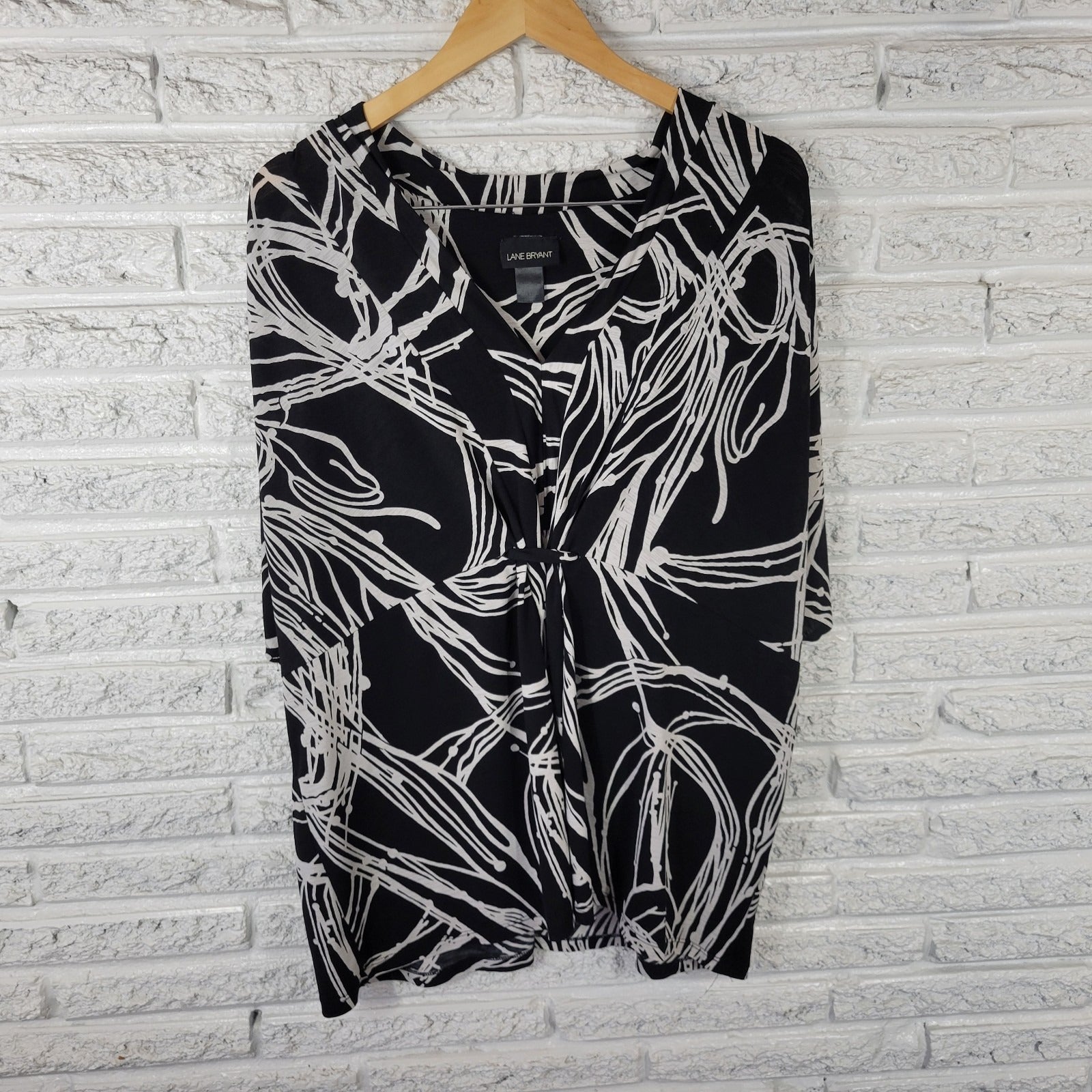 Lane Bryant Womens Top 22 24 Plus Black Geometric Poly Blend Office Casual Comfy