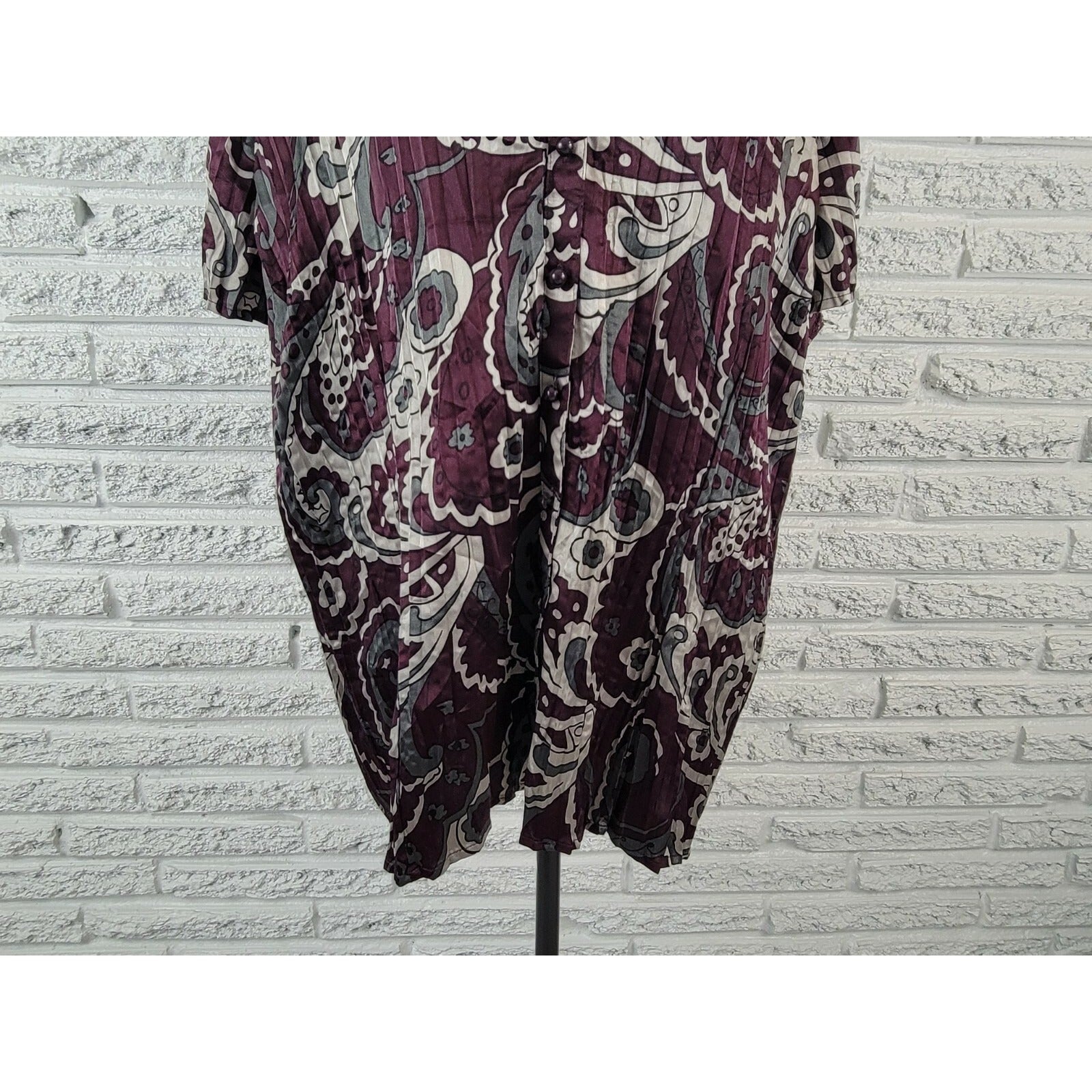 Lane Bryant Womens Top 22 24 Plus Button Up VNeck Purple Paisley Crinkle Office