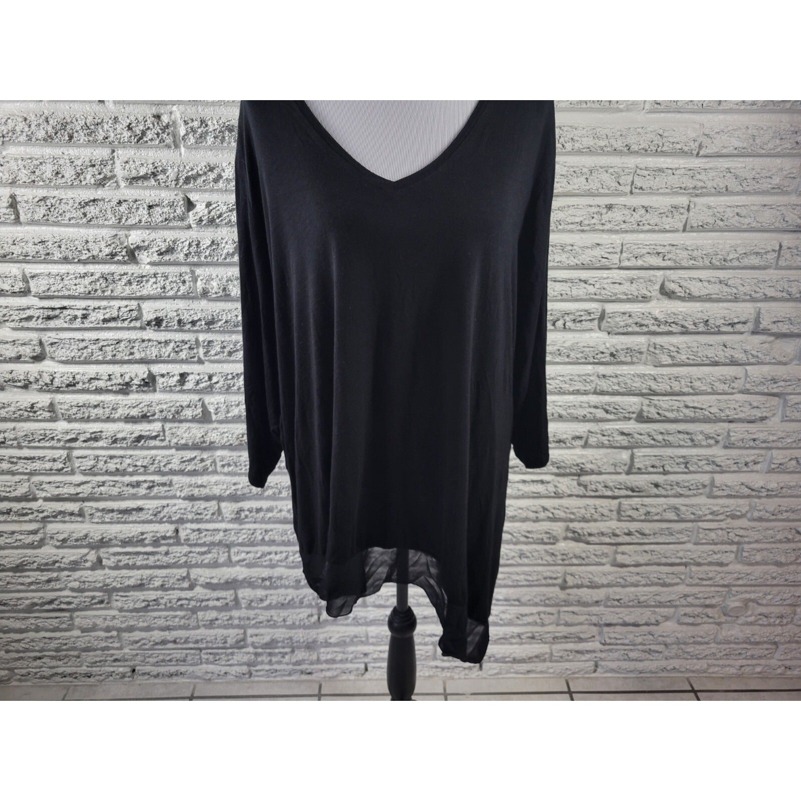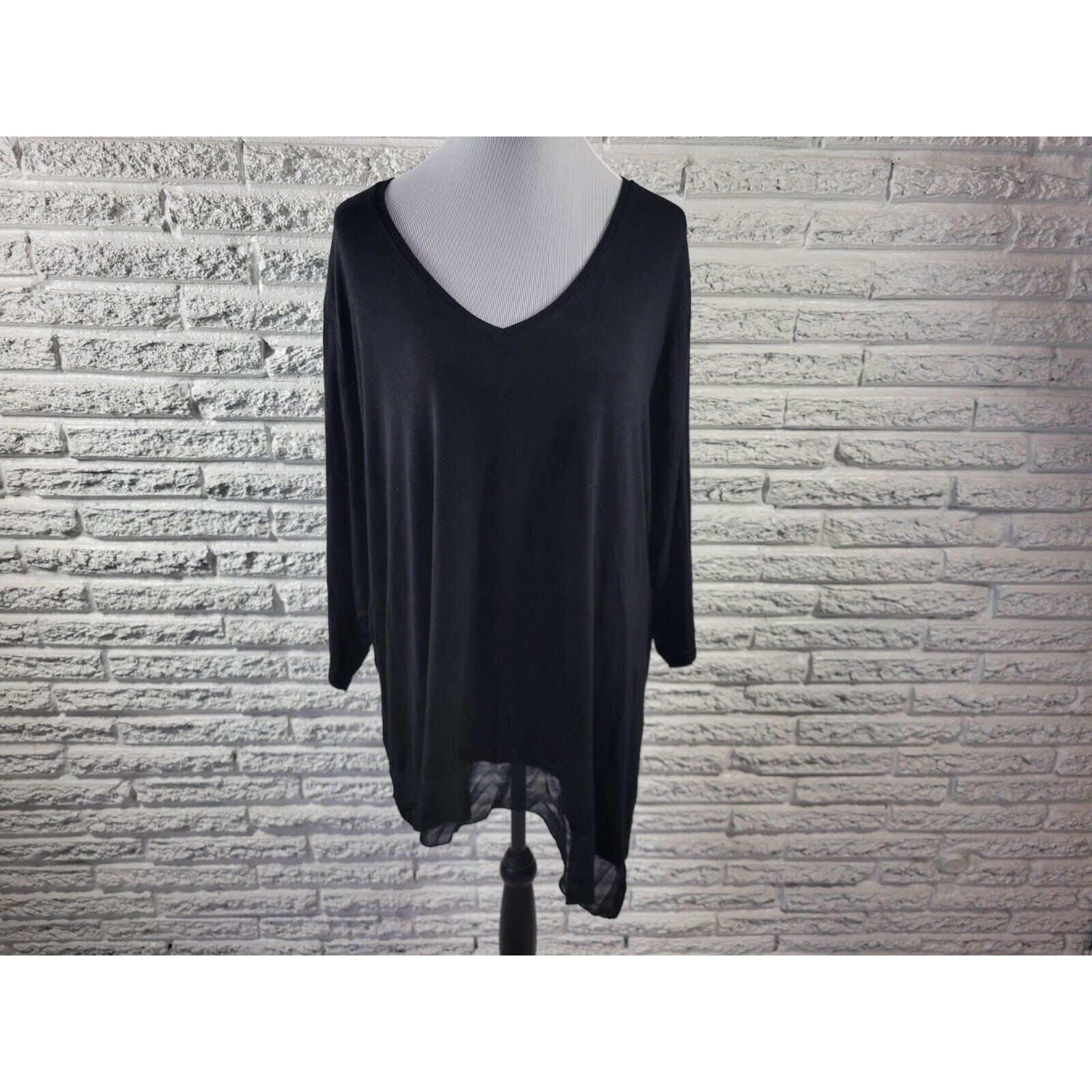 Lane Bryant Womens Top 26 28 Plus Tunic 3/4 Sleeve Asymmetric Black Semi Sheer