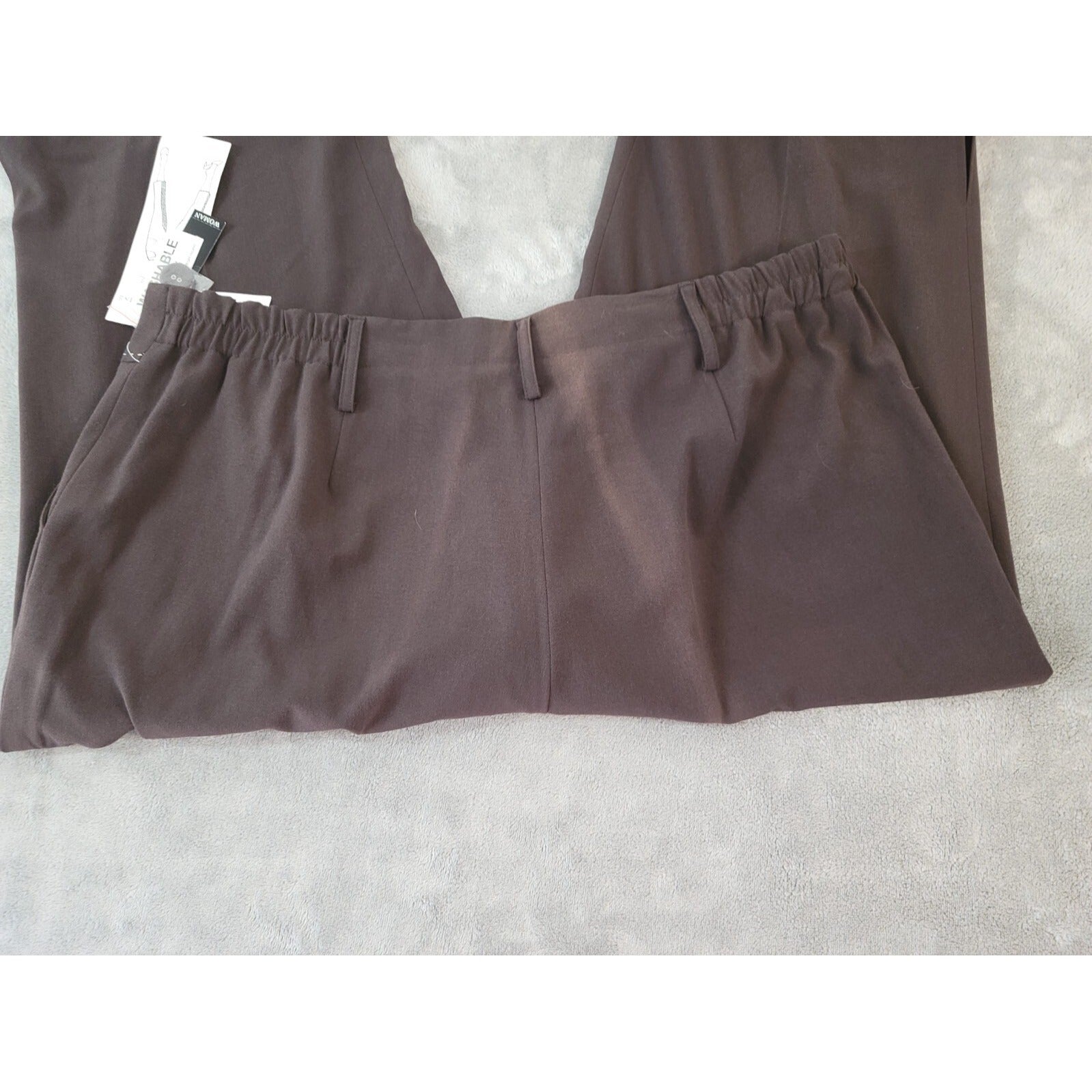 Elevate your wardrobe with these stylish Larry Levine women's pants in a beautiful brown color. These pants are made of a comfortable polyester blend material and feature a high-rise waist size of 38 inches, making them perfect for both casual and business occasions. The pants also have a zip closure and a straight leg style with a 21.5-inch inseam, giving them a cropped look that is perfect for any season.  In addition, the pants have pockets for convenience and stretch for added comfort. They are machine washable, making them easy to care for. These pants are a must-have for any fashion-forward woman and are perfect for adding a touch of sophistication to your wardrobe.