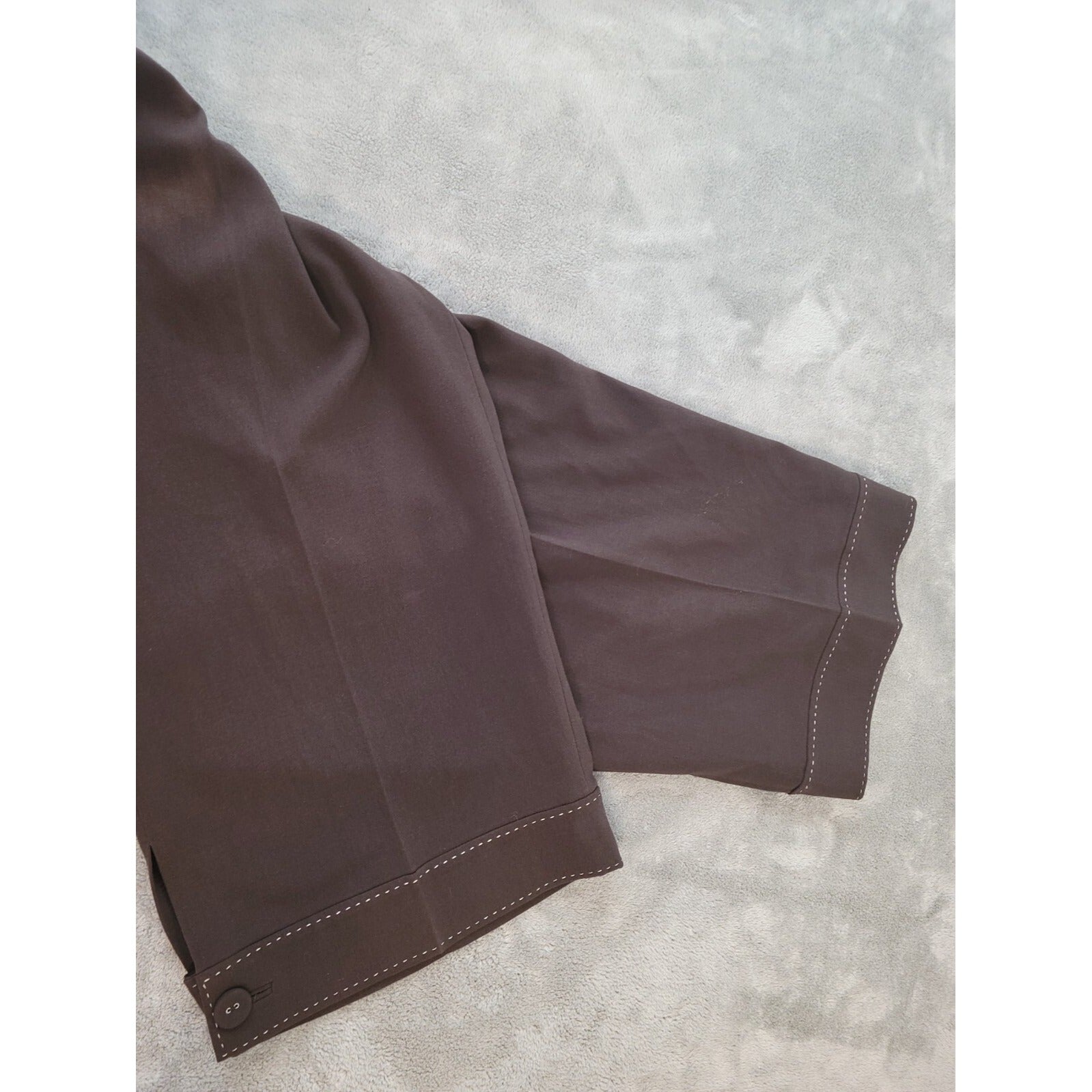 Larry Levine Women Pants 18W Plus Crop Brown Button Hem Poly Blend Pockets New