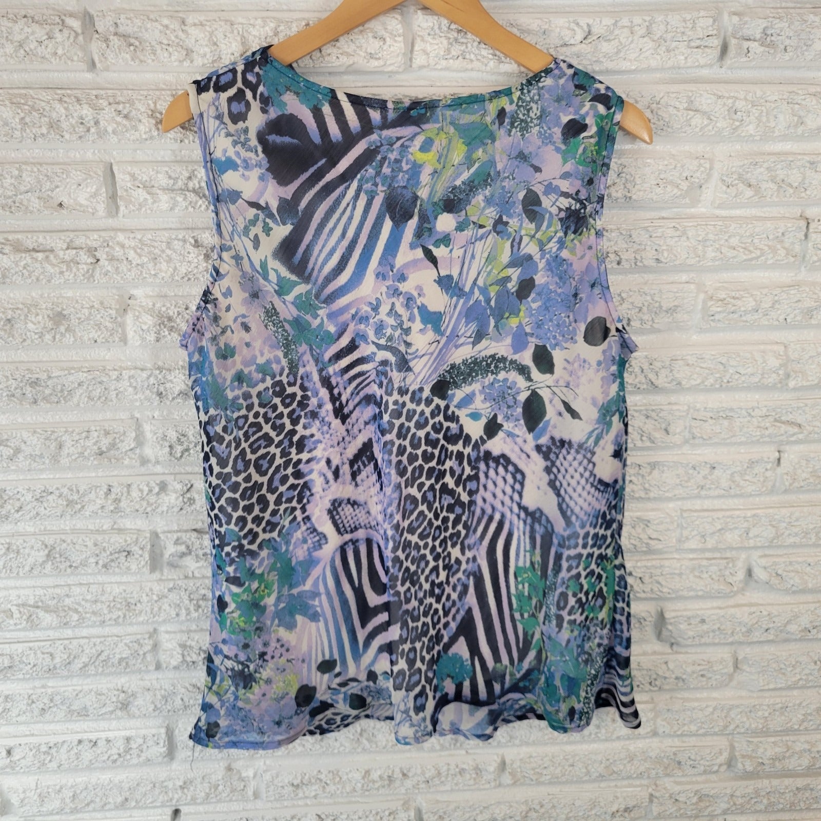 Laura Scott Womens Top 1X Plus Sleeveless Drape Neck Blue Lavender Animal Print