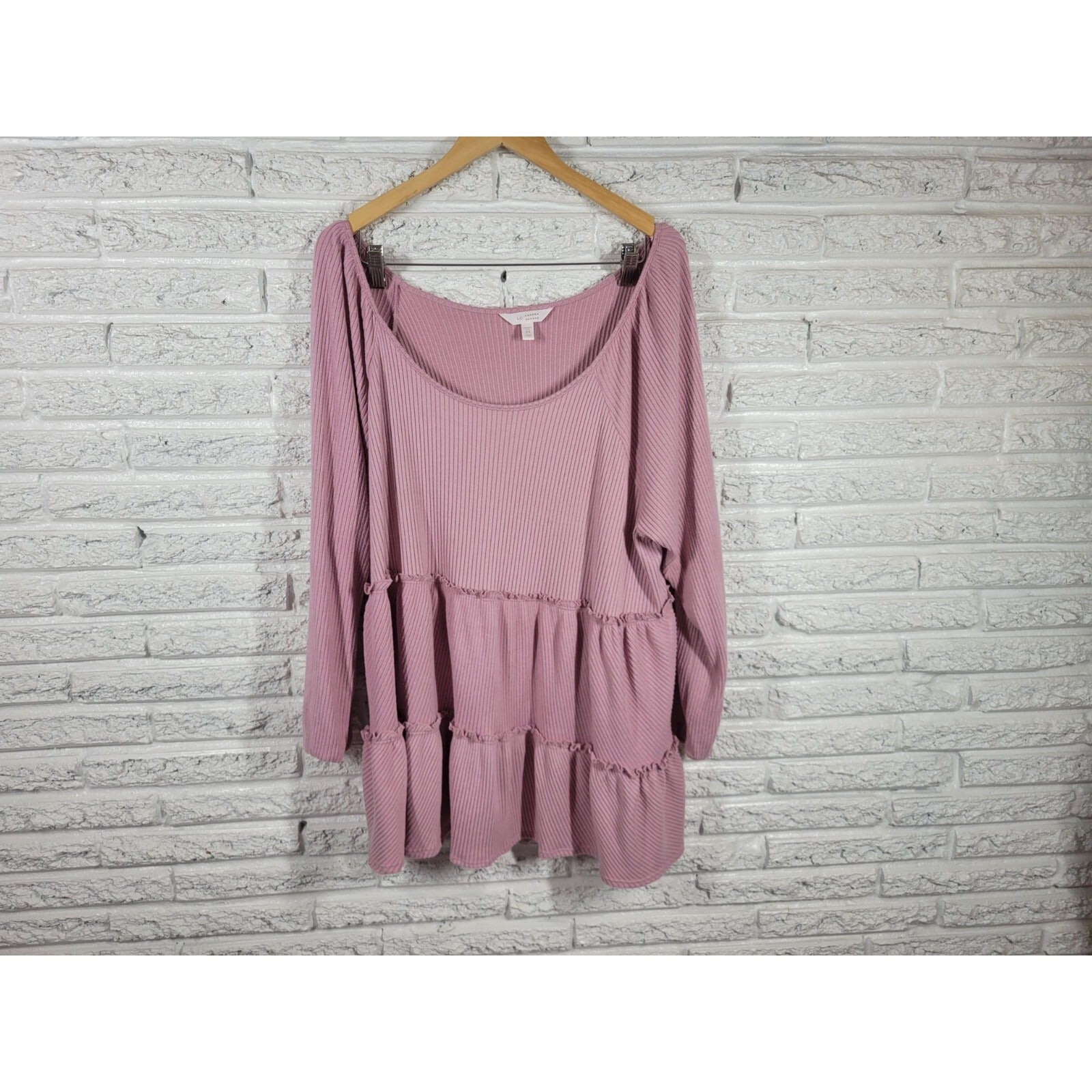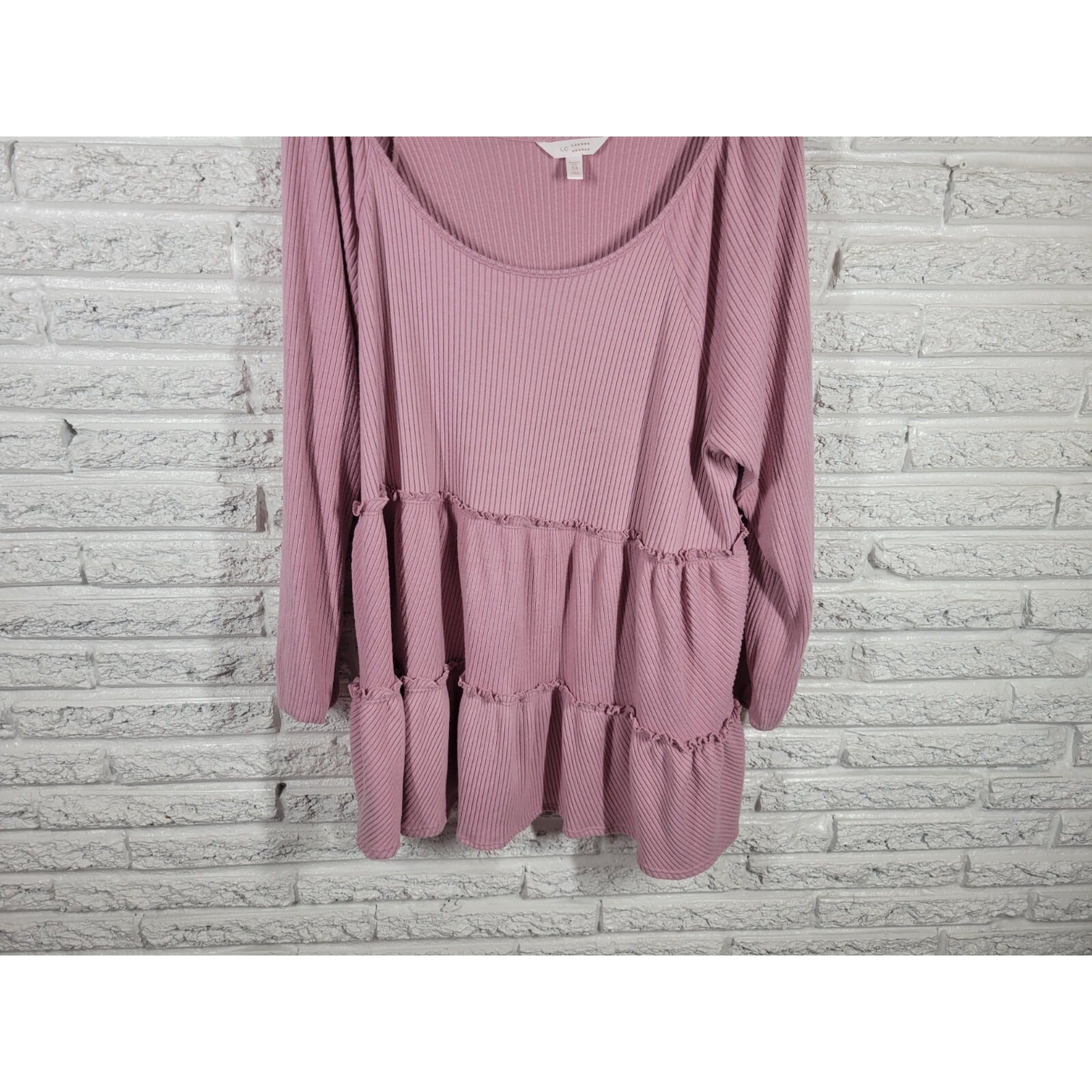 Lauren Conrad Womens Sweater 3X Plus Ribbed Pink Soft Poly Blend Ruffle