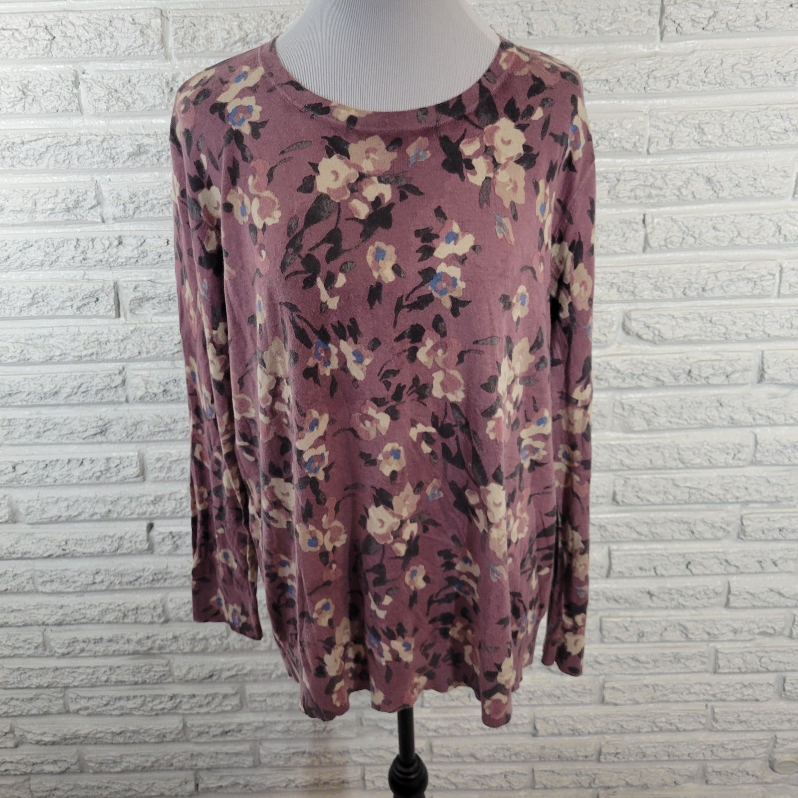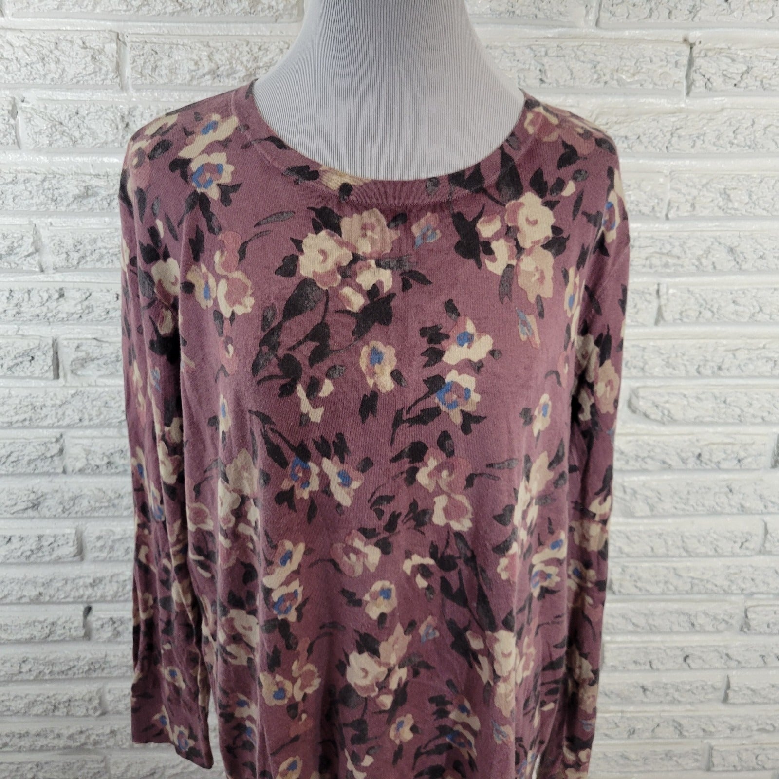 Lauren Ralph Lauren Womens Sweater XXL Plus Lavender Floral Casual Cotton Blend