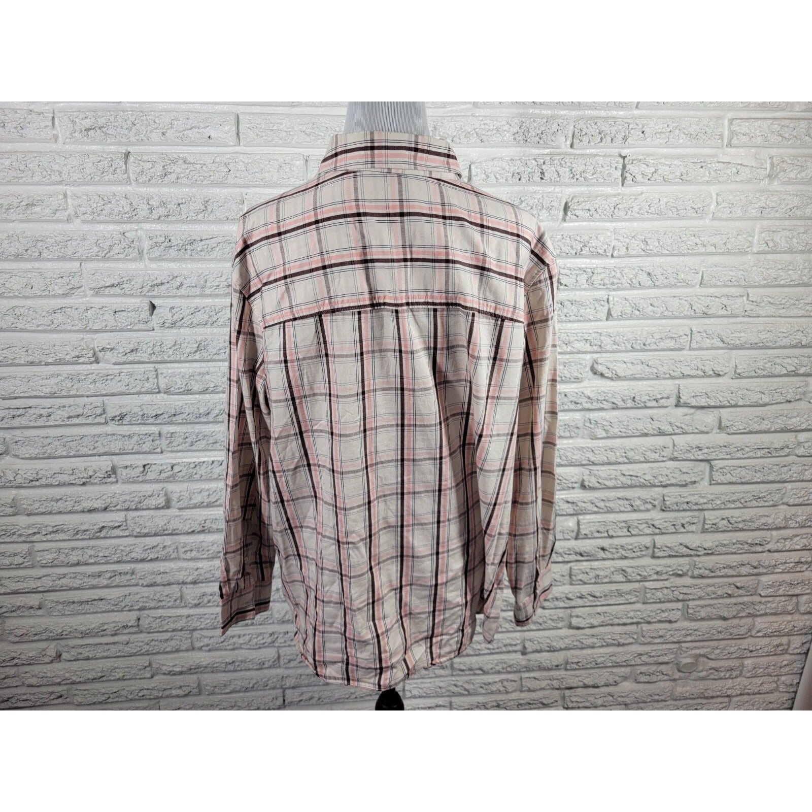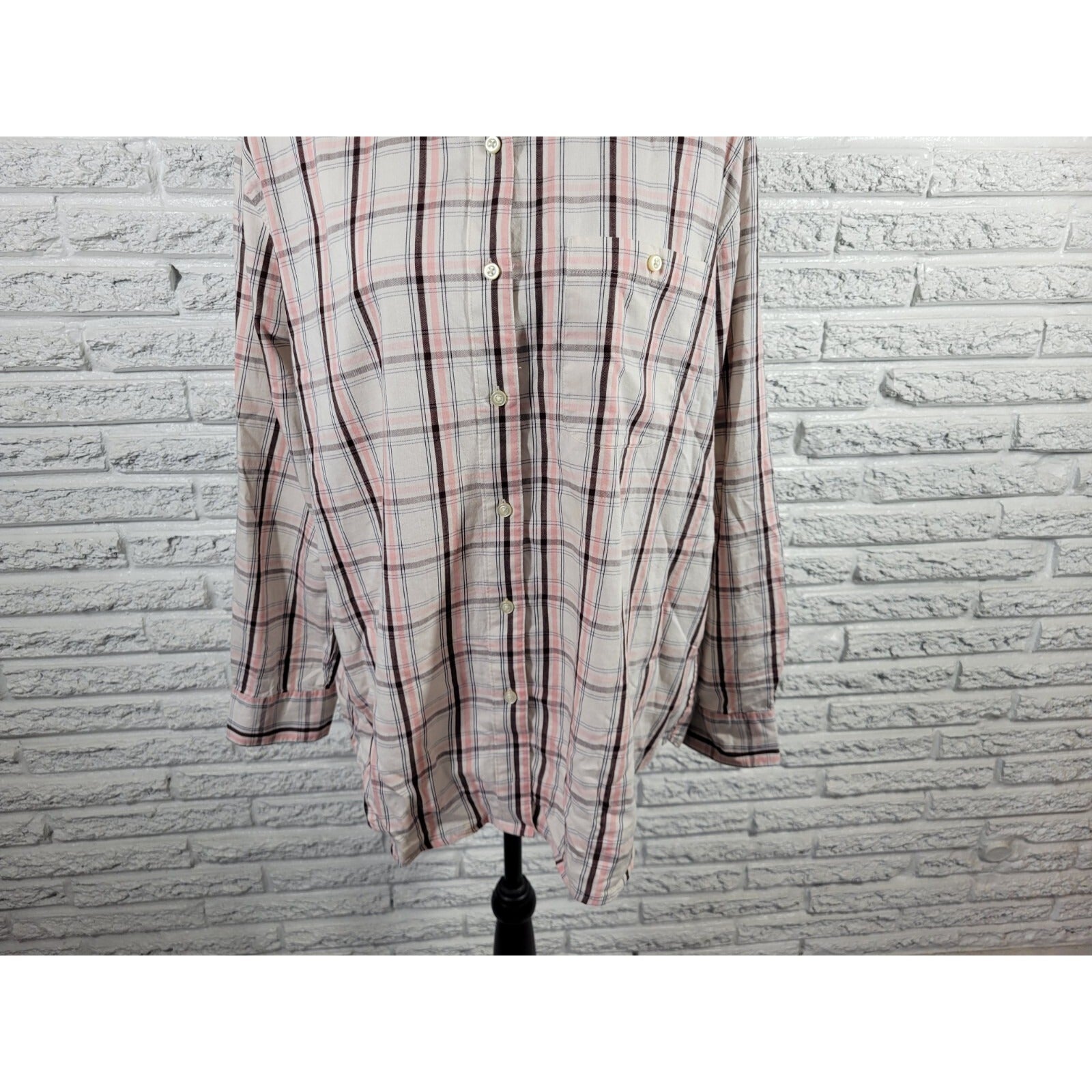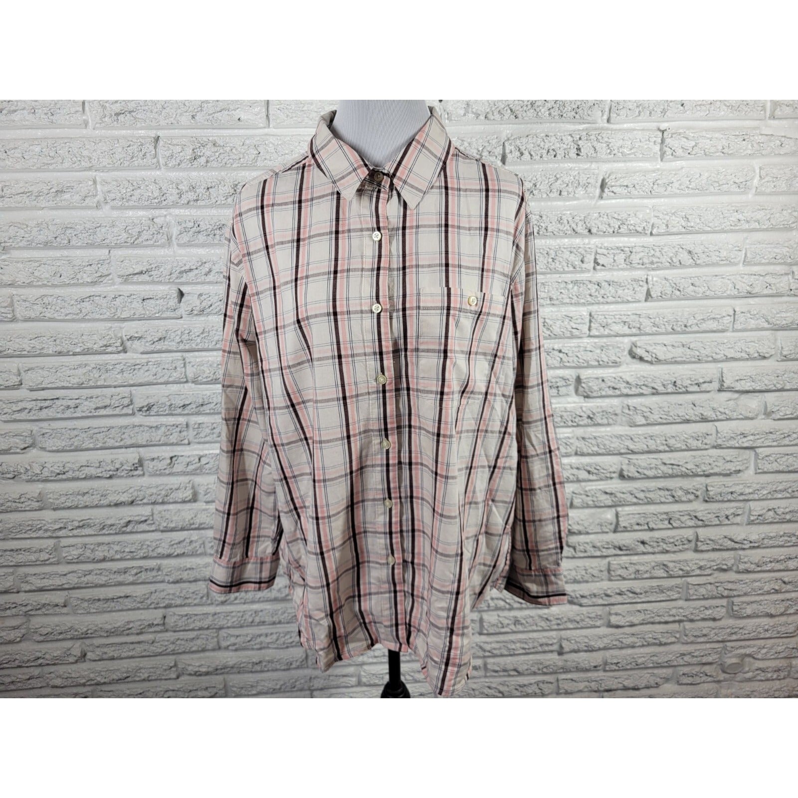 Lee Women Top 1X Plus Sleeve Brown Pink Plaid Cotton Pocket Collar Button