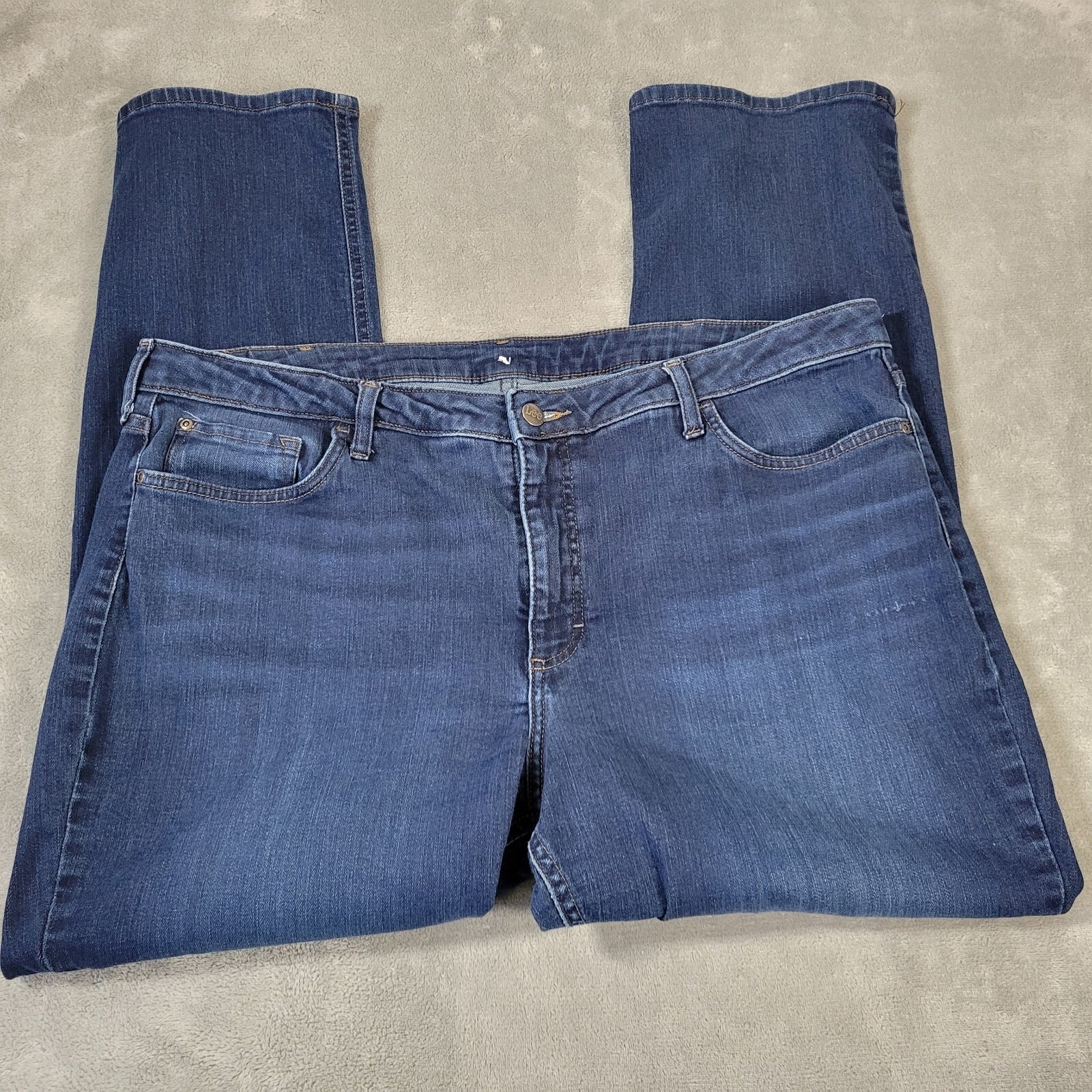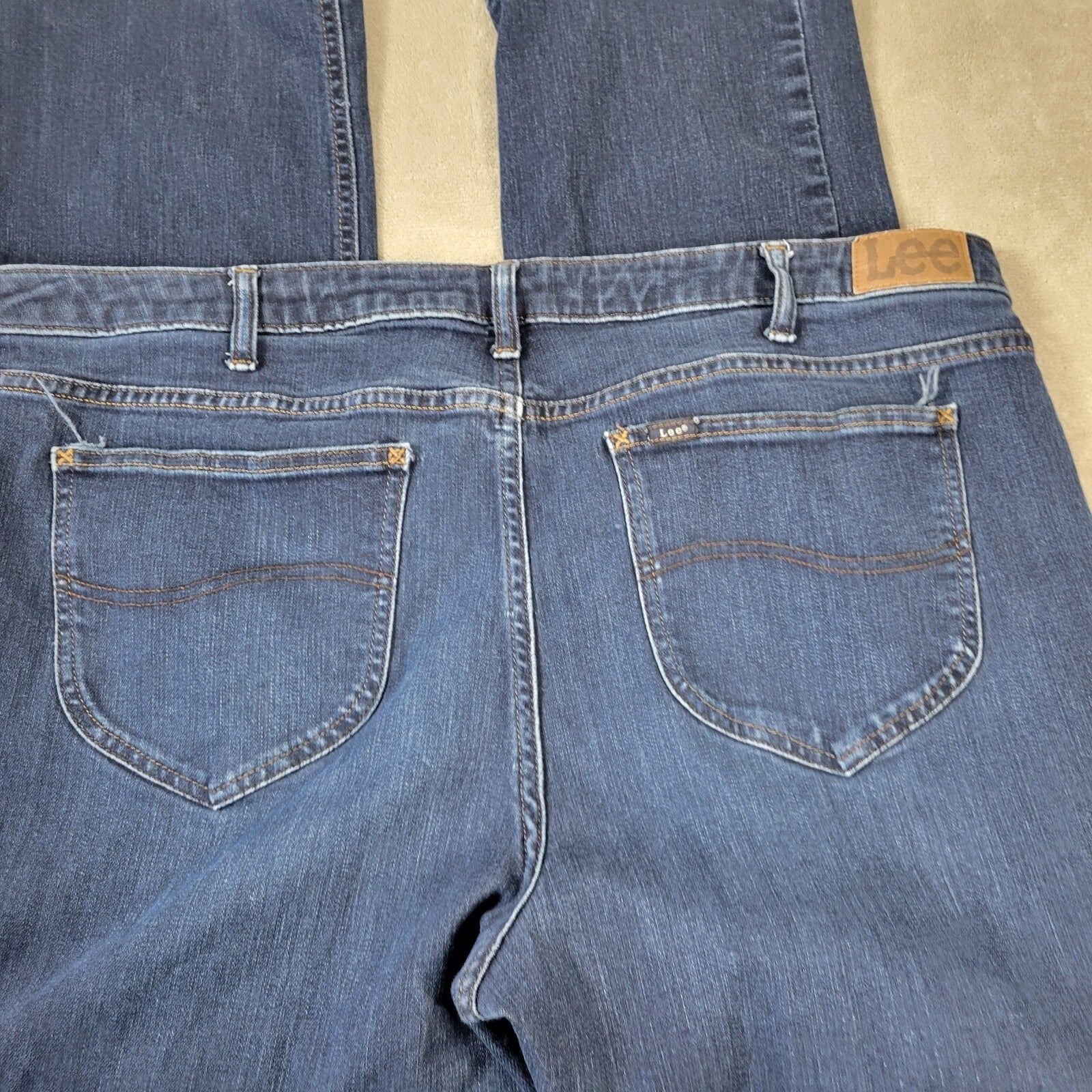 Lee Womens Jeans 22 Plus Straight Leg Dark Blue Denim Wash Zip Fly Stretch Comfy