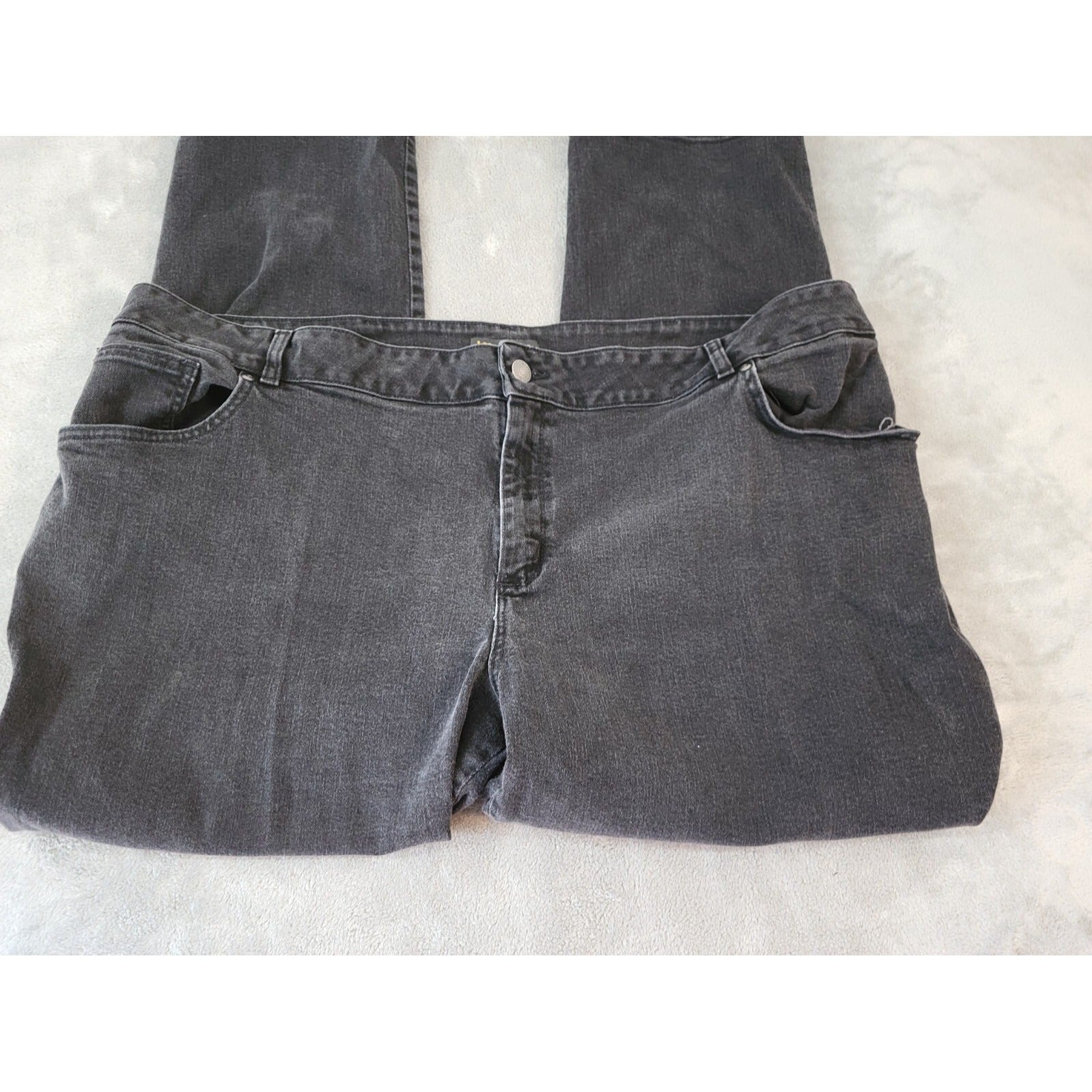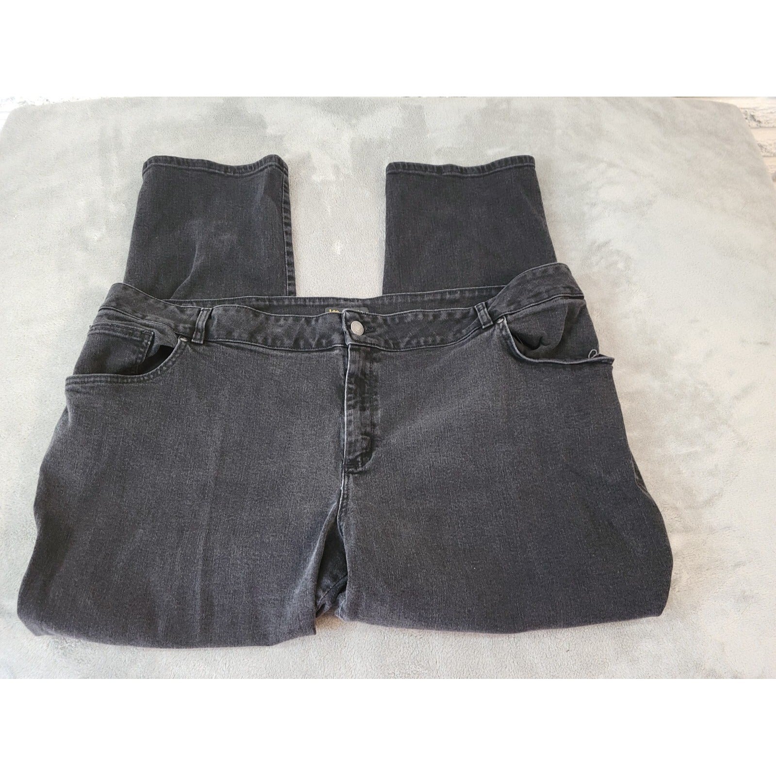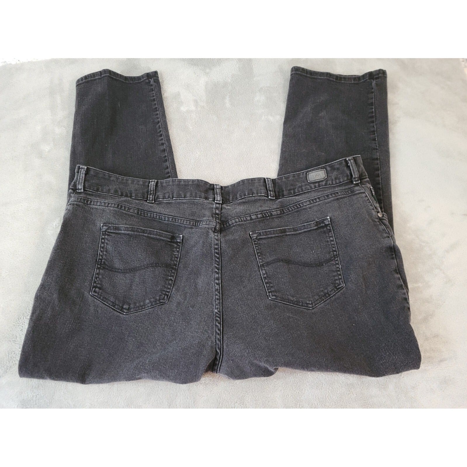 Lee Womens Jeans 26W Plus M Relaxed Fit Straight Leg Crop Black Denim Zip Fly