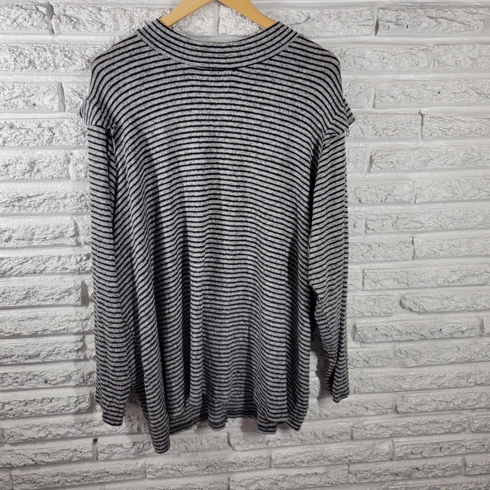 Lee Womens Top 3X Plus Tunic Long Sleeve Gray Stripe Lightweight Casual Knit
