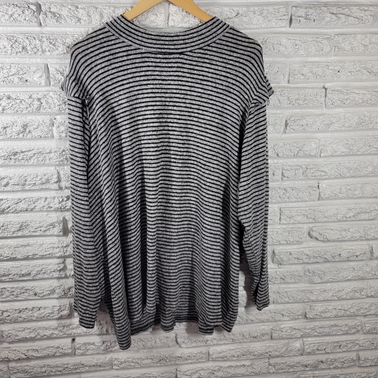 Lee Womens Top 3X Plus Tunic Long Sleeve Knit Gray Stripe Lightweight Casual