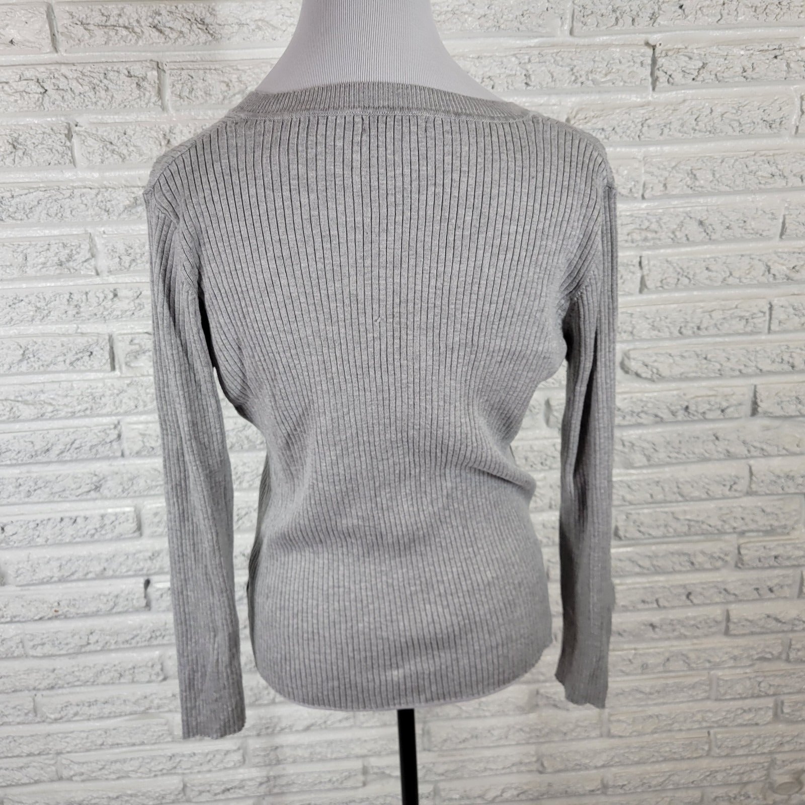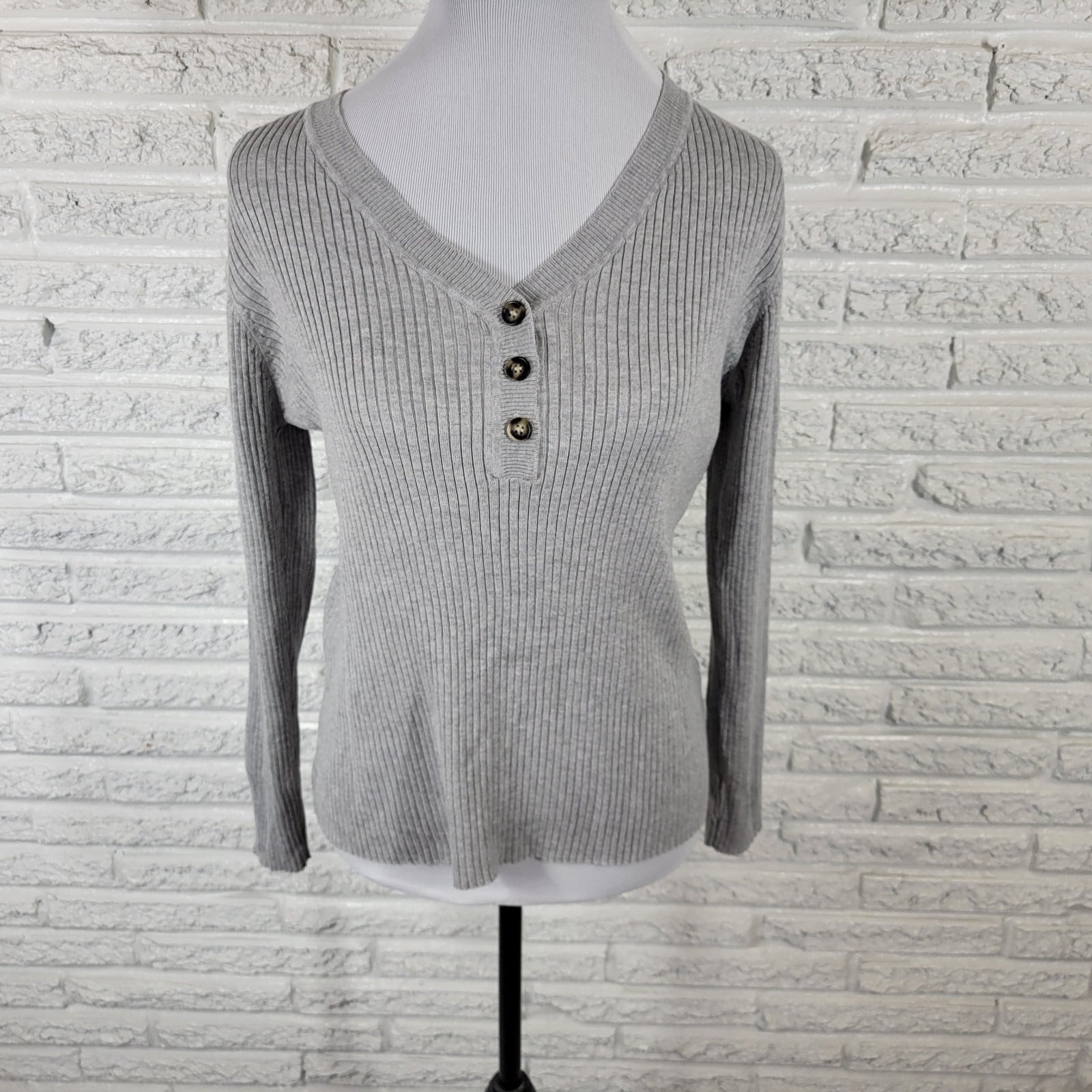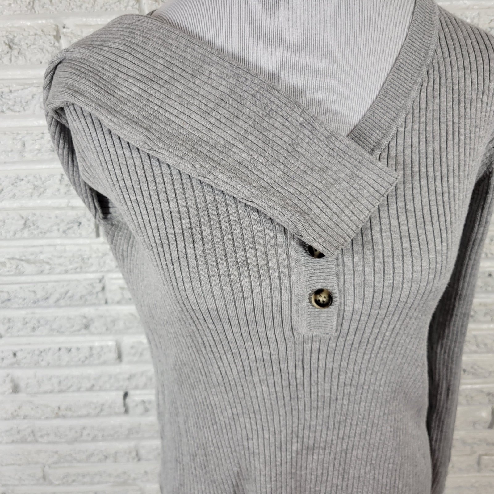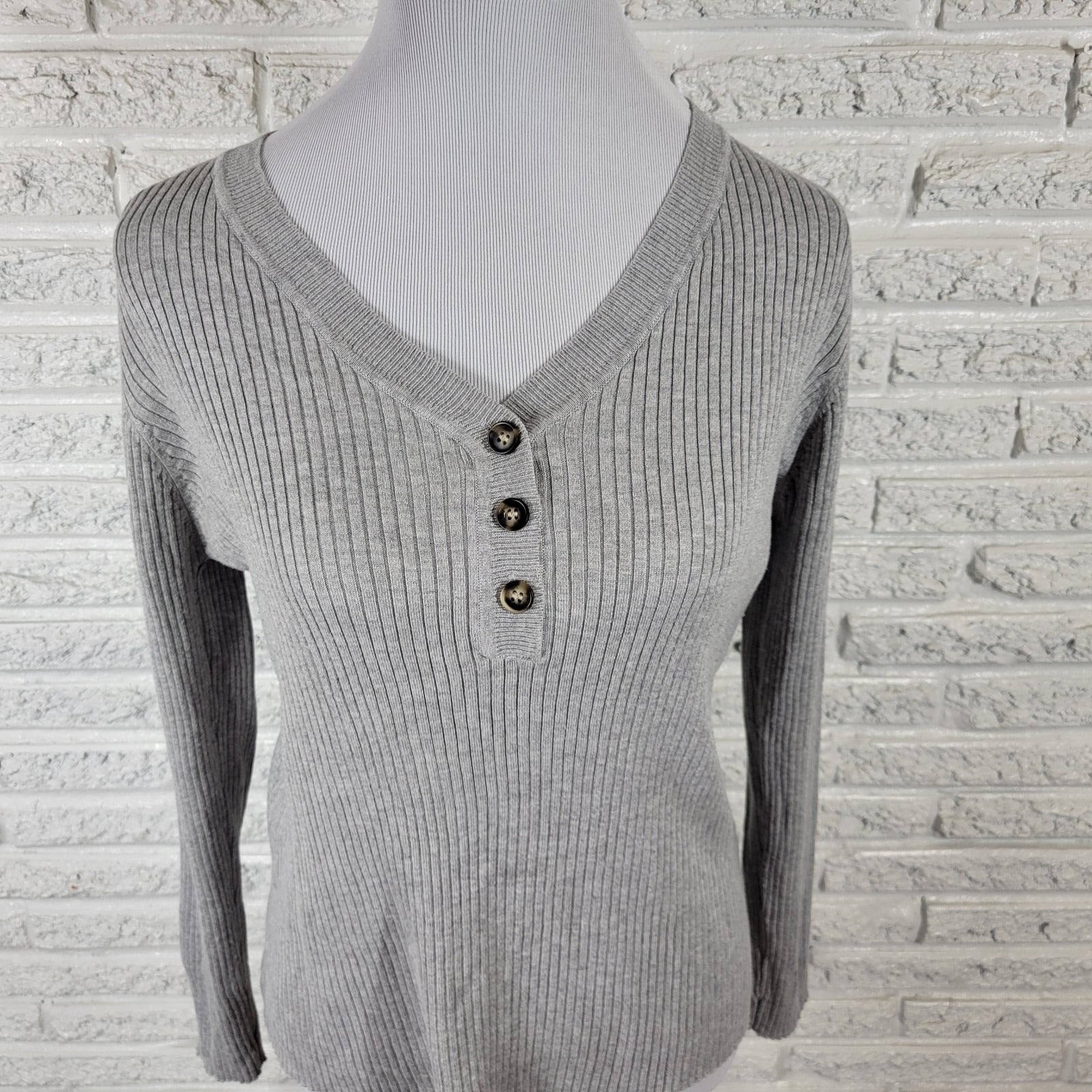 Lety Me Women Sweater Extra Large Quarter Button Gray Ribbed Knit Soft Casual