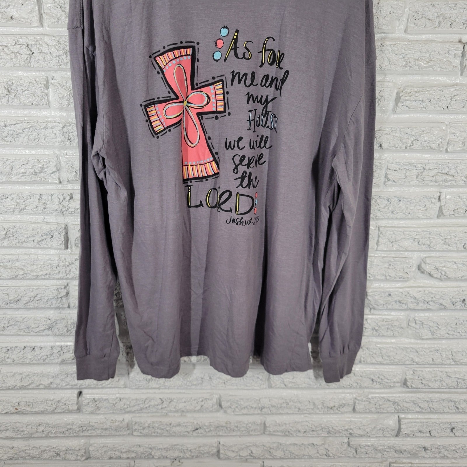LIF Apparel Womens Top XL Tee Long Sleeve Joshua 24:15 Christian Serve the Lord