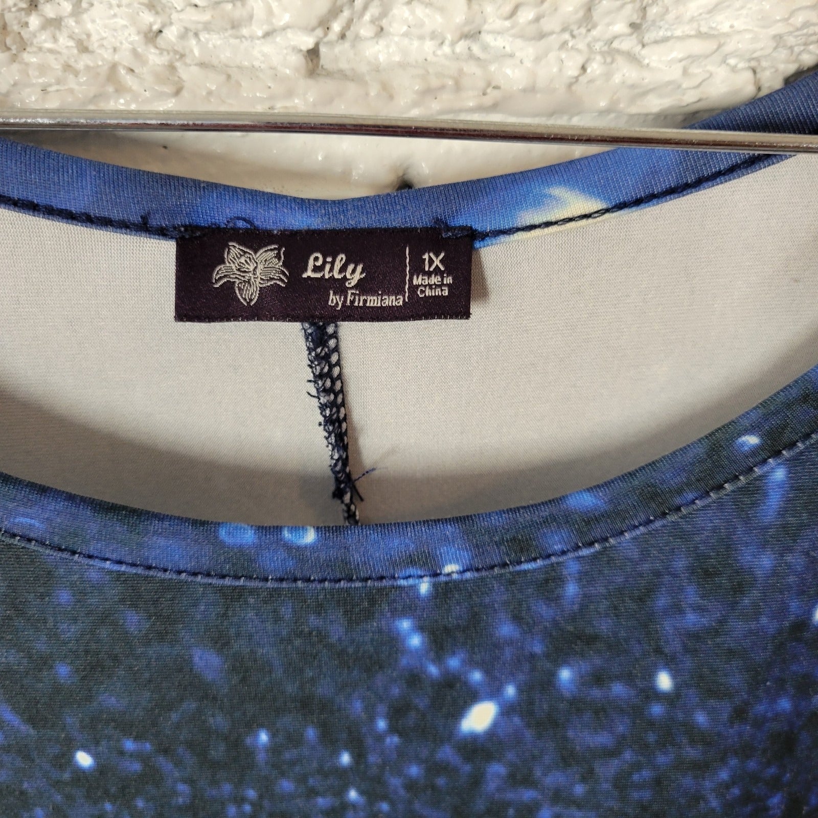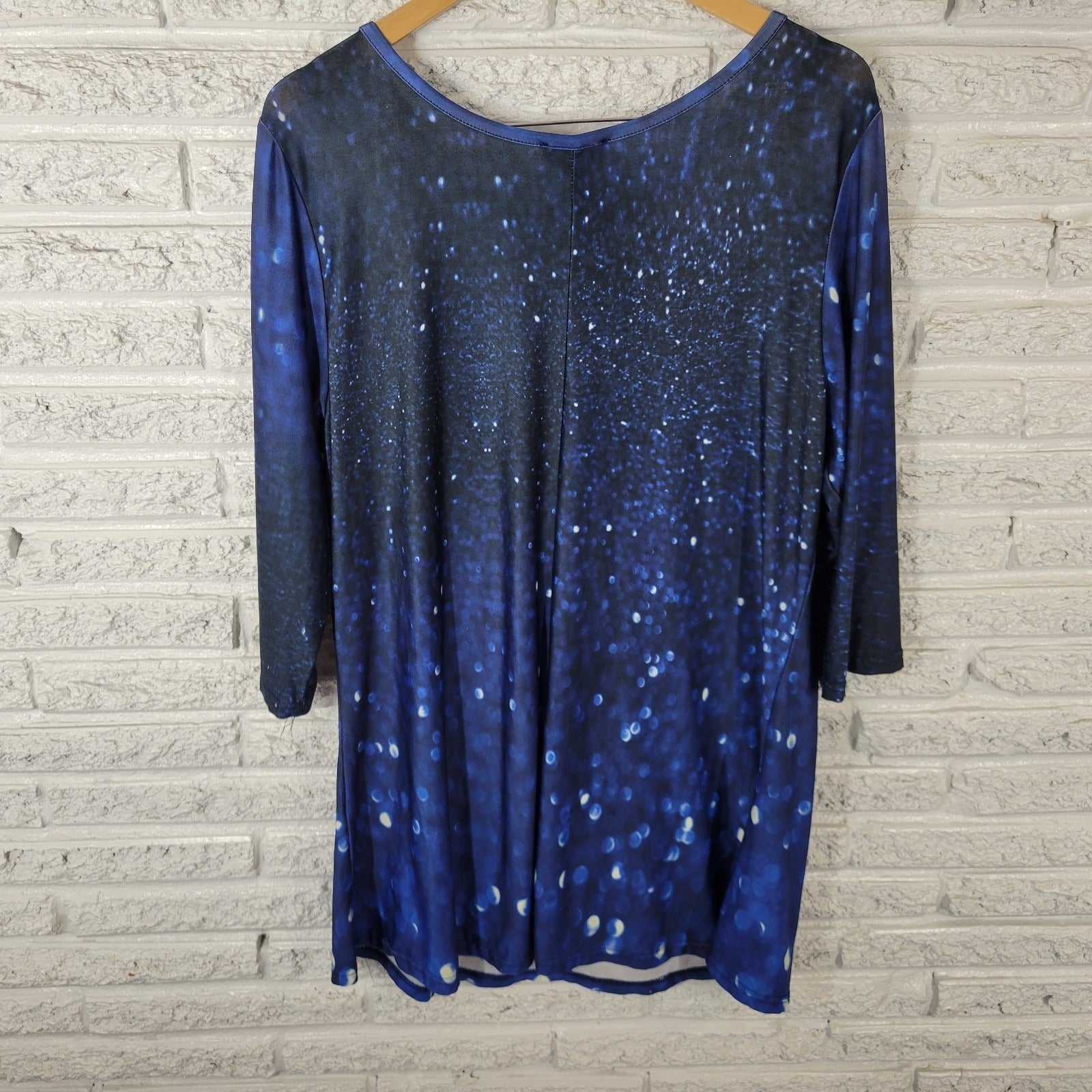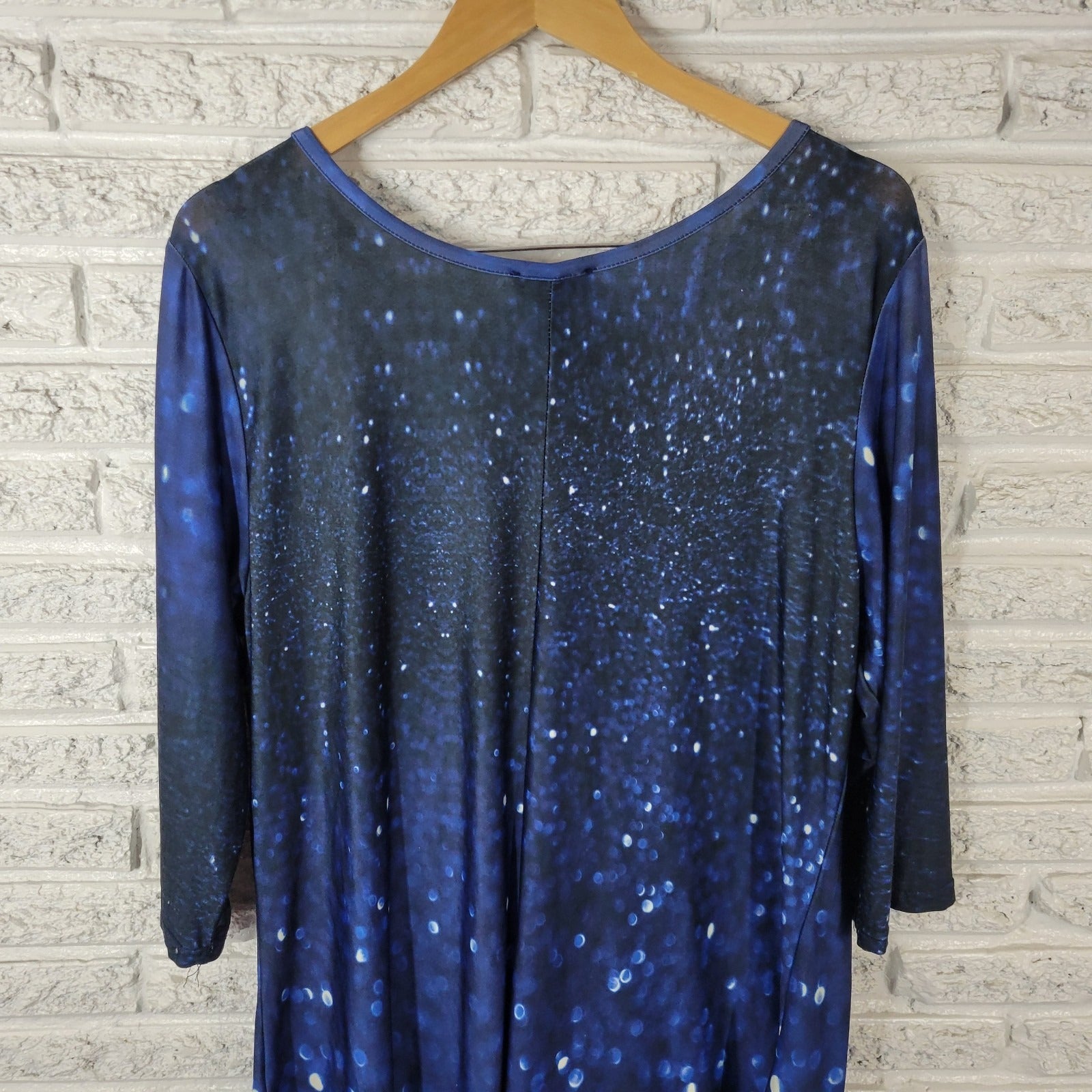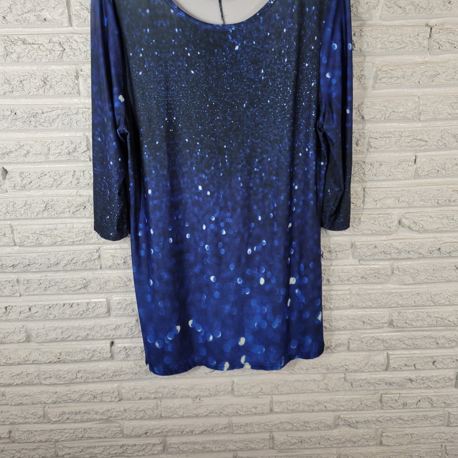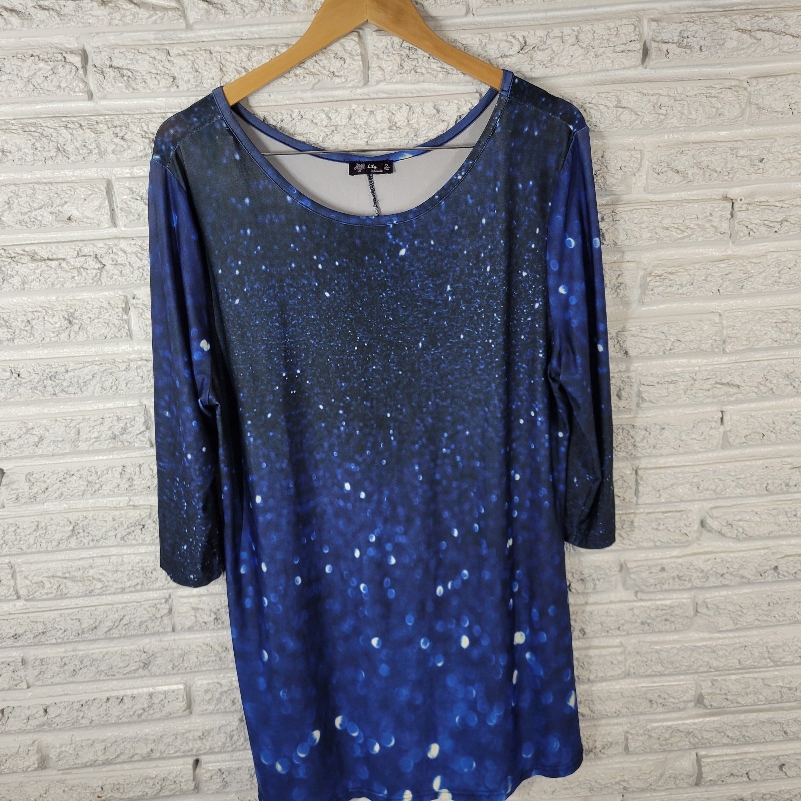 Lily Firmiana Womens Dress 1X Plus Mini 3/4 Sleeve Blue Outer Space Poly Blend