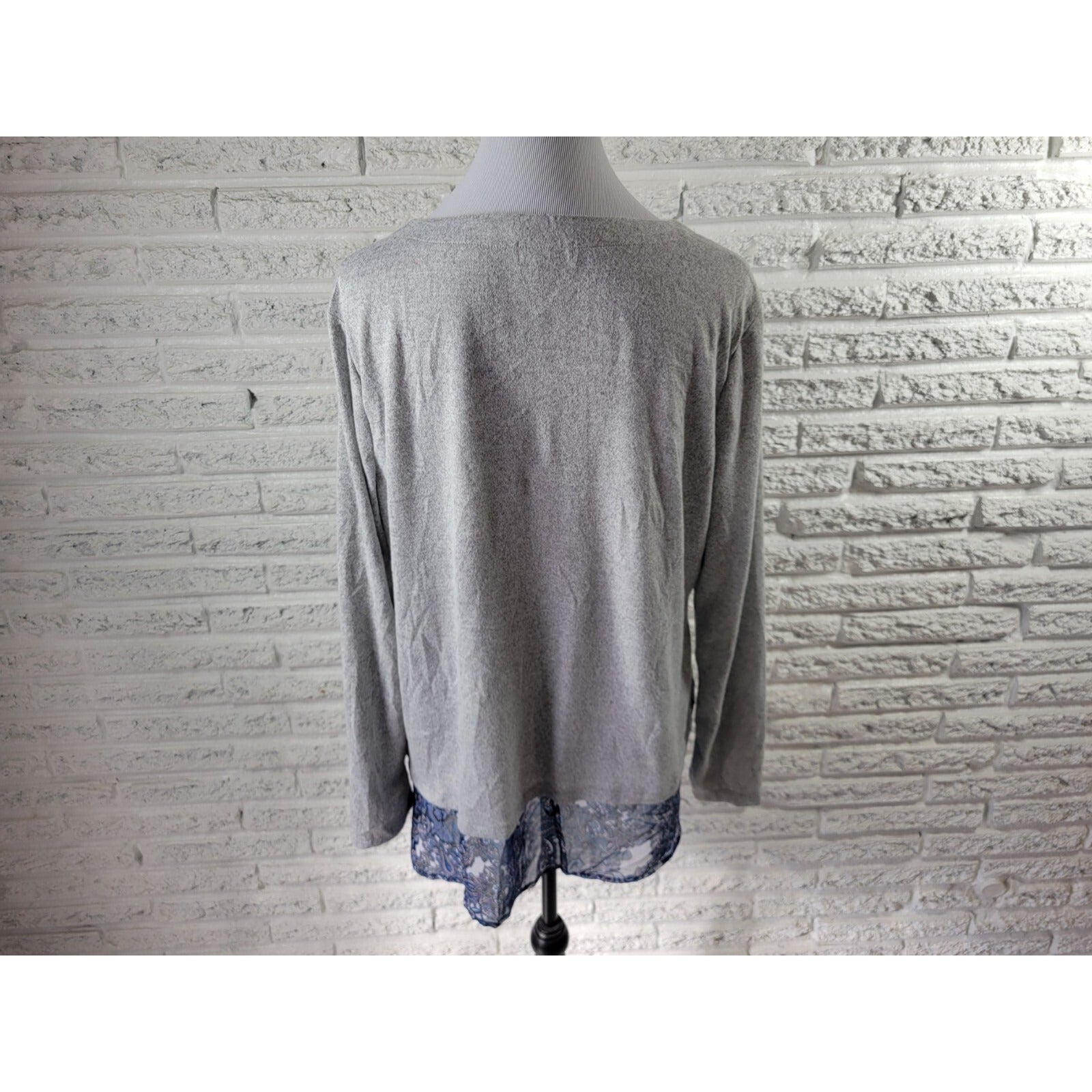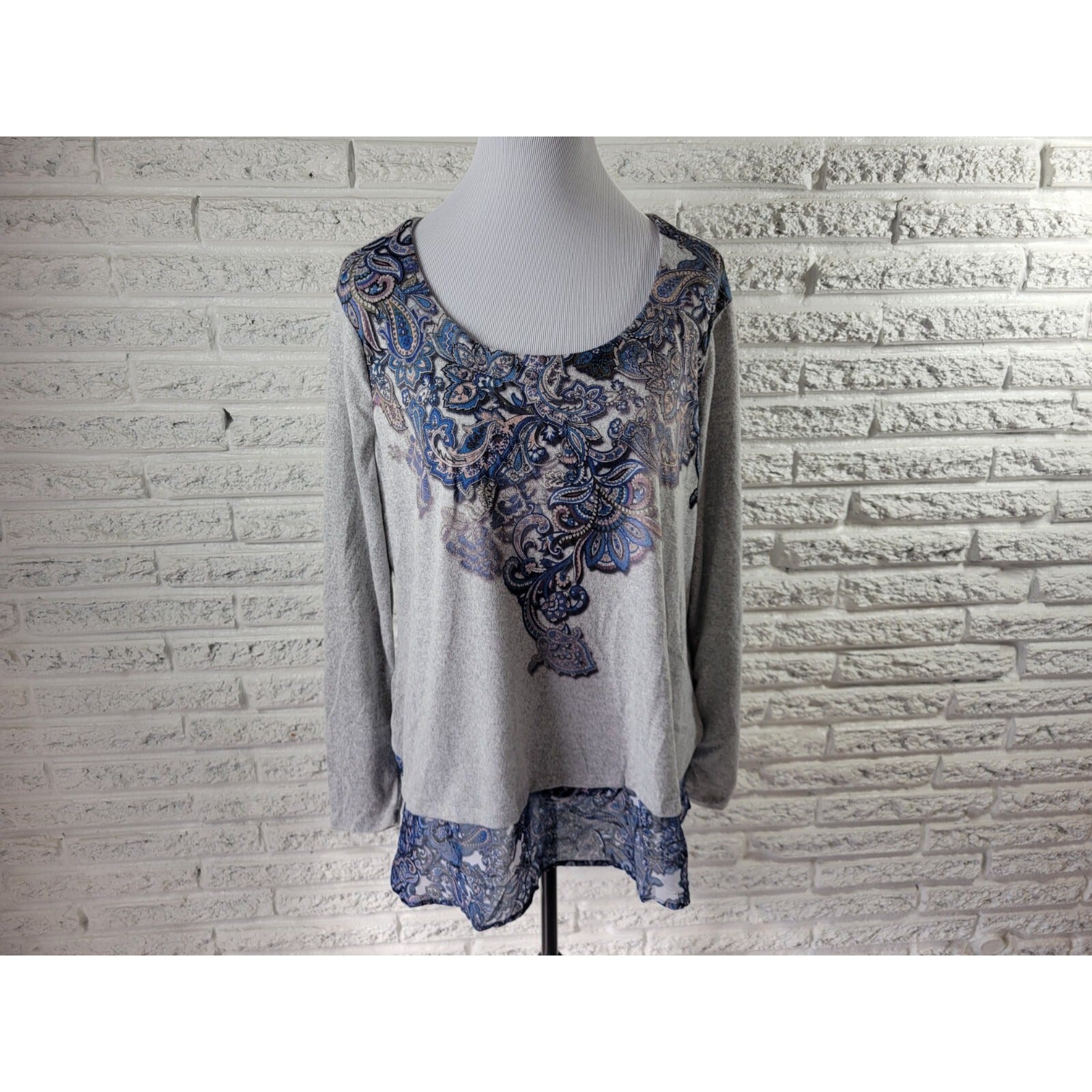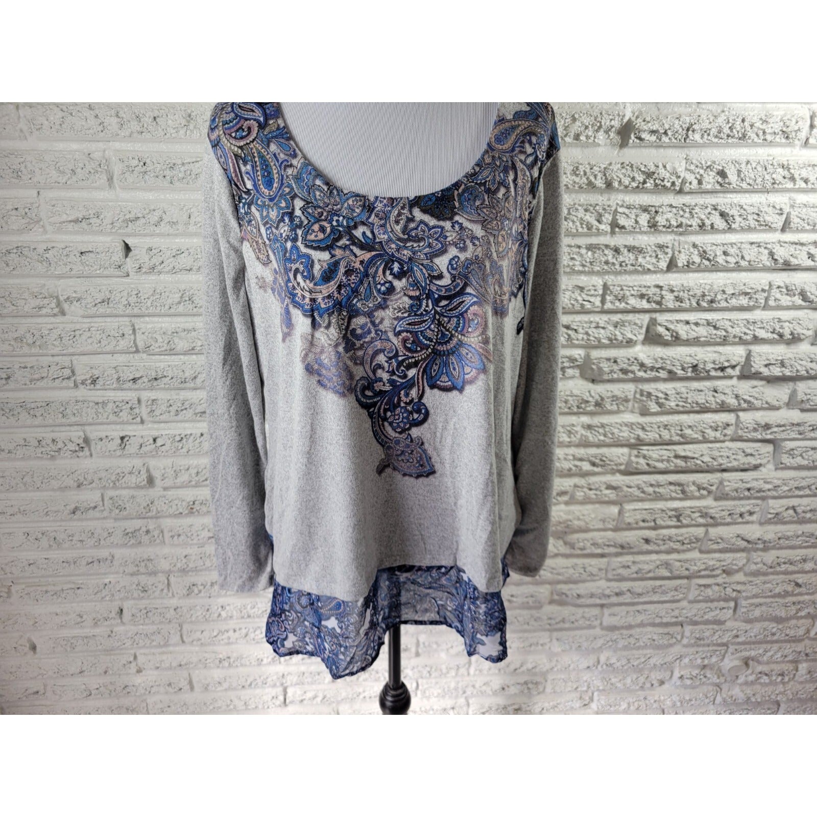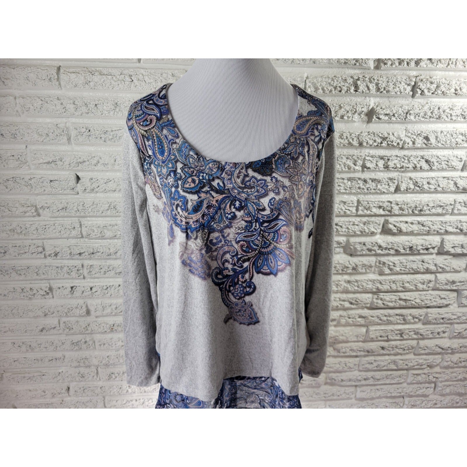 Live Let Live Women Top 1X Plus Tunic Knit Long Sleeve Poly Blend Blue Paisley