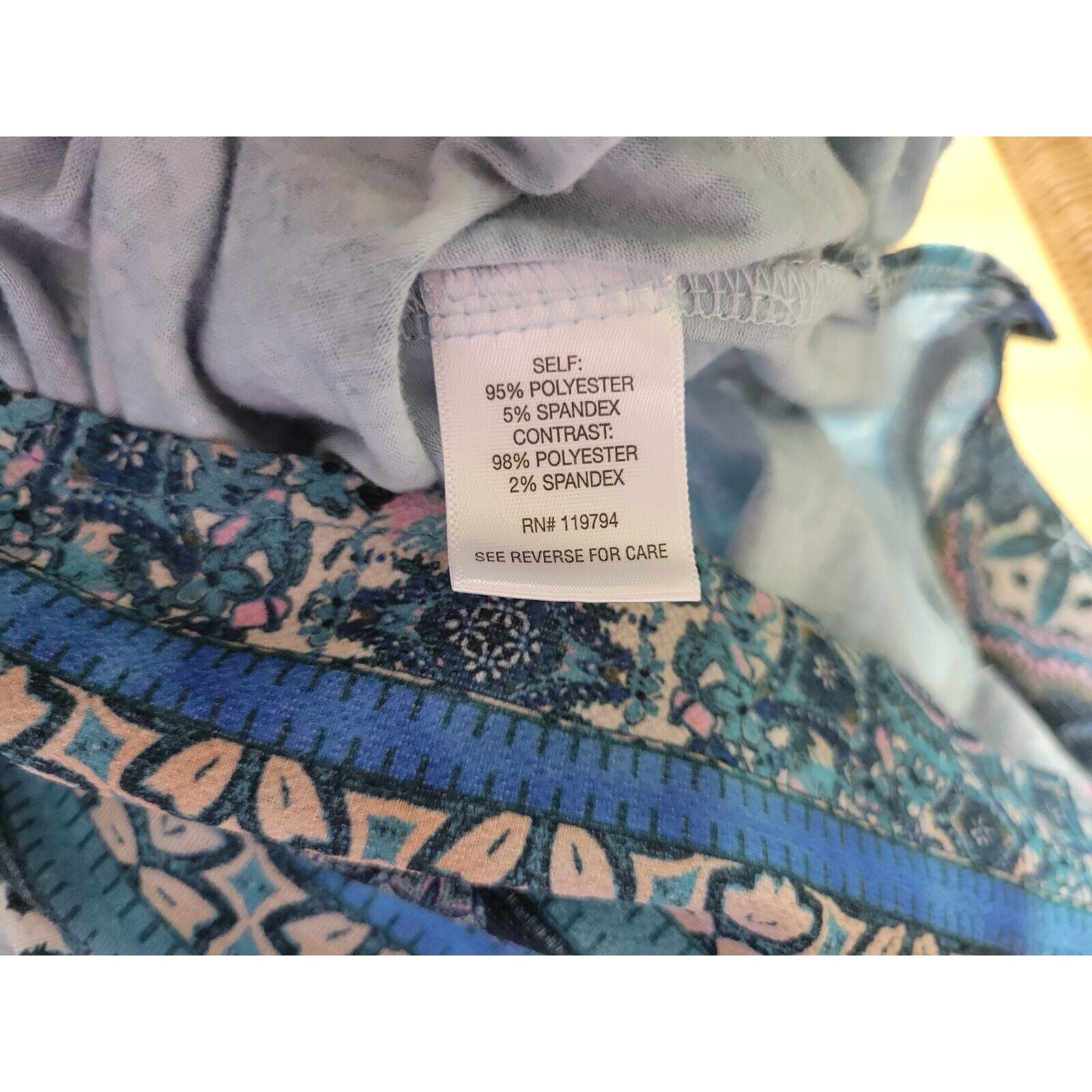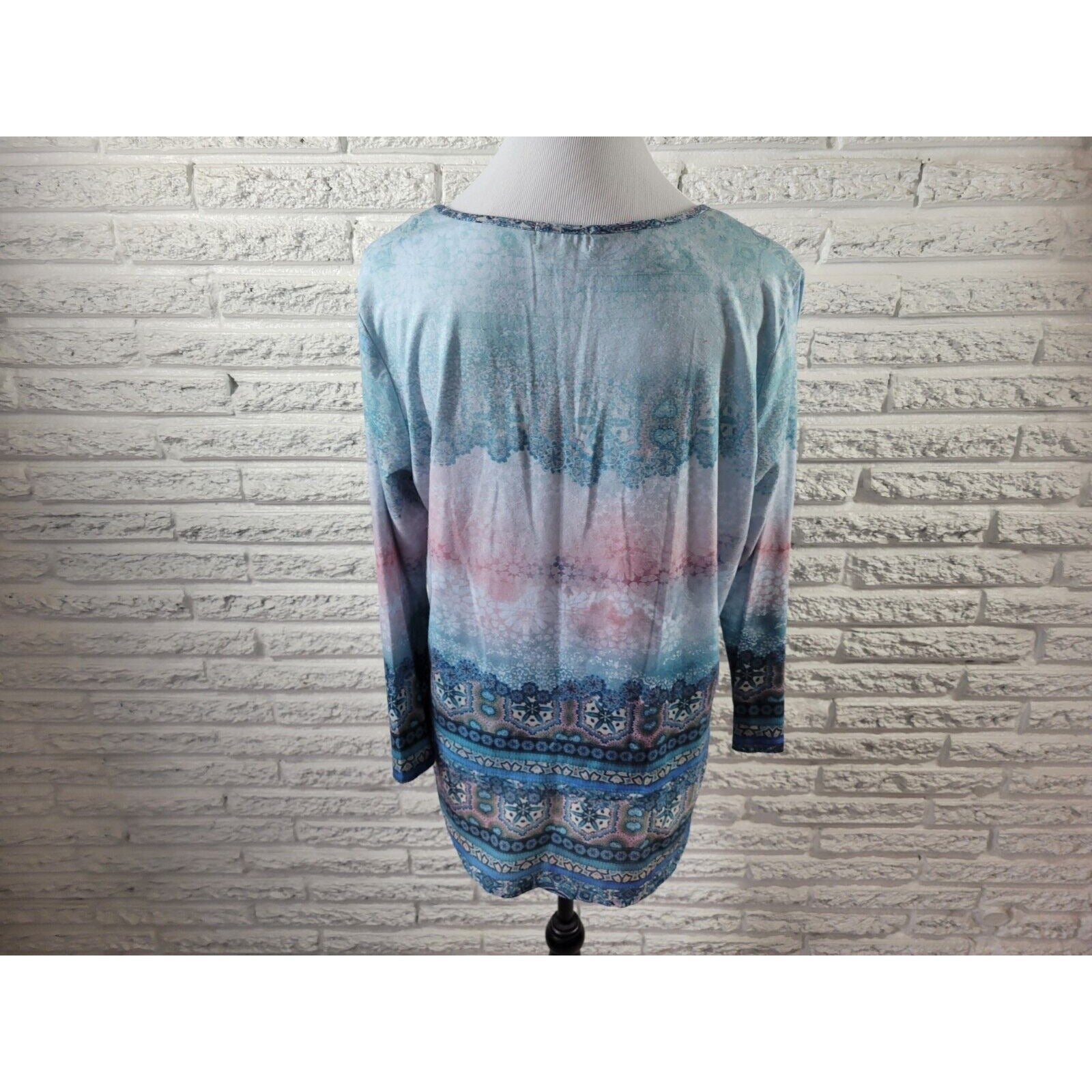 Live Let Live Women Top Extra Large Long Sleeve Blue Geometric Keyhole Casual