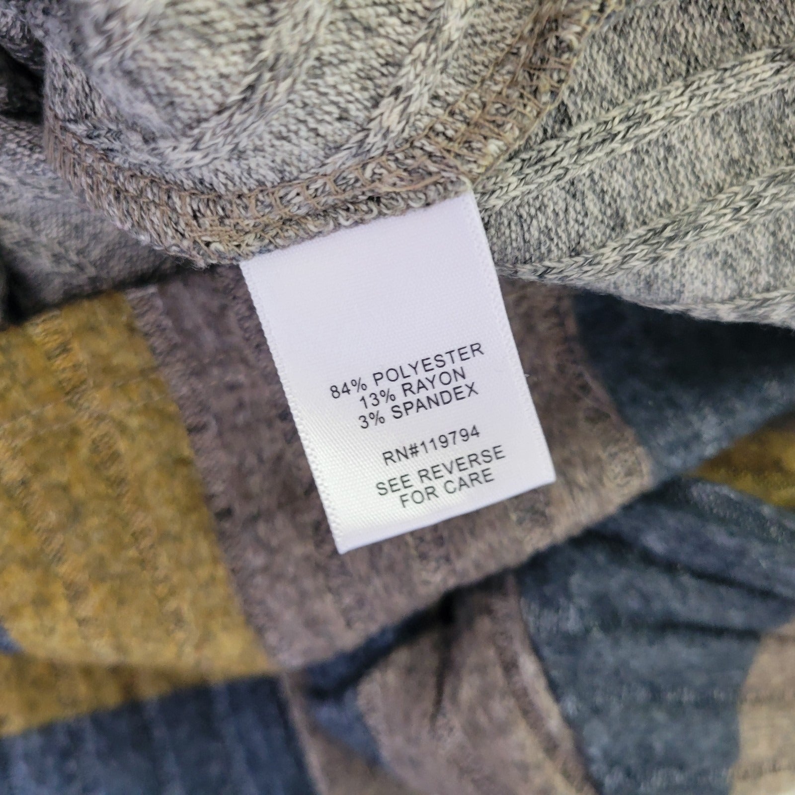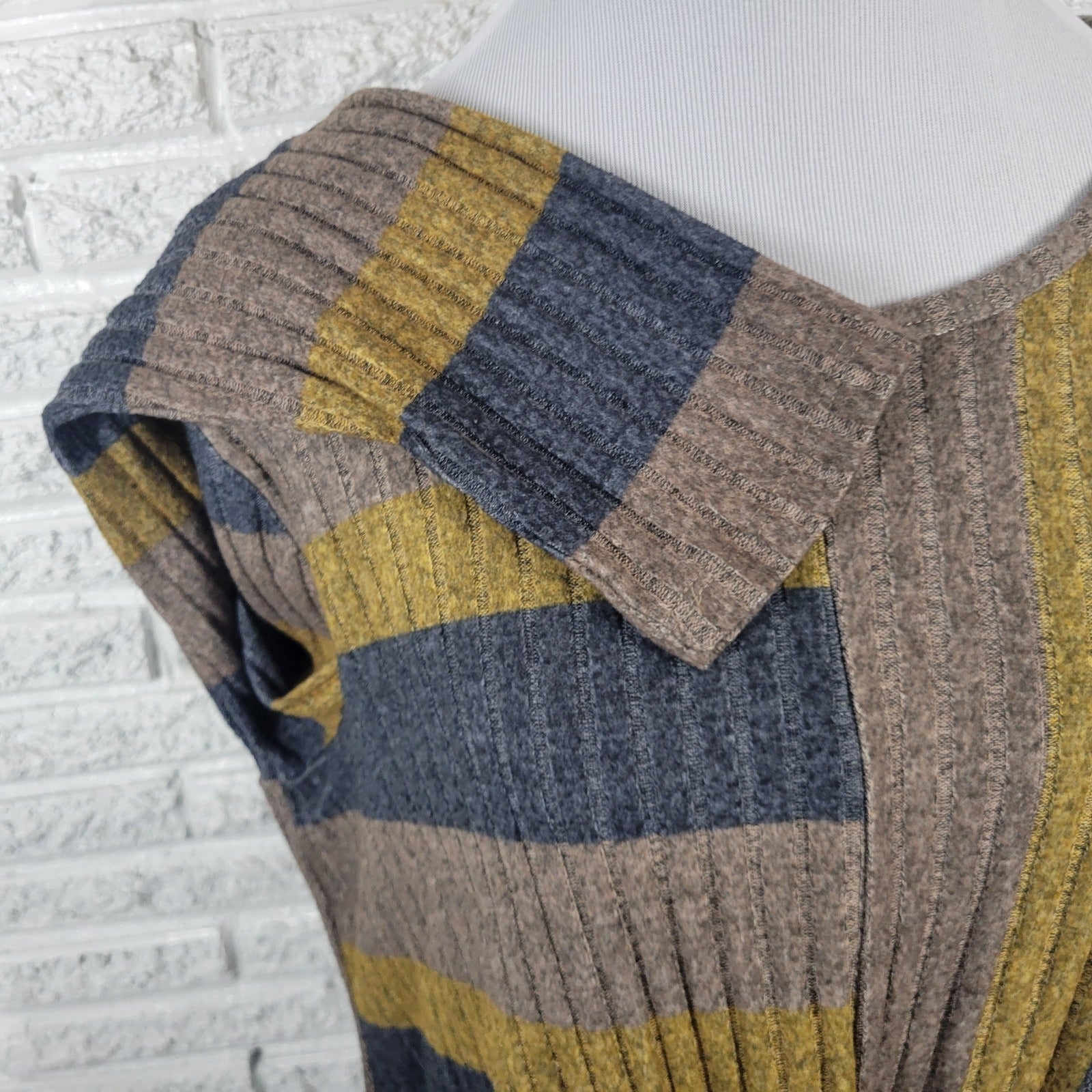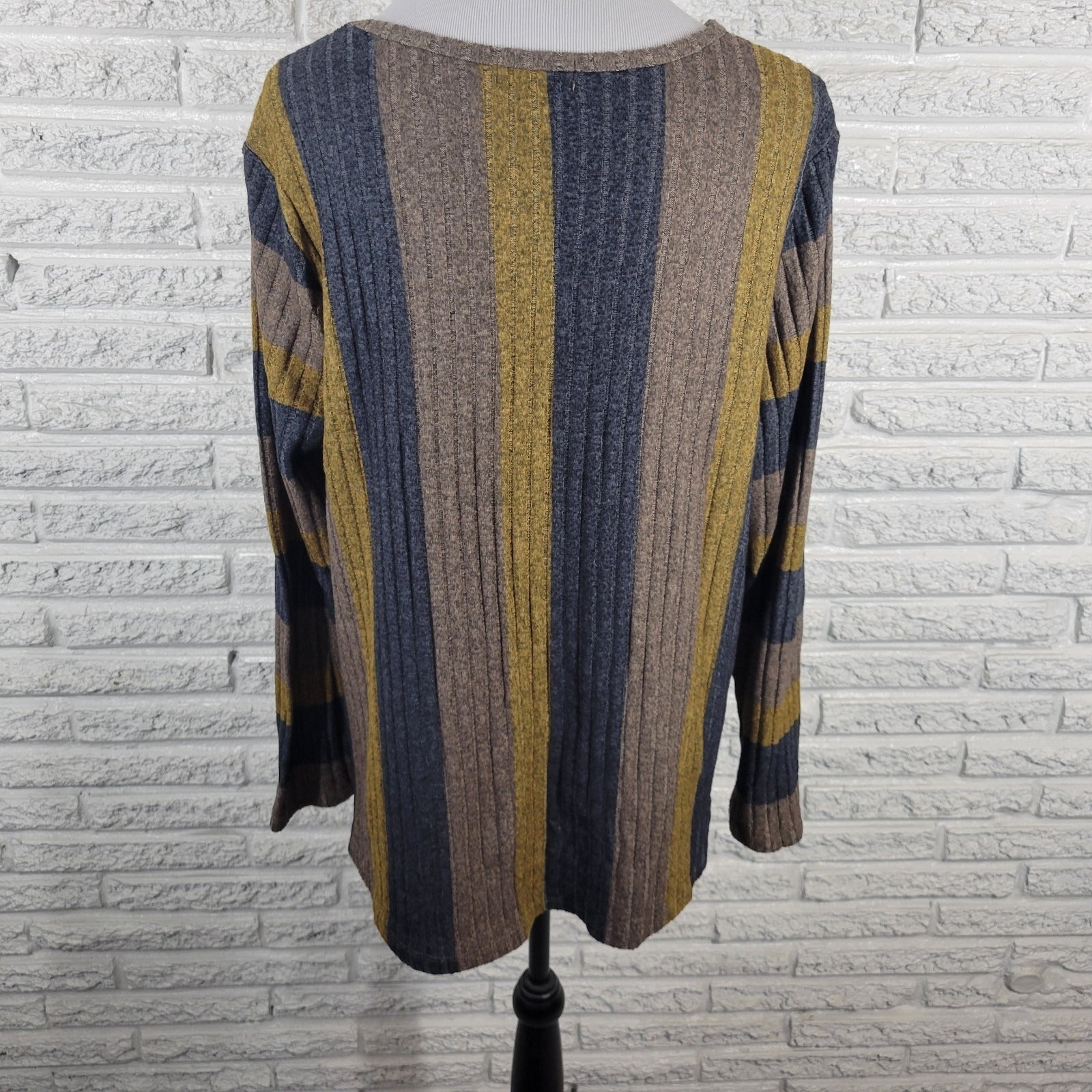 Live Let Live Womens Sweater XL Long Sleeve Blue Gold Stripe Knotted Hem Comfy