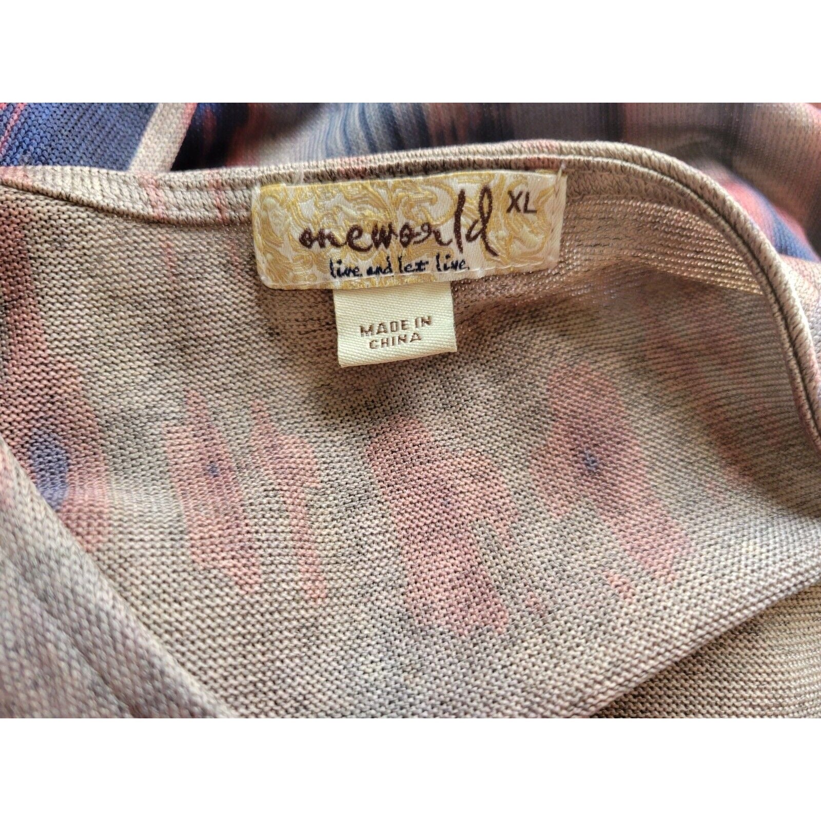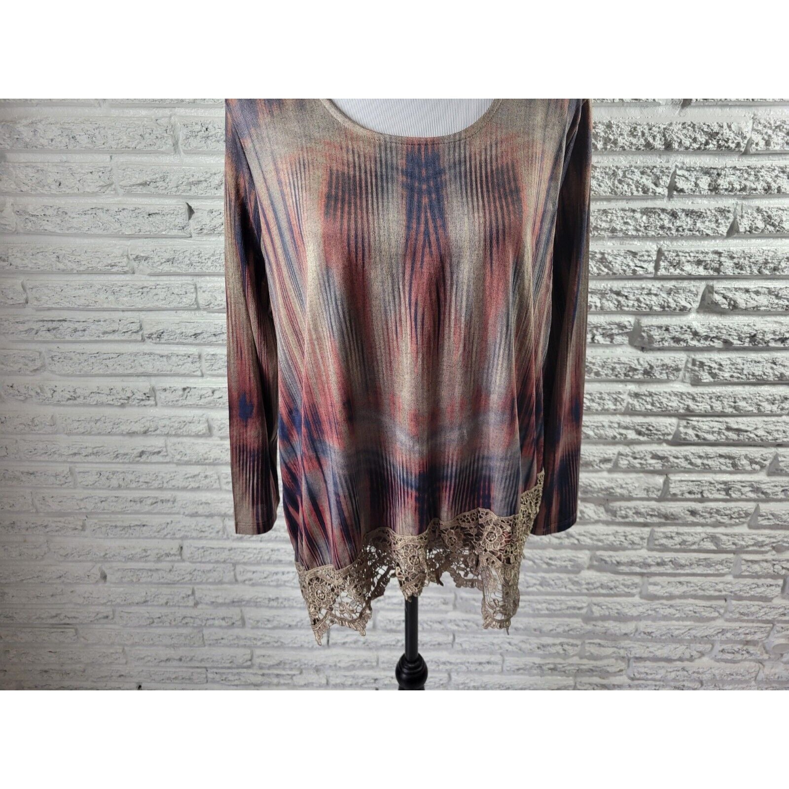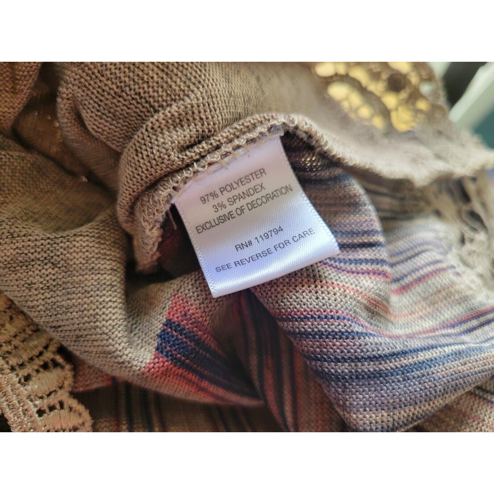 Live Let Live Womens Top Extra Large Tunic Lace Hem Asymmetric Brown Stripe