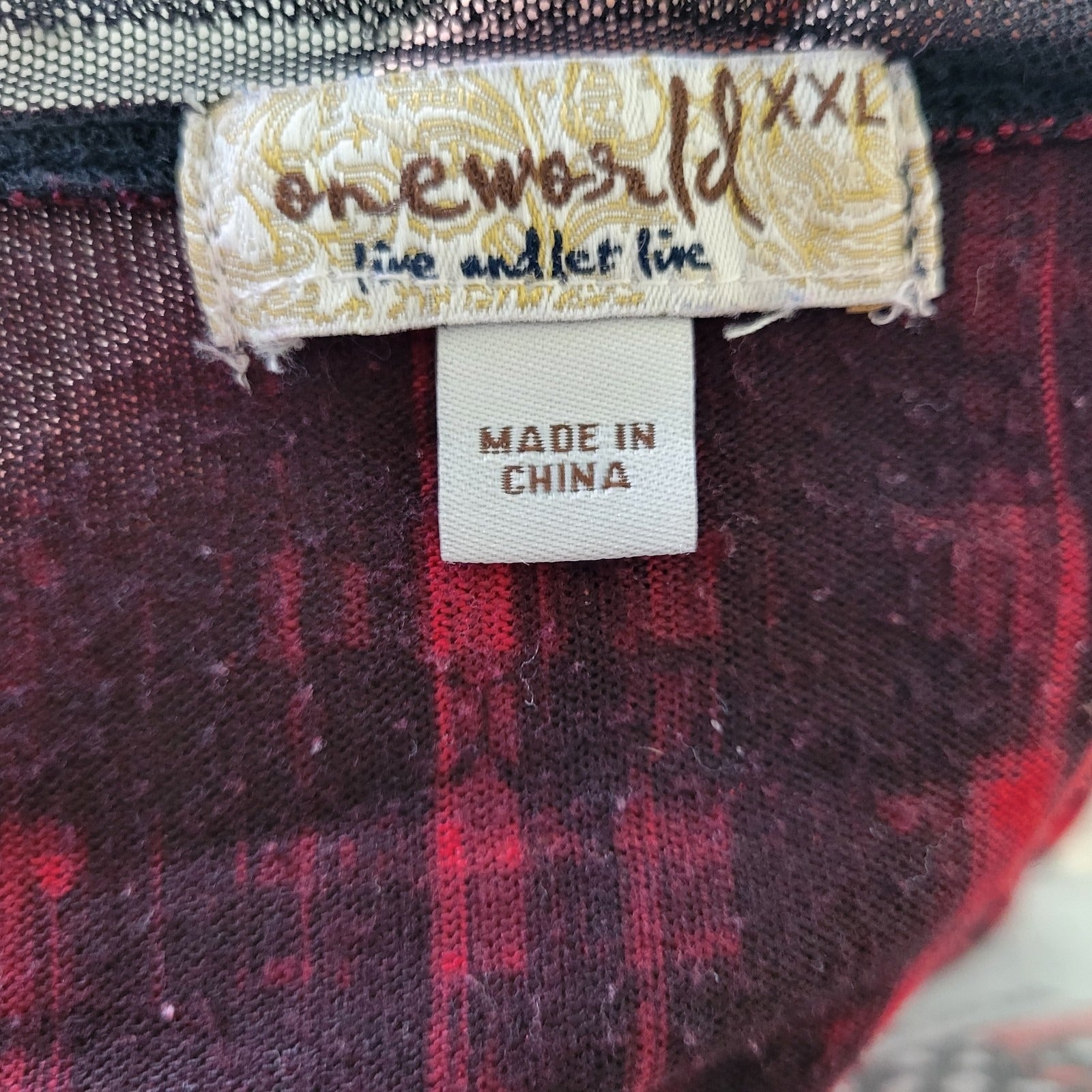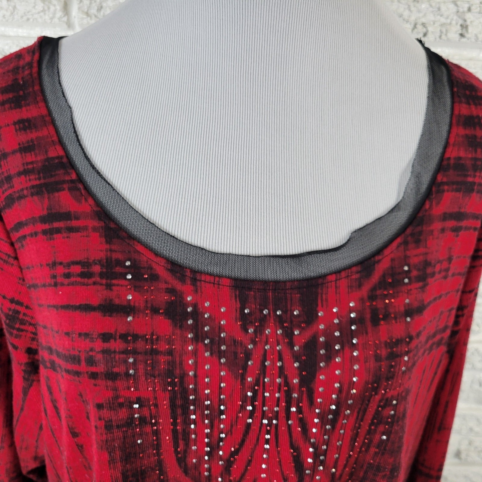 Live Let Live Womens Top XXL Plus Tunic Red Black Plaid Asymmetric Studded Mesh