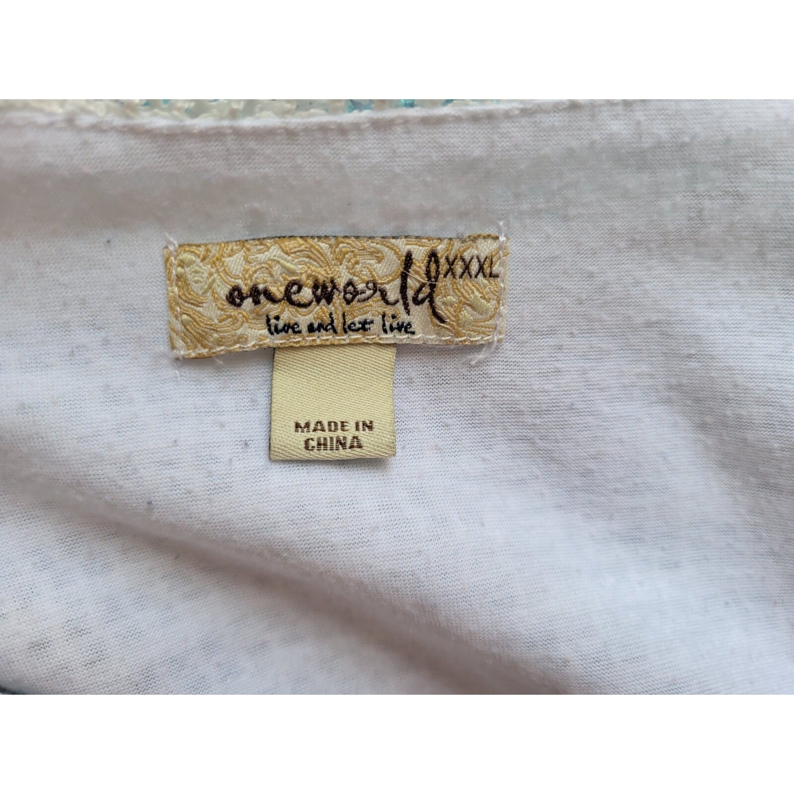 Live Let Live Womens Top XXXL Plus Short Sleeve Crochet Lace Hem Blue Sequins
