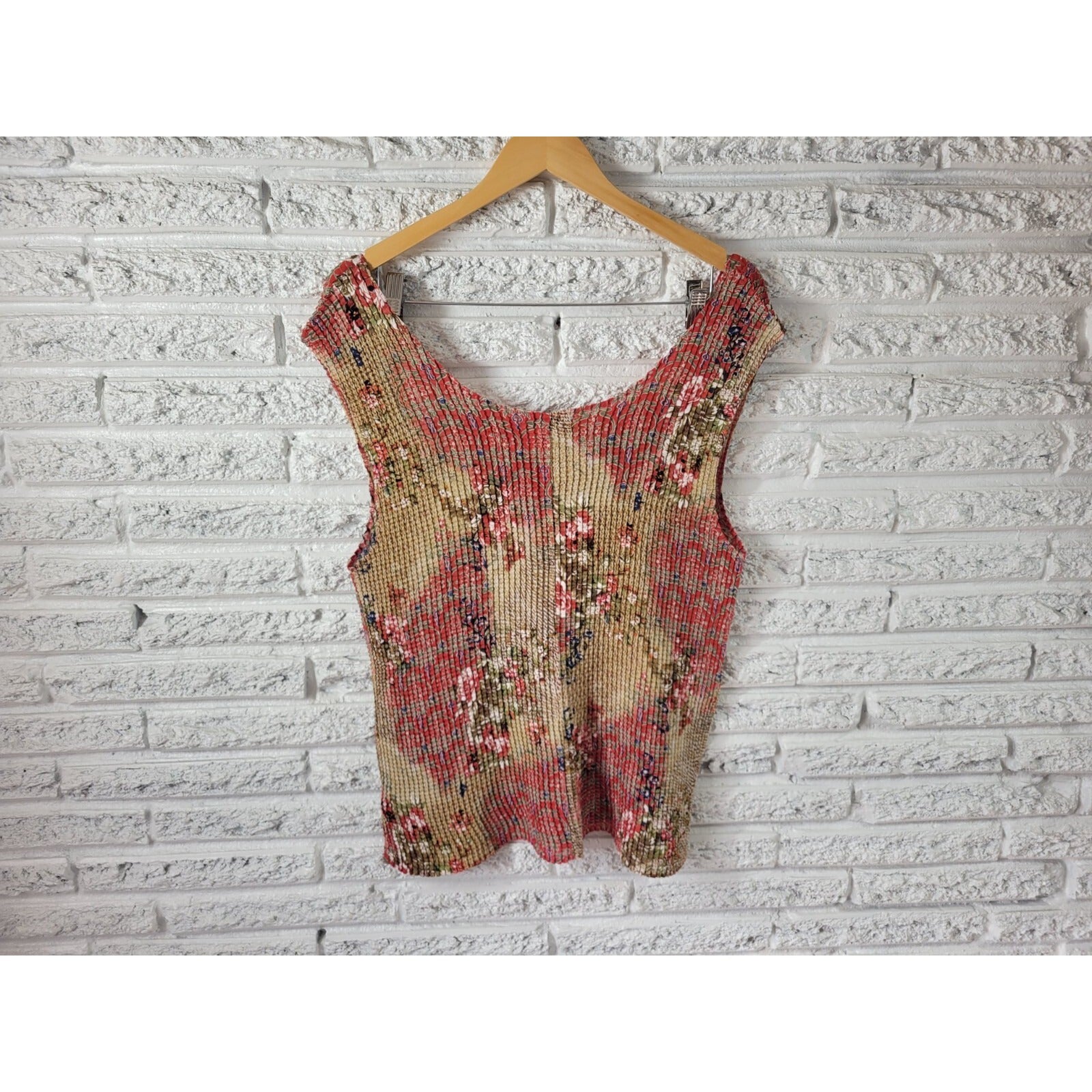 Liz Baker Womens Top 18W Plus Tank Red Floral Lightweight Festival Sheer Crepe