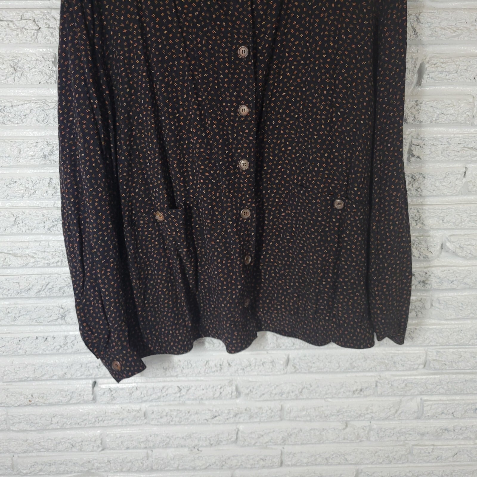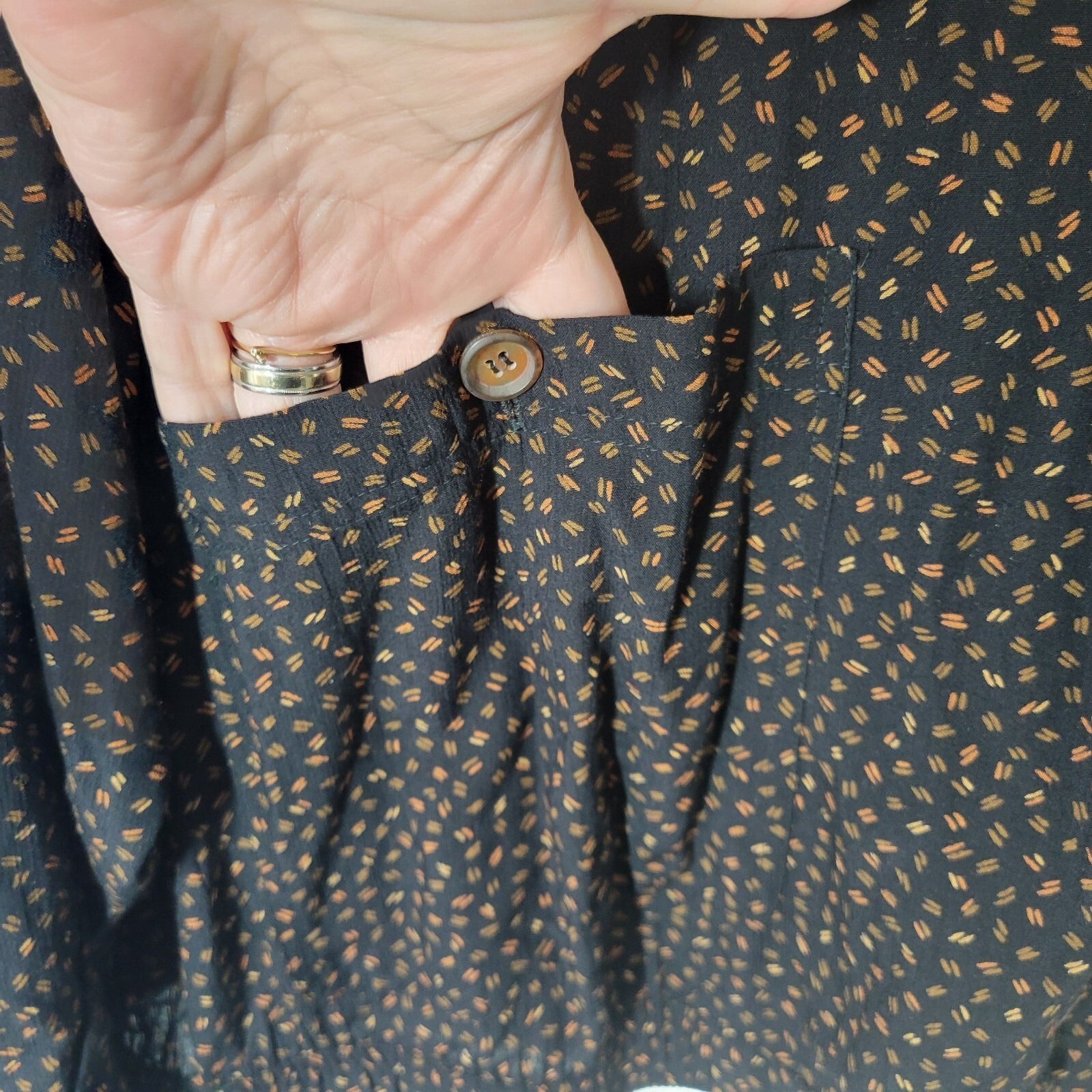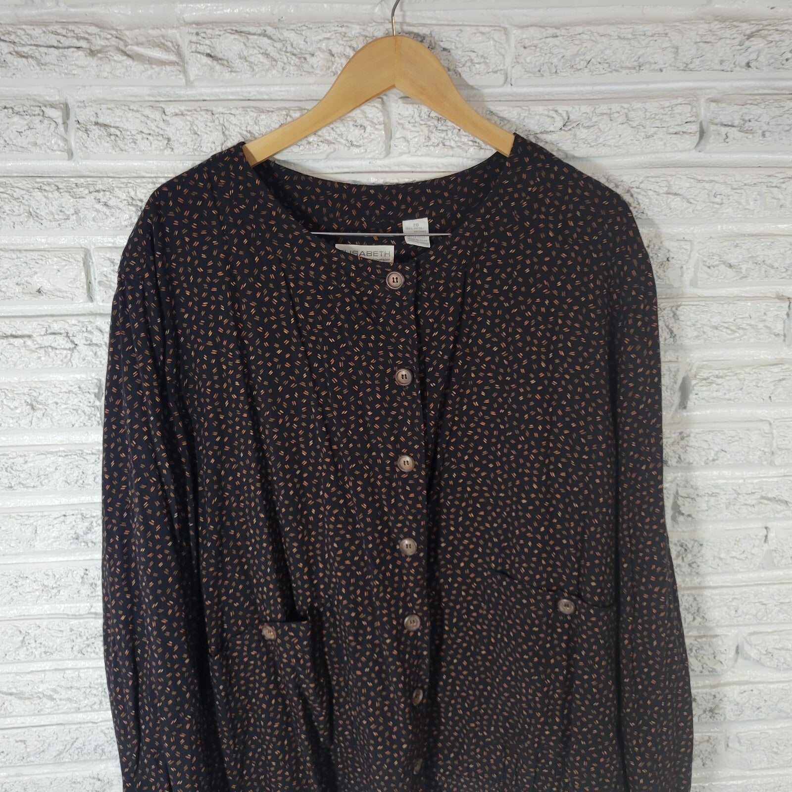 Liz Claiborne Elisabeth Womens Top 20 Smock Long Sleeve Black Geometric Rayon