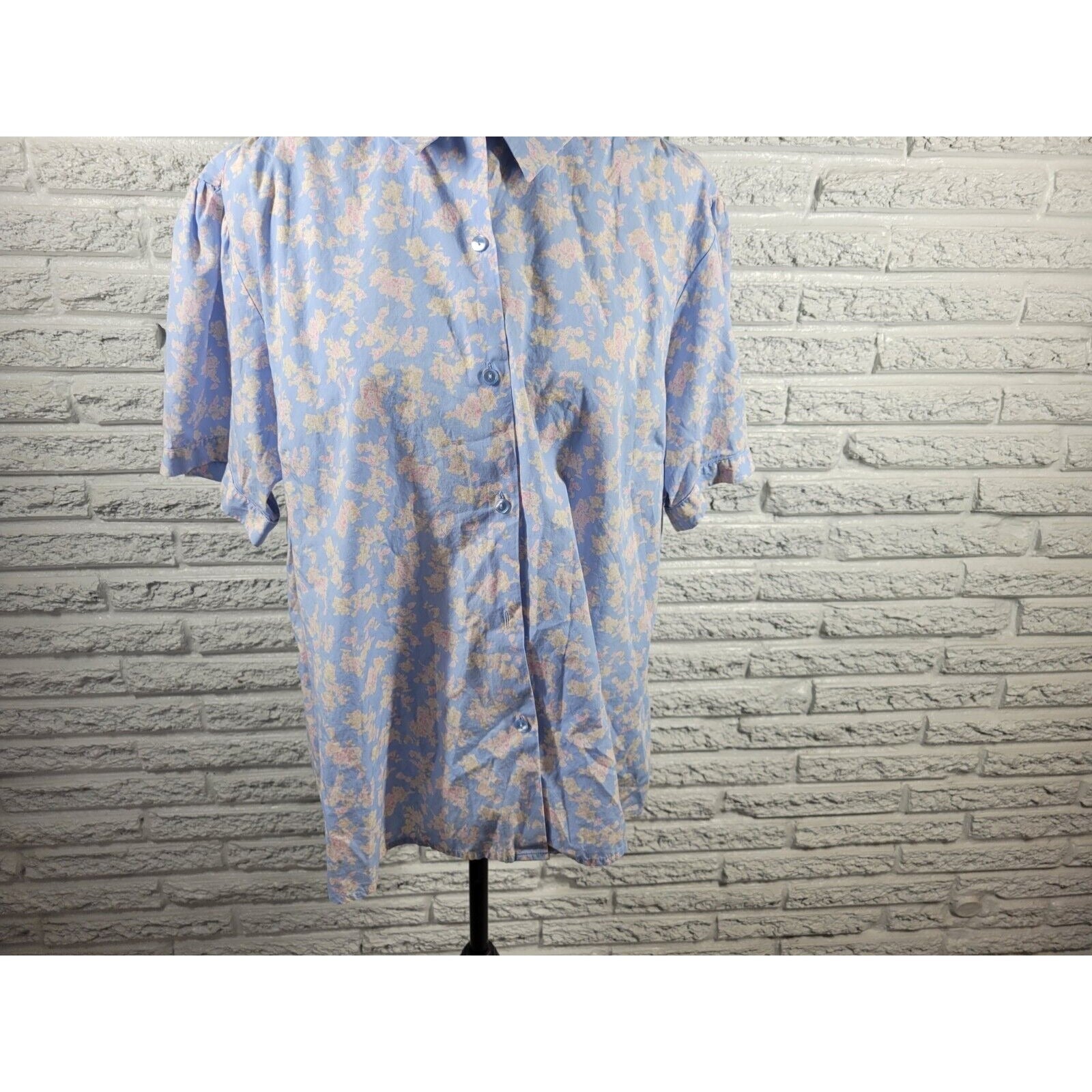 Liz Claiborne Elizabeth Womens Top 20 Short Sleeve Cotton Button Up Blue Floral
